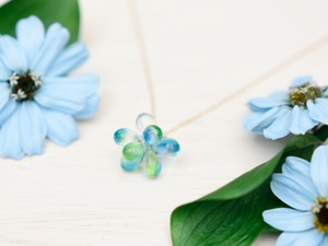 【14kgf ネックレス】ブルーとグリーンの涼しげガラス・青空と新緑