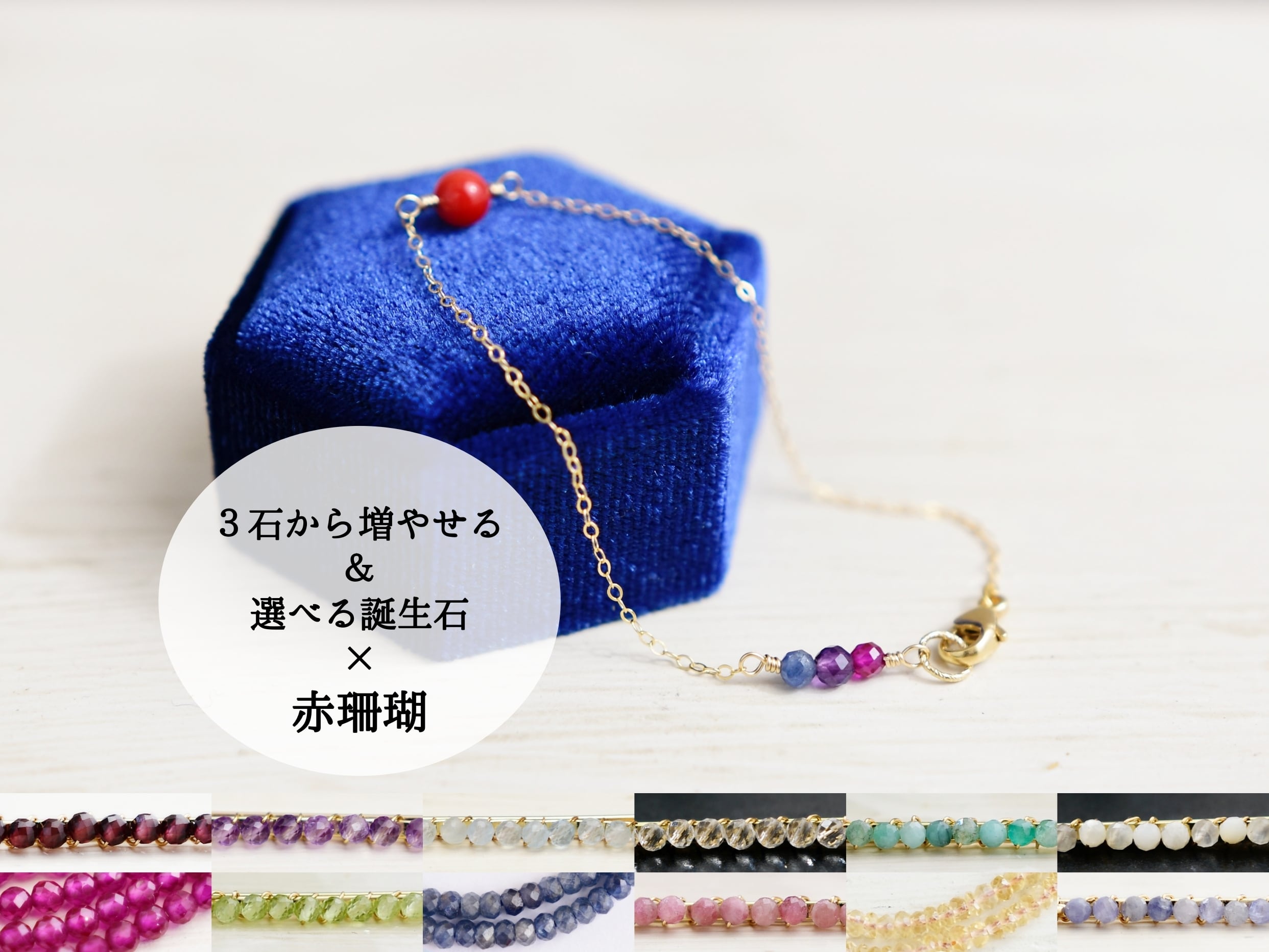 お母さんの還暦祝いに【14kgf ブレスレット】赤珊瑚と選べる家族の誕生石