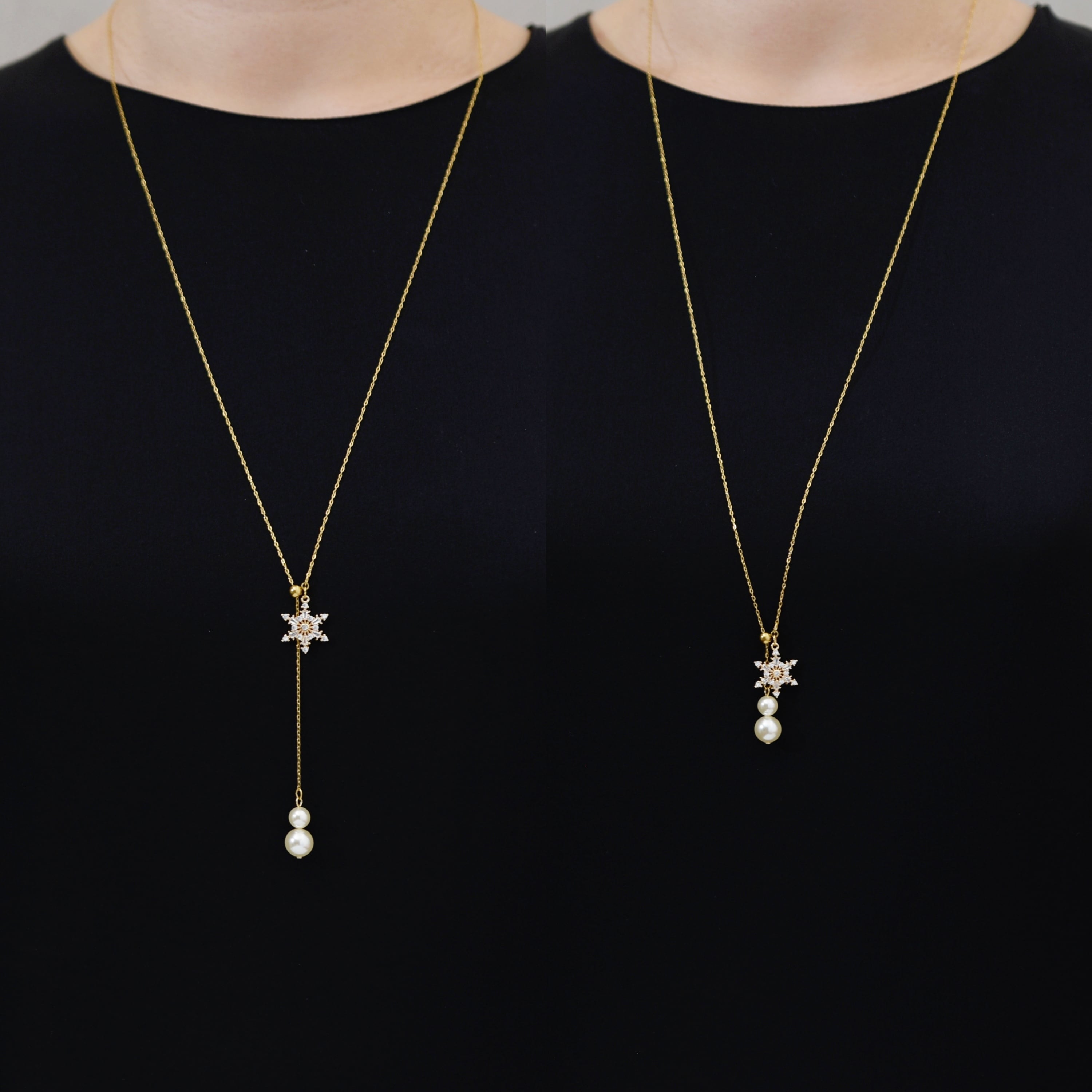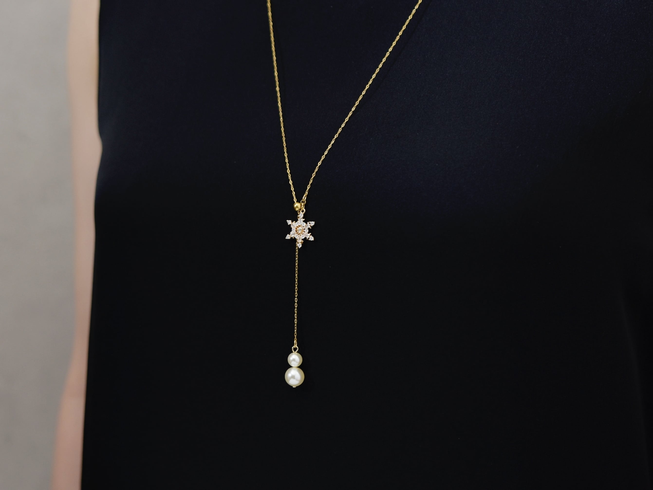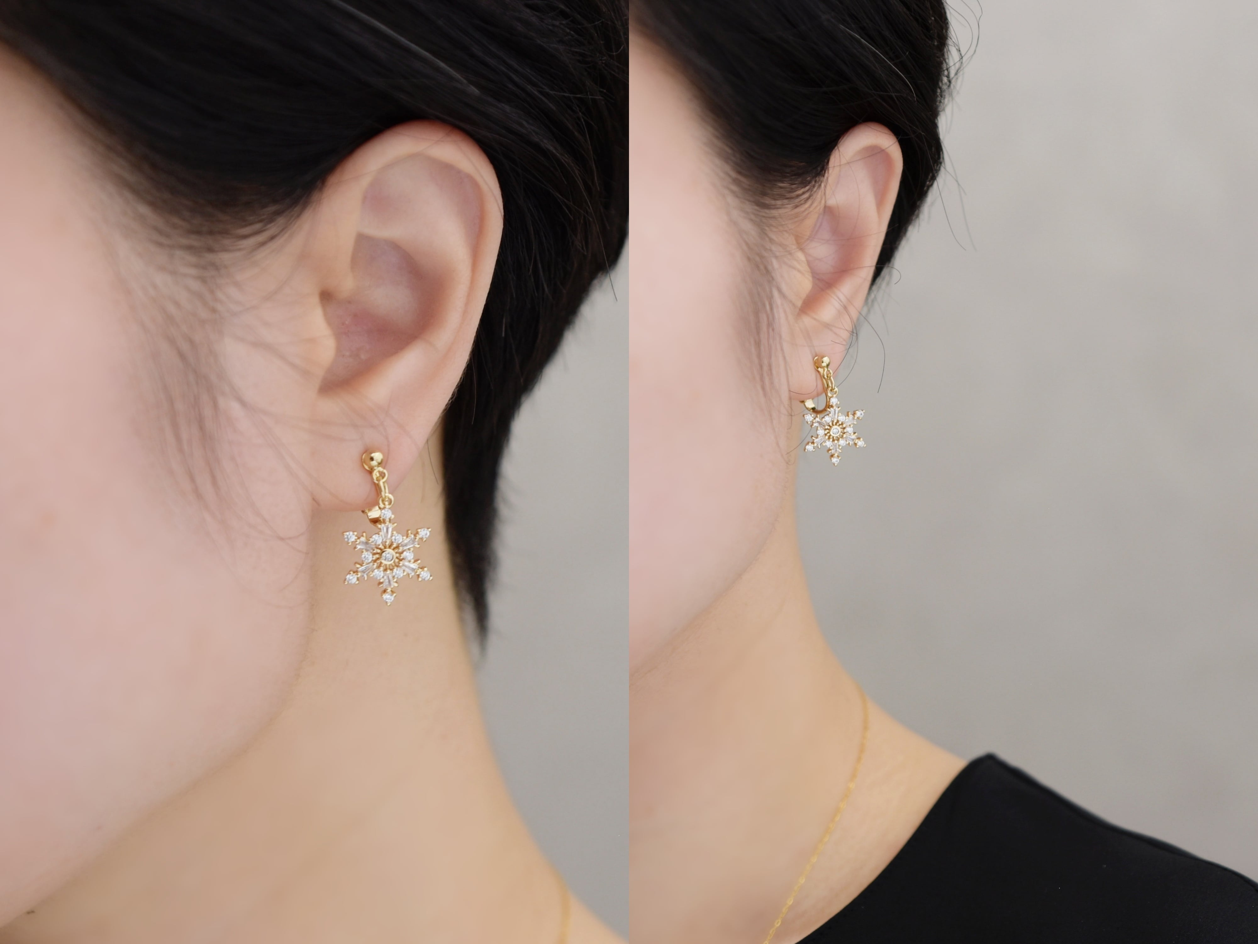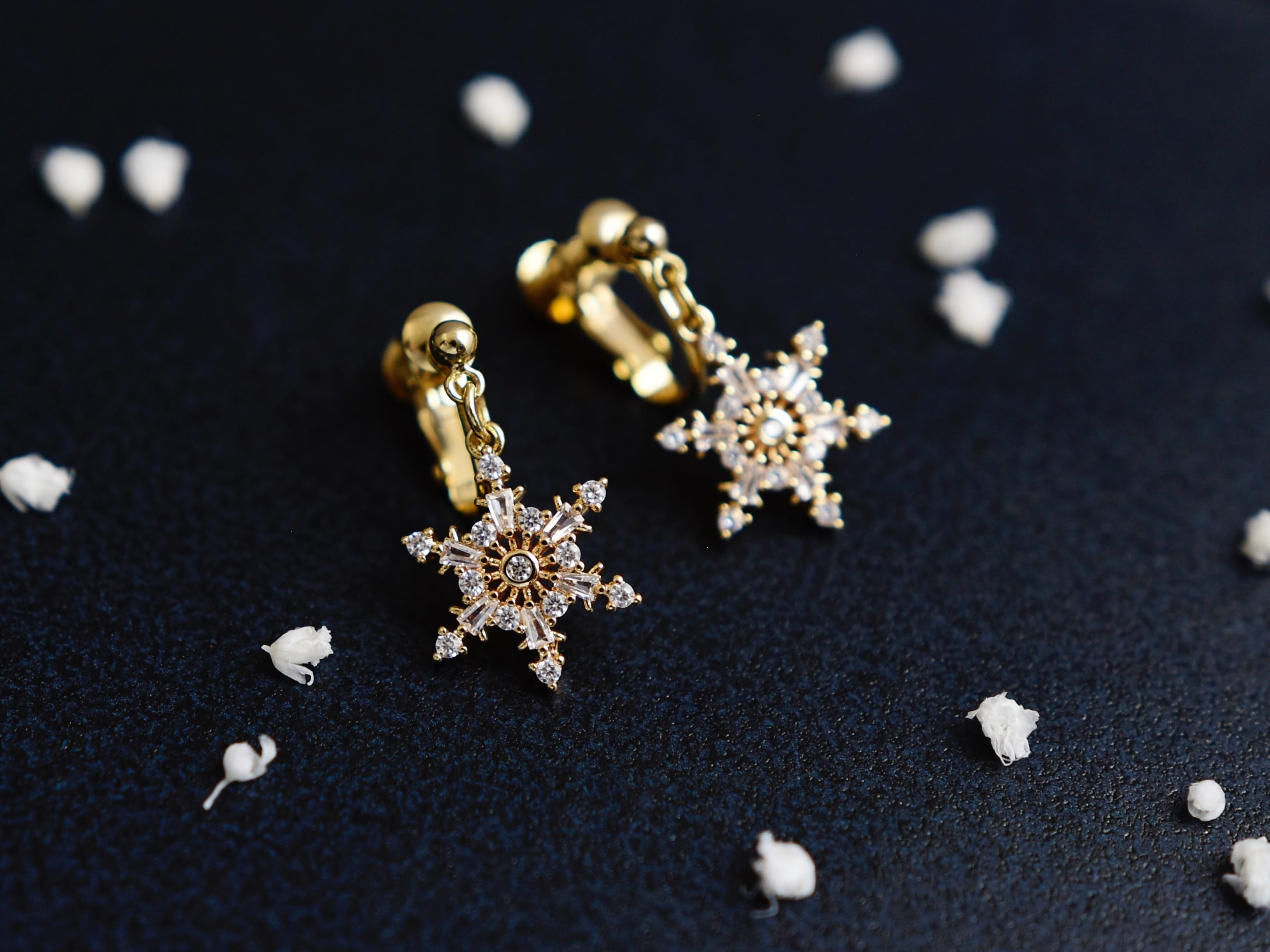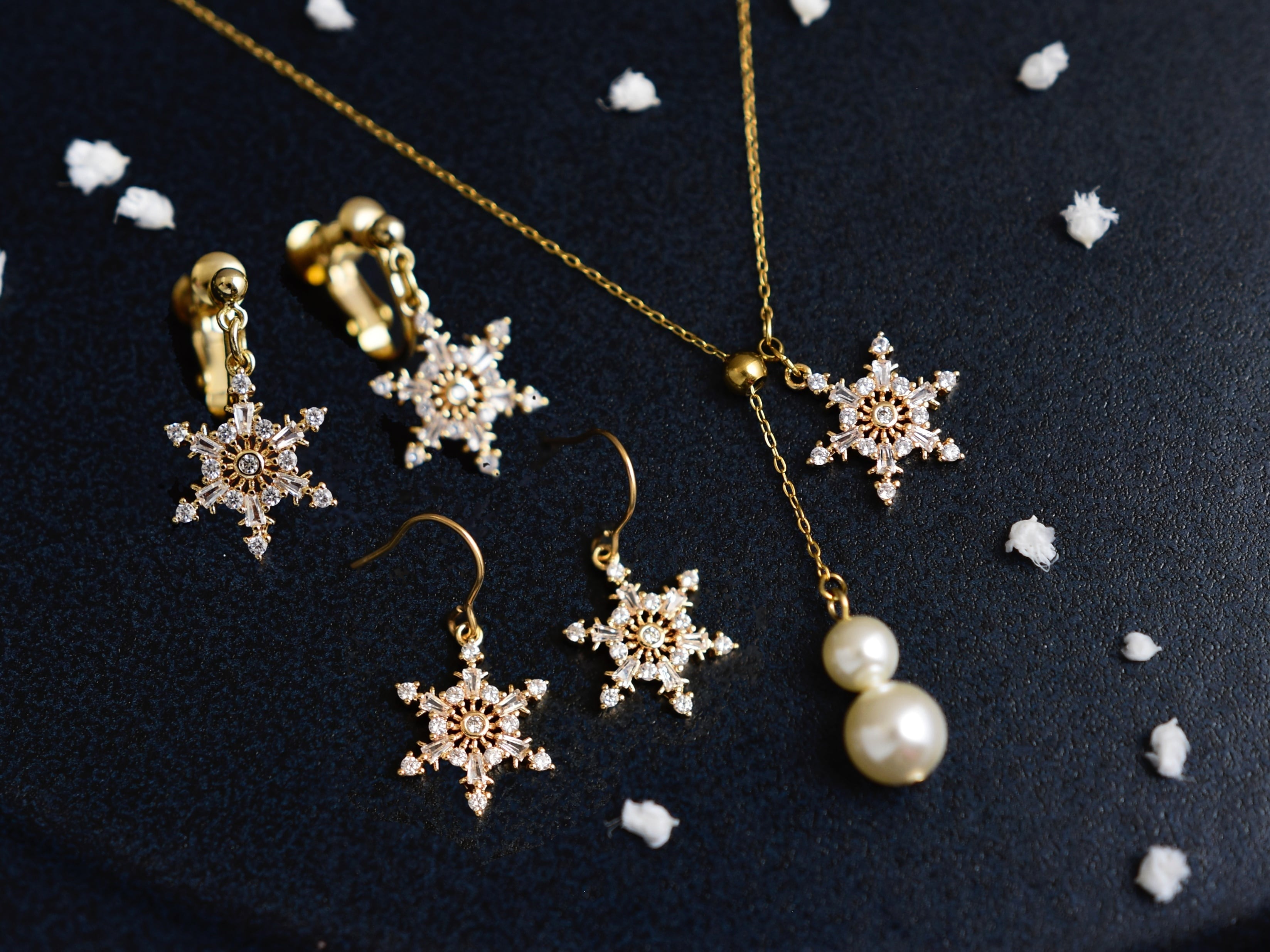 クリスマスコフレ【ロングネックレスとピアス・イヤリング/ゴールド色】雪の結晶