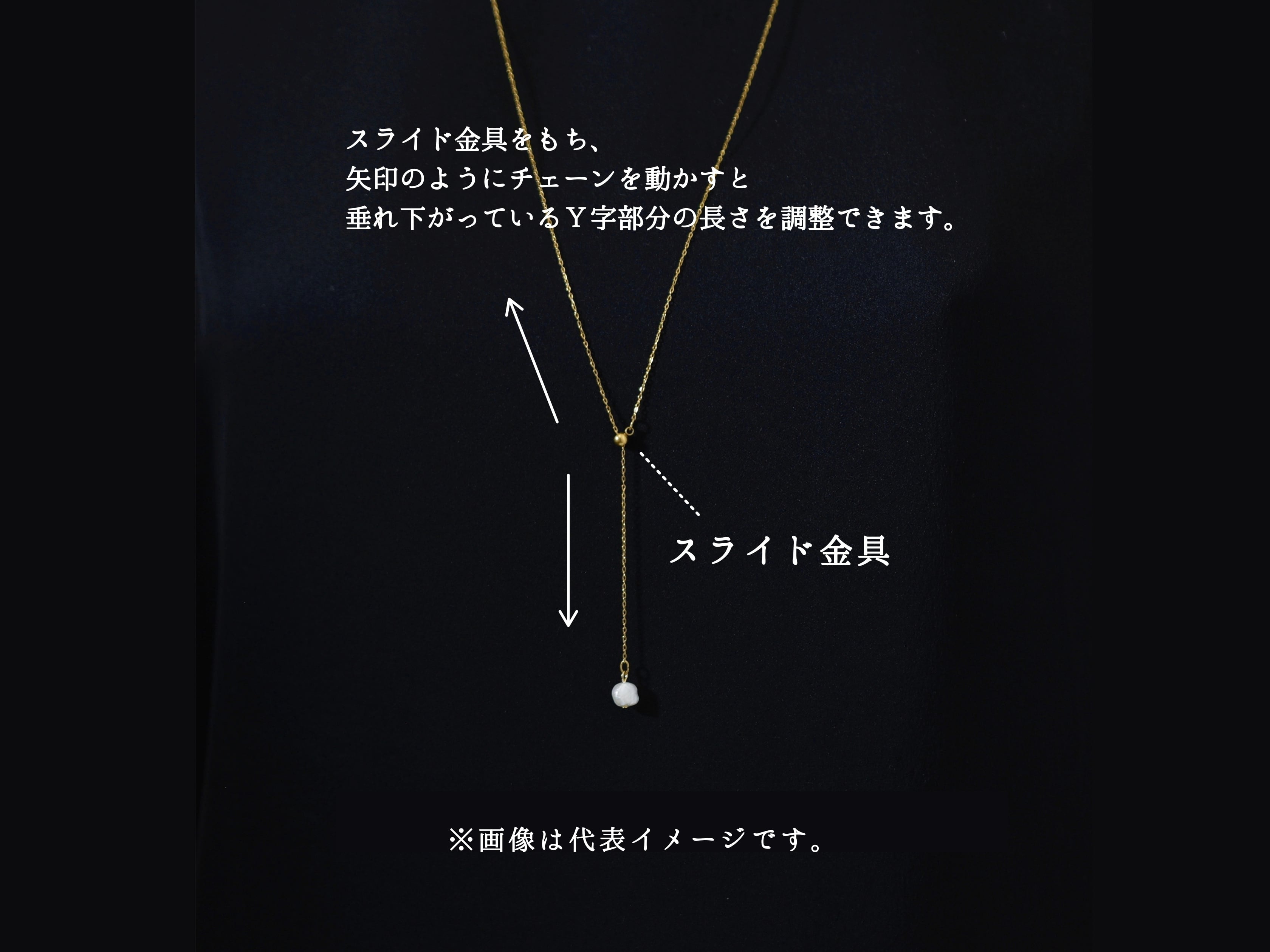 留め具がない、頭からかぶってつけ外しするロングネックレス。