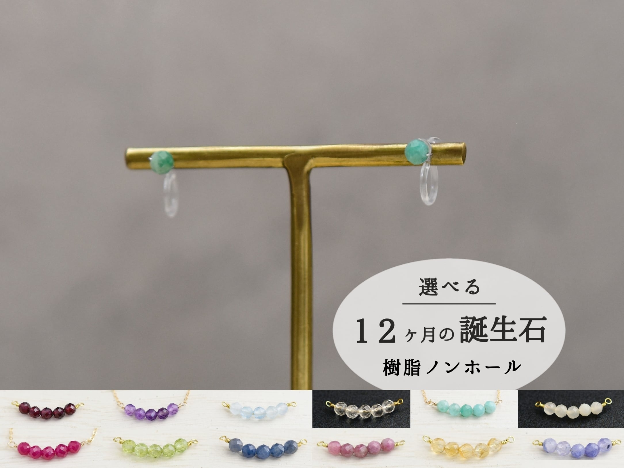 誕生石が選べる【樹脂 ノンホール イヤリング】シンプルな1粒デザイン(4mm)