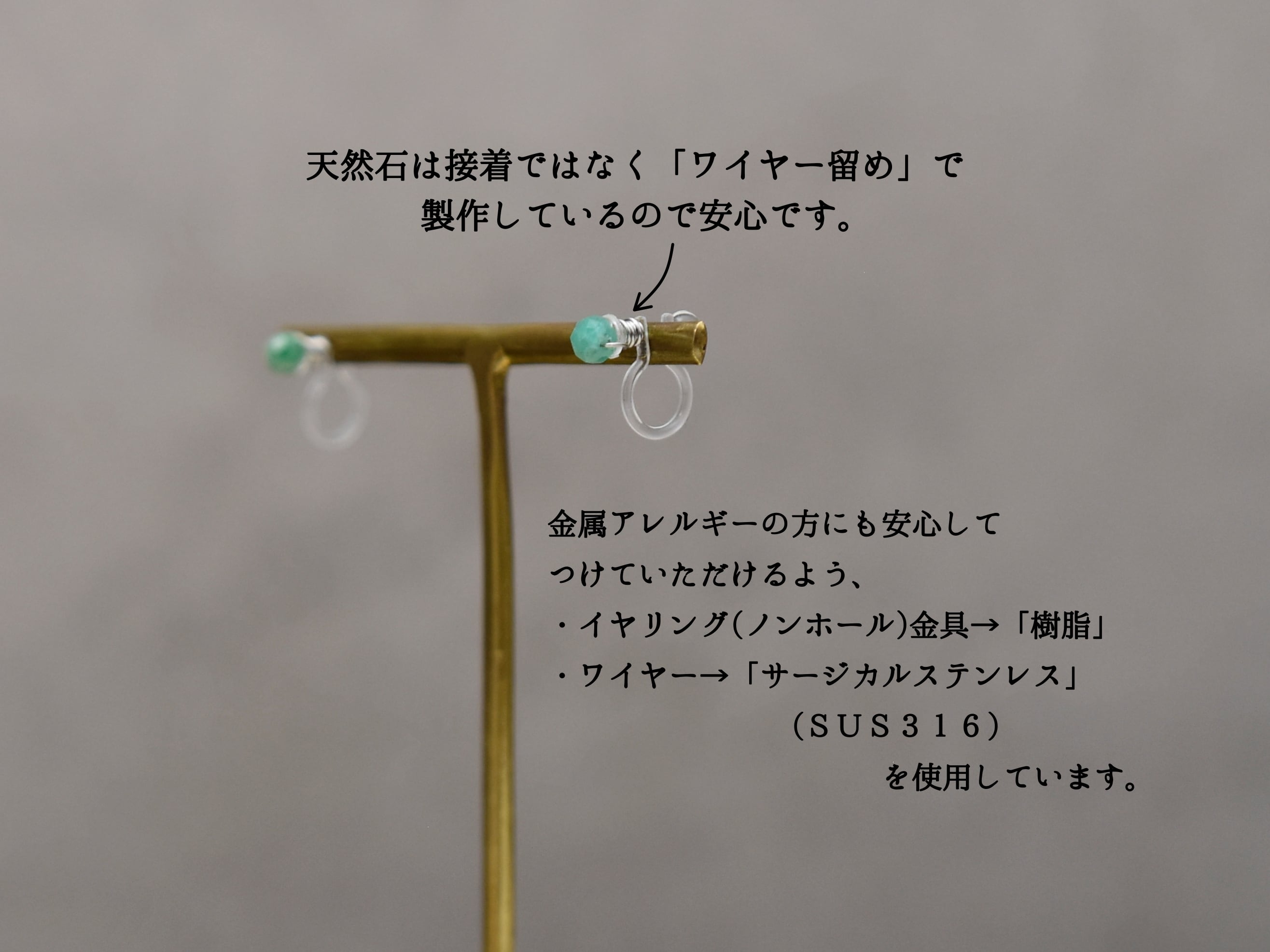樹脂ノンホールピアスにサージカルステンレスワイヤーを使用しています。