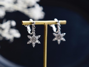 クリスマスコフレ【ロングネックレスとピアス・イヤリング/シルバー色】雪の結晶・Ⅱ