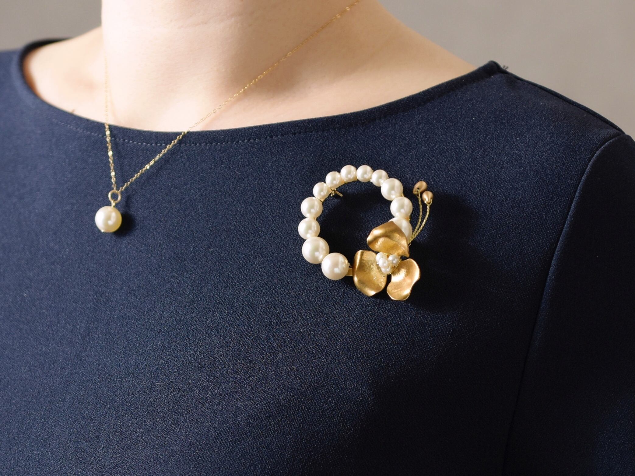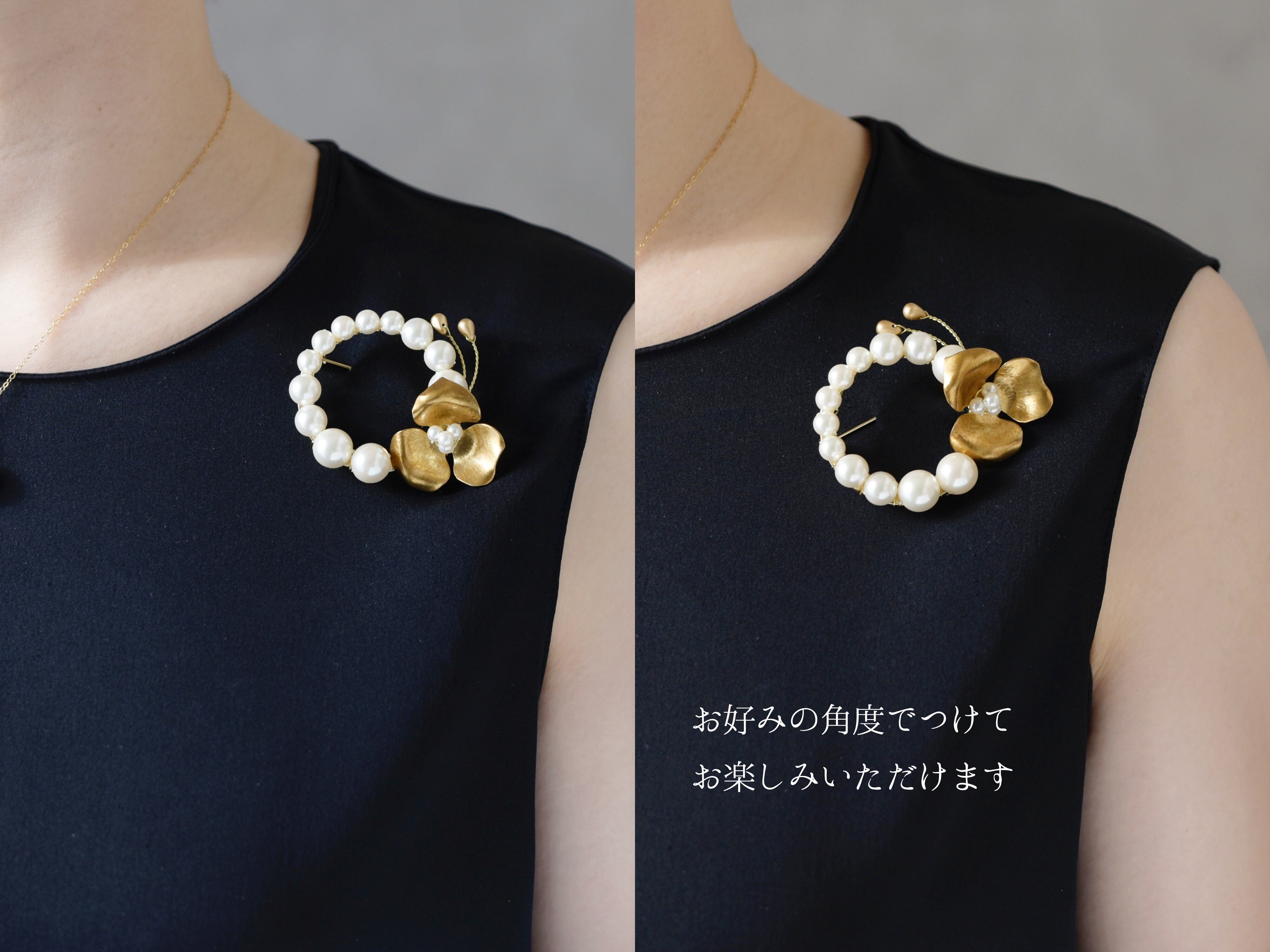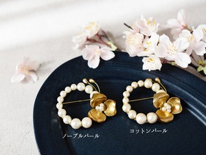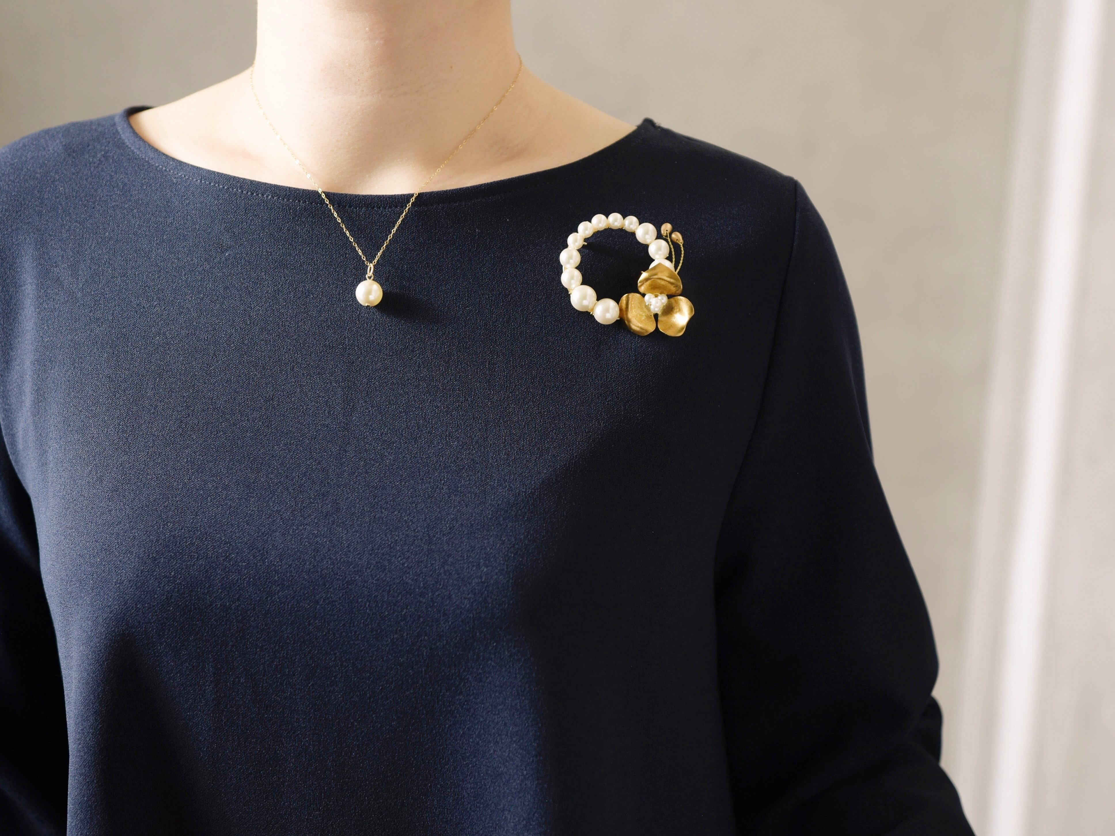 【ブローチ】選べるパール/真鍮の花のリース(卒園式、卒業式、入園式、入学式など)