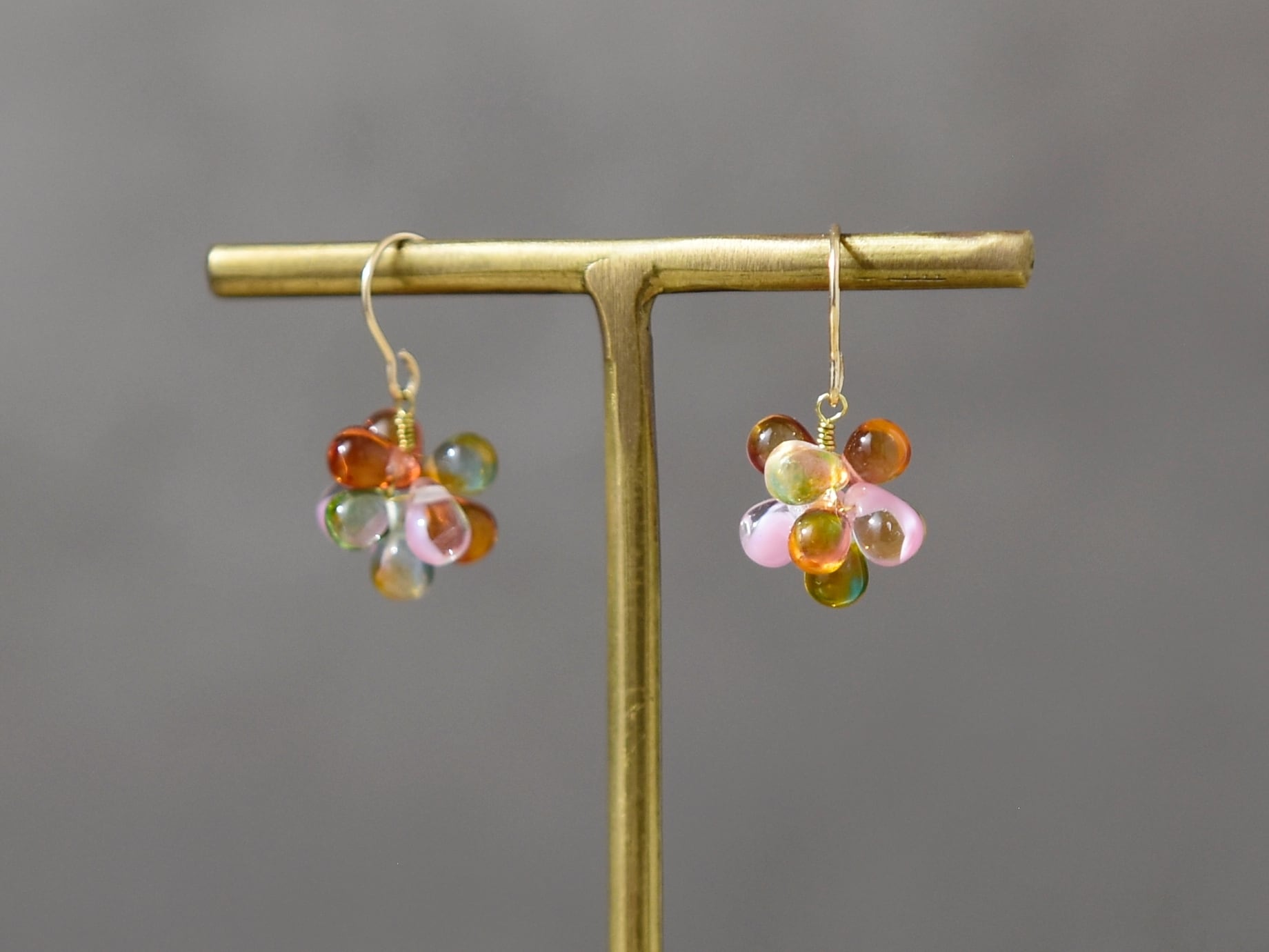 【14kgf ピアス/イヤリング】春色の花束(ピンク・オレンジ・イエロー)