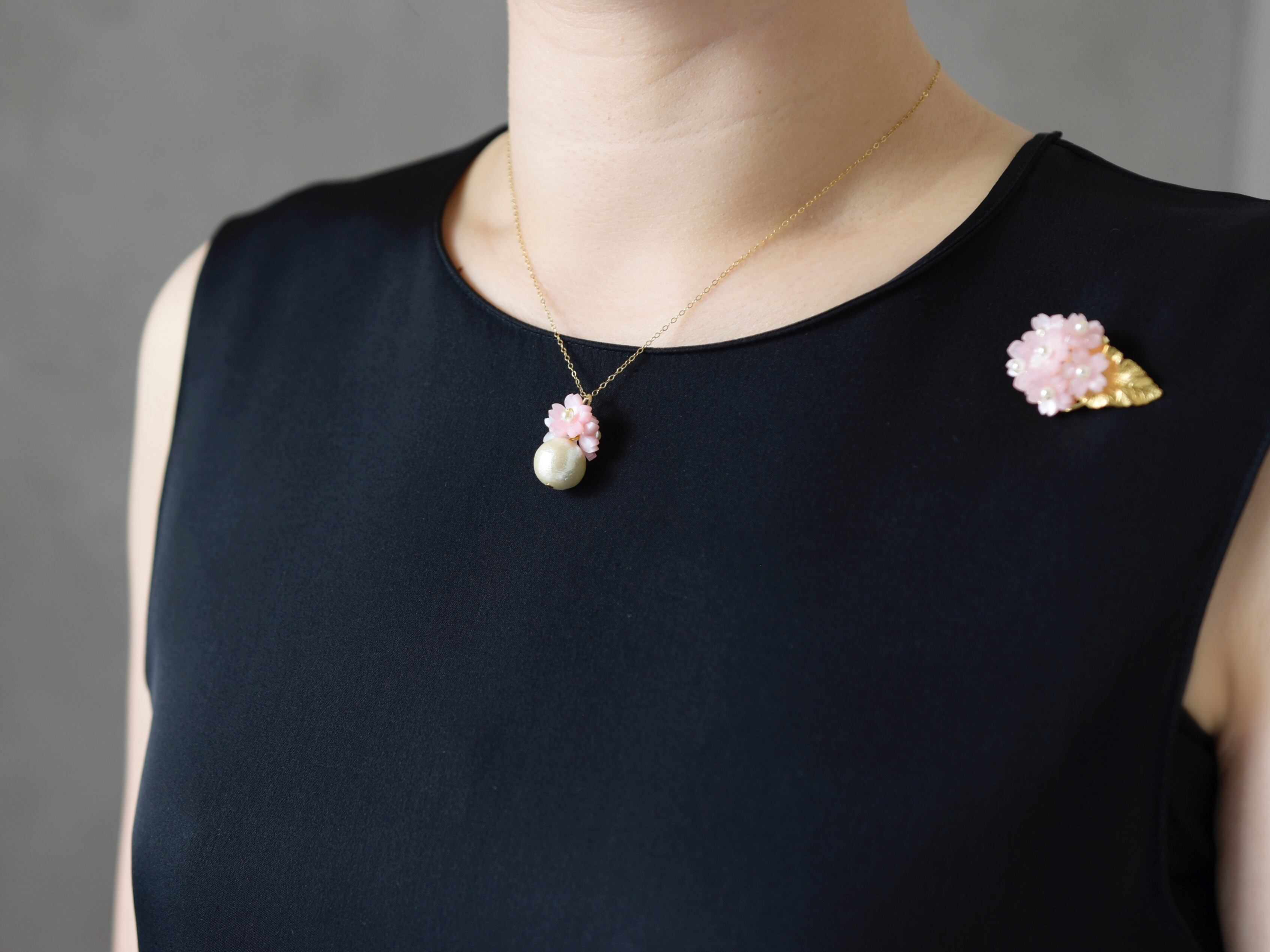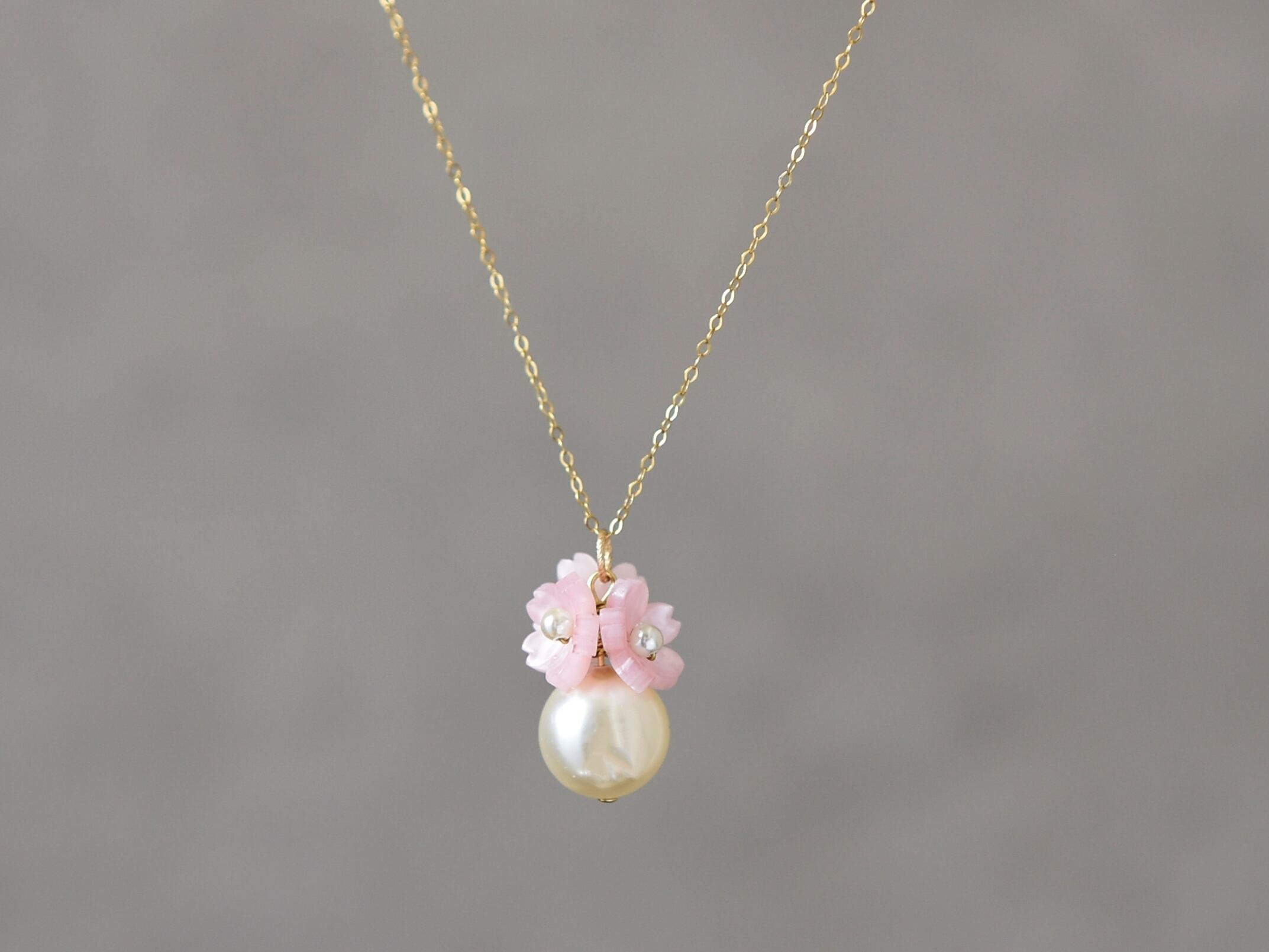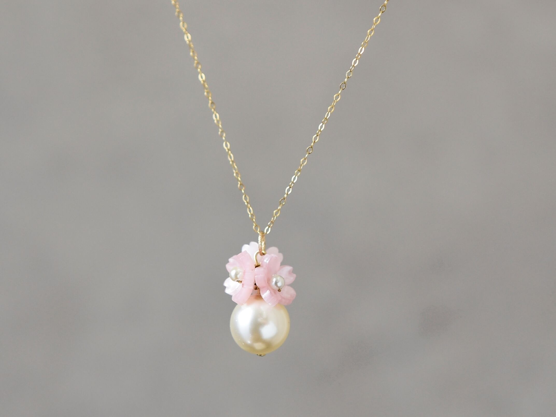 春限定【14kgf ネックレス】薄ピンクとパールの桜(春爛漫)