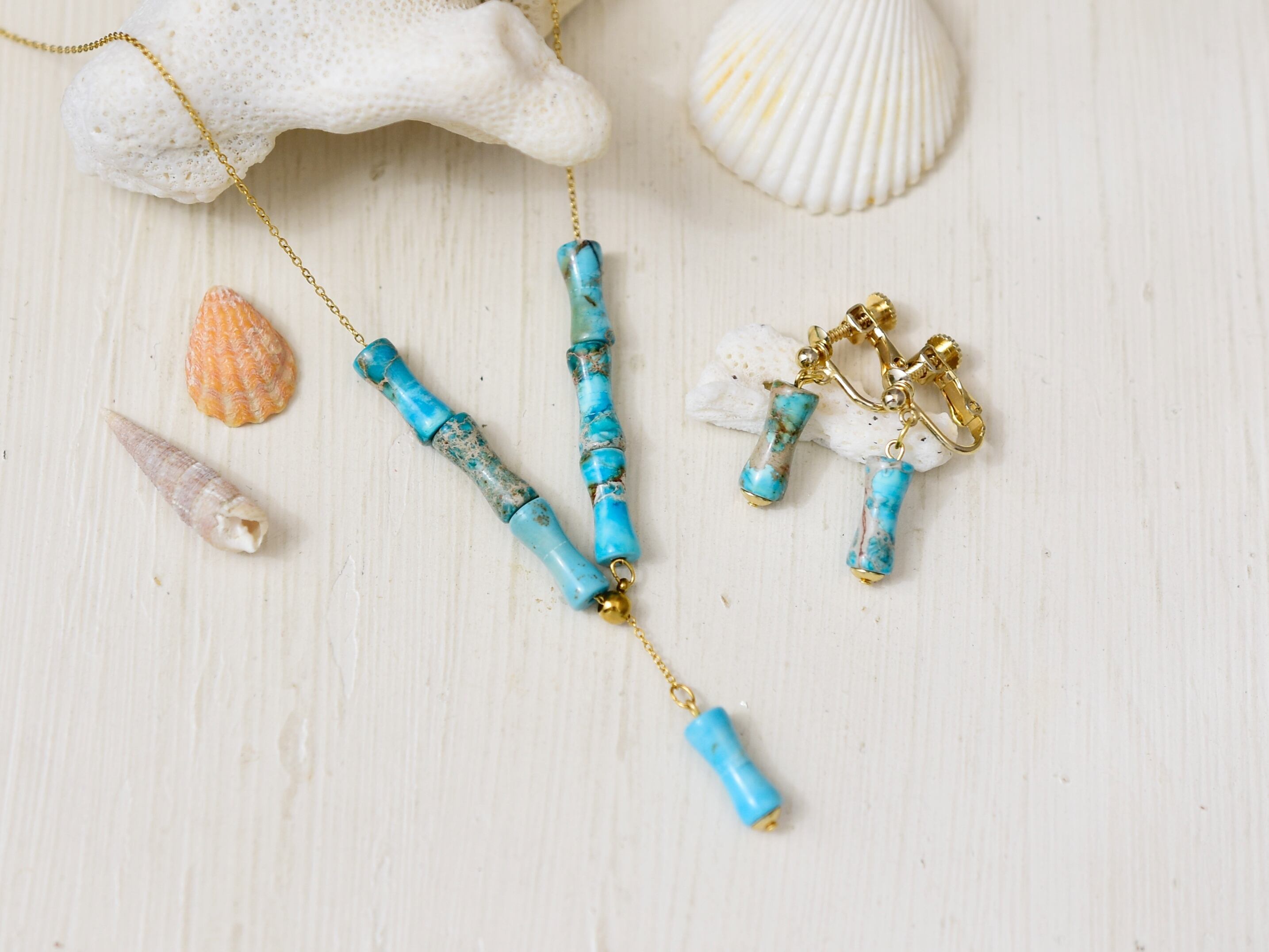 ※ターコイズブルーの天然石「カオリン」を使用しており、