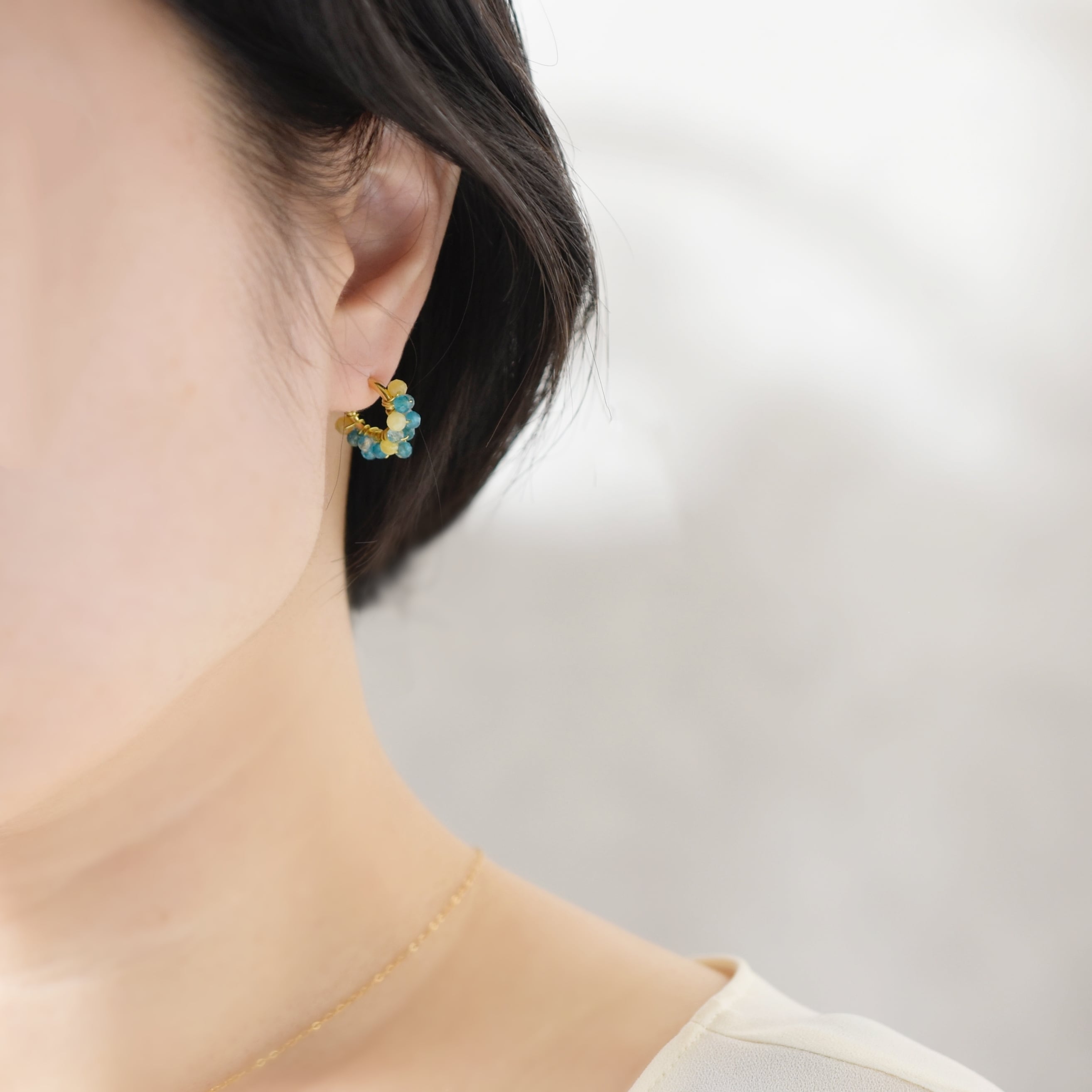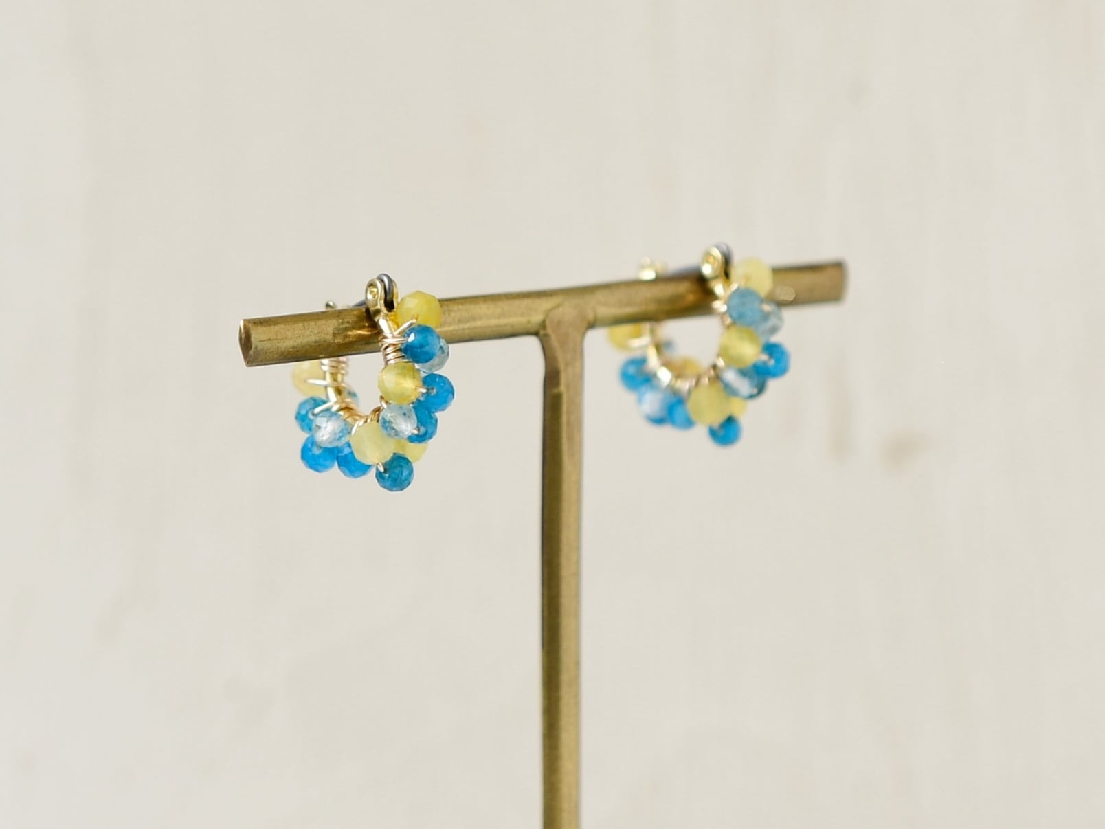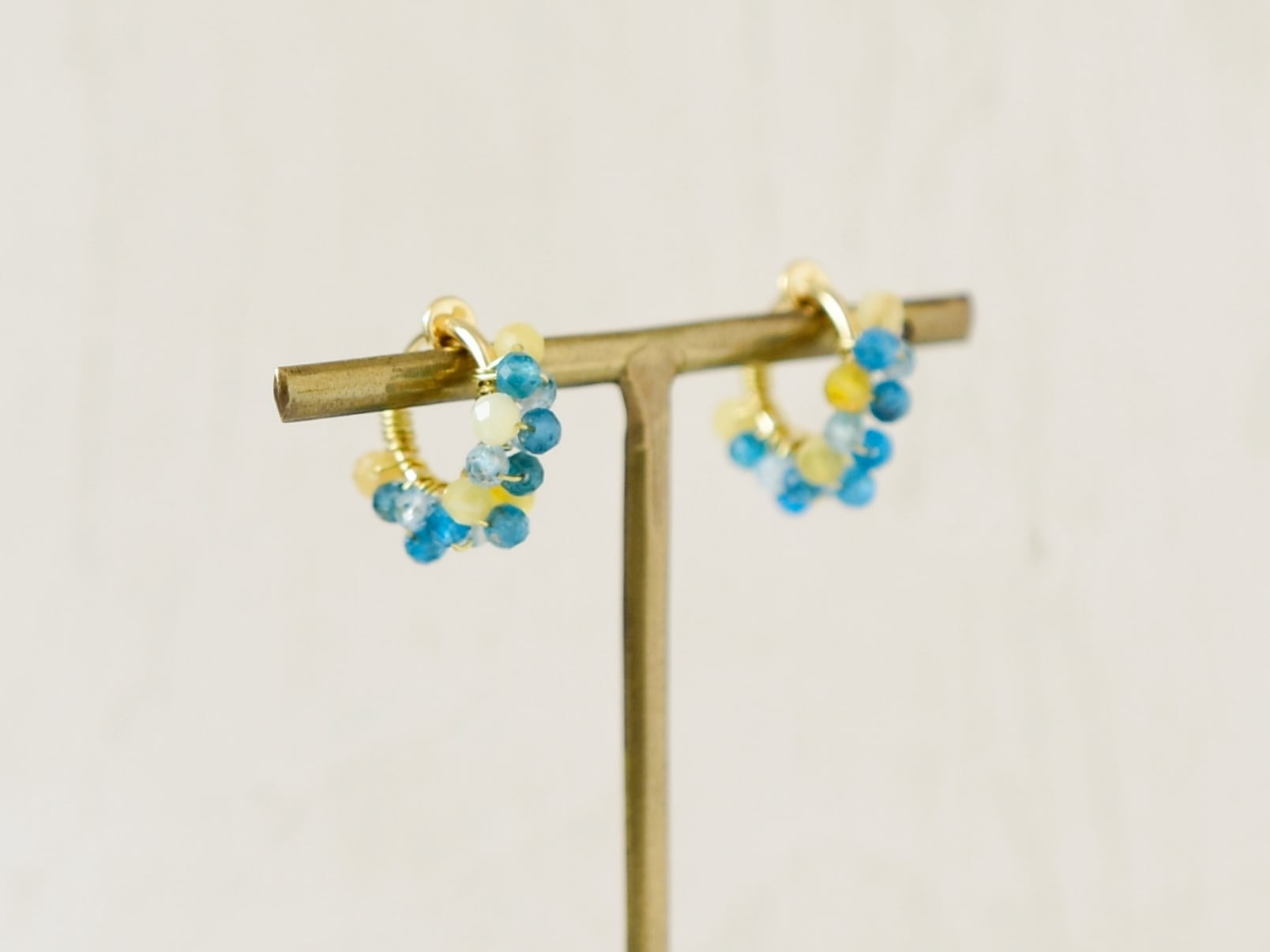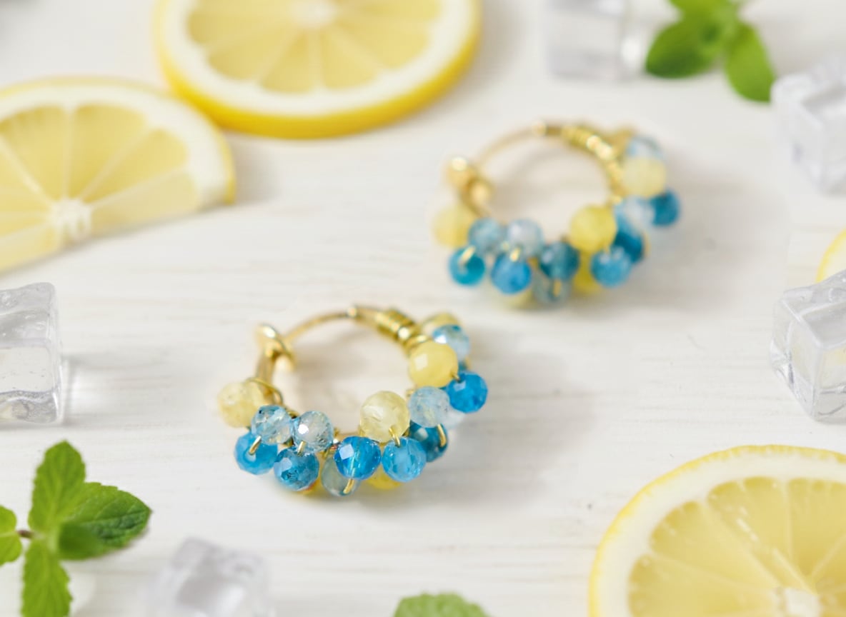 【フープピアス/フープイヤリング】レモンソーダ ( 黄色とブルーの天然石)