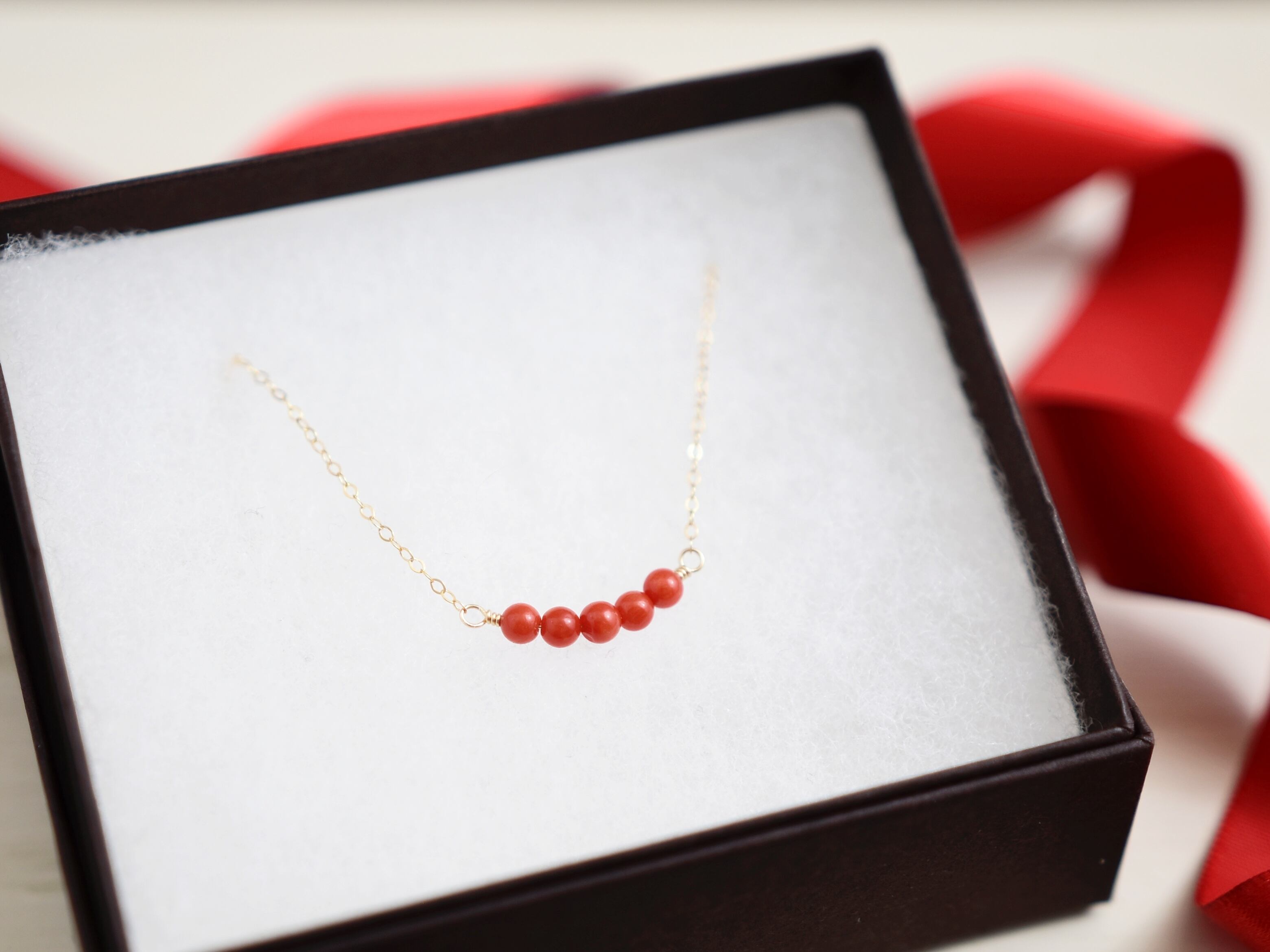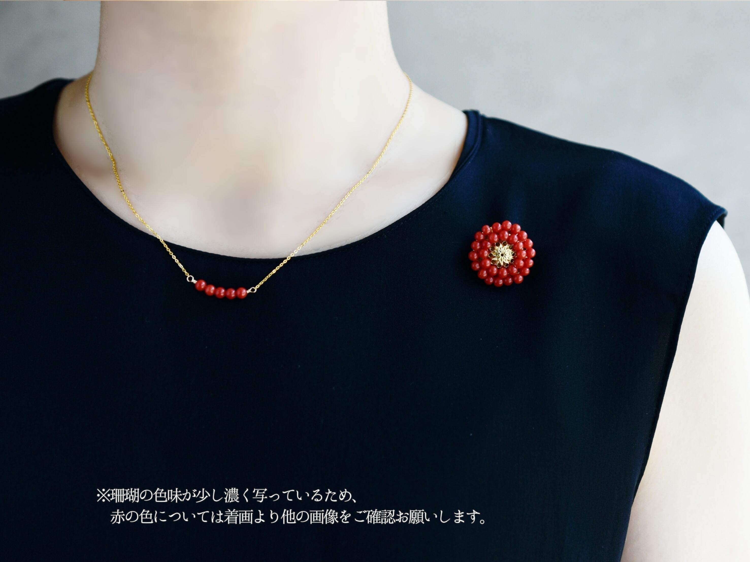 【K10 ネックレス】天然色の赤珊瑚(本珊瑚・3月誕生石)女性の還暦祝いにも