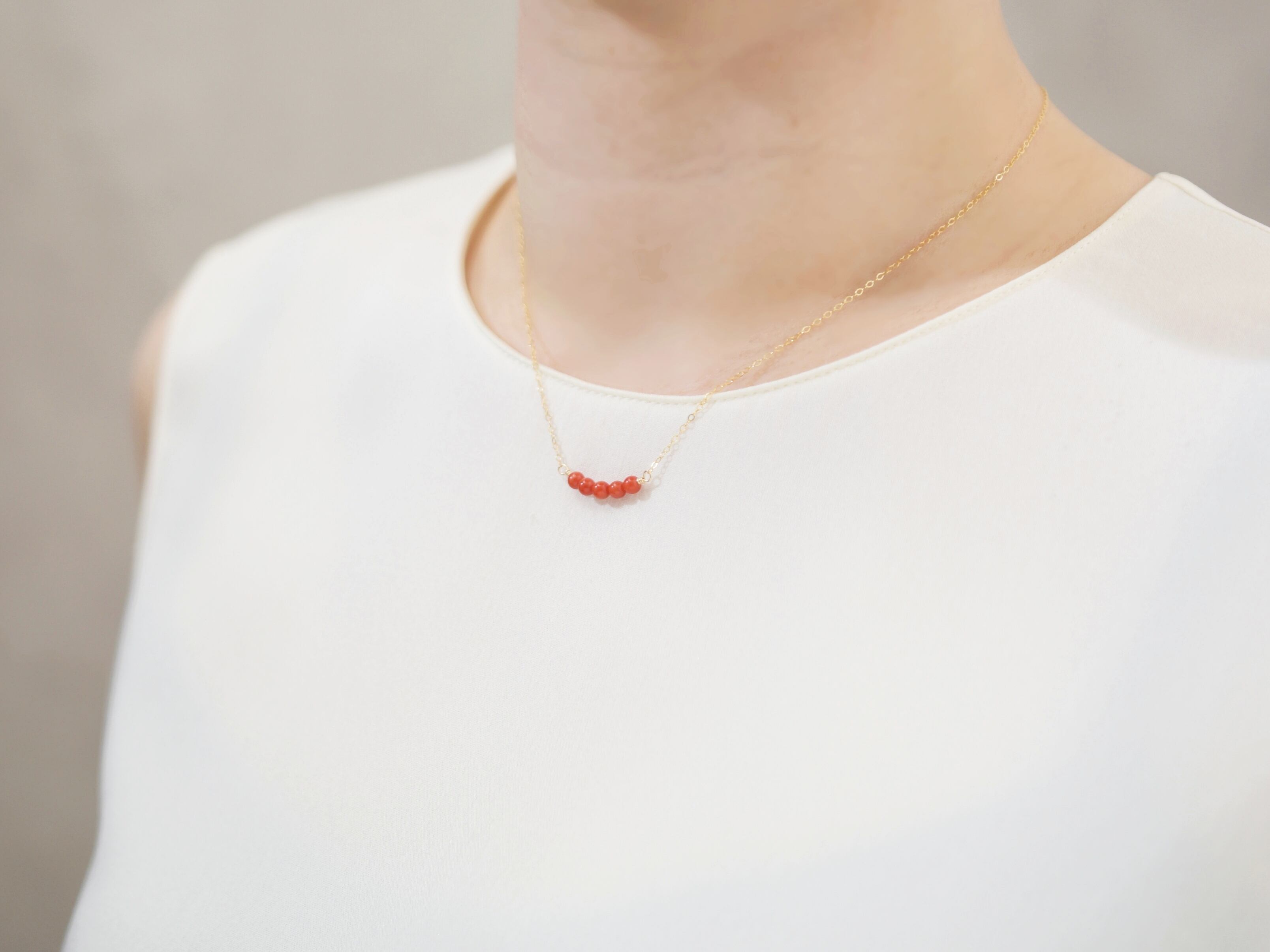 カラー珊瑚がコーディネートのかわいいポイントに活躍してくれます♪