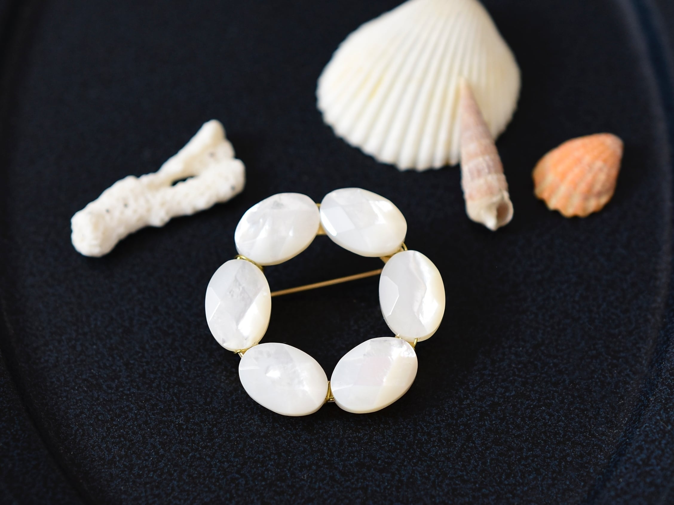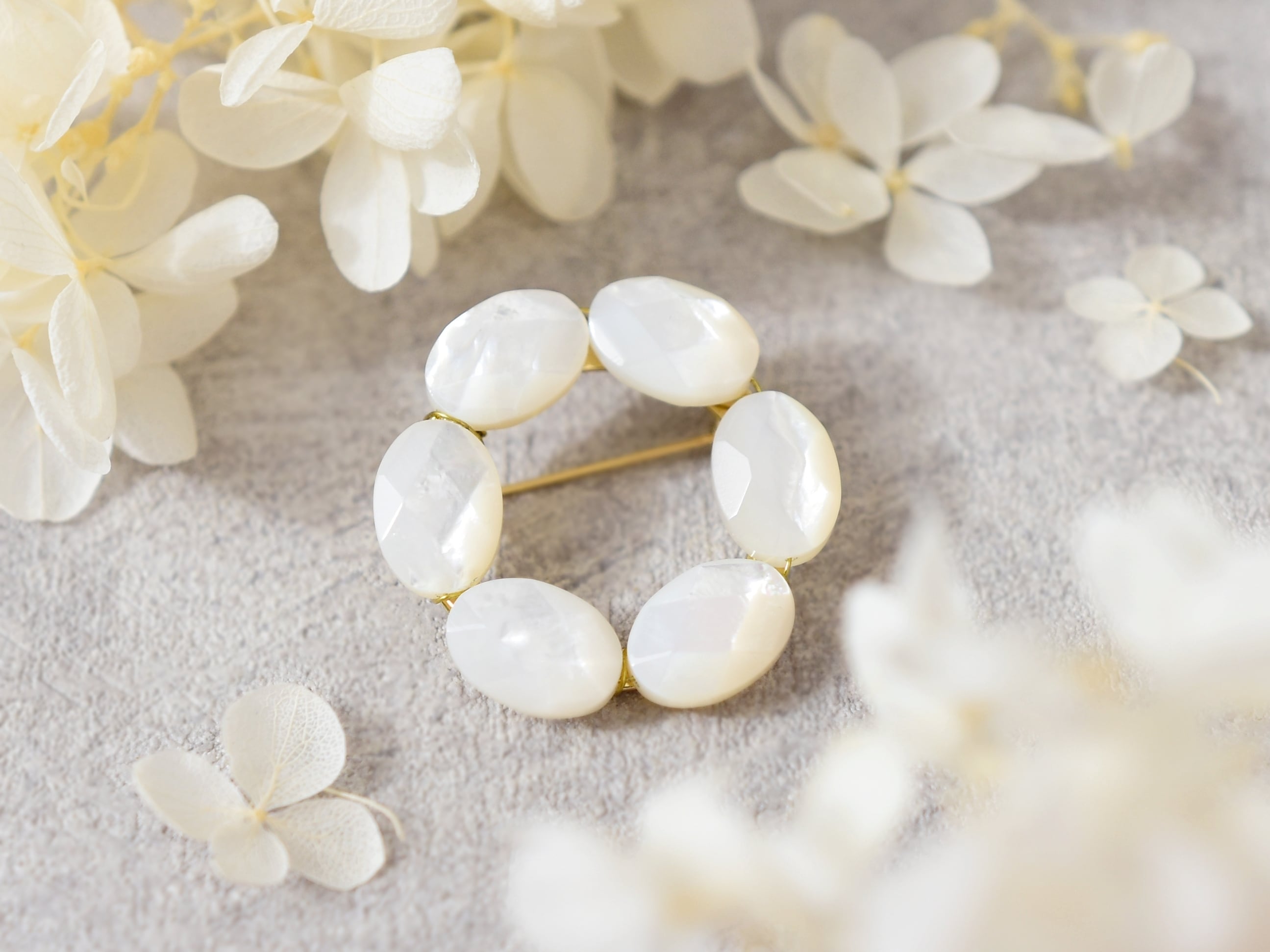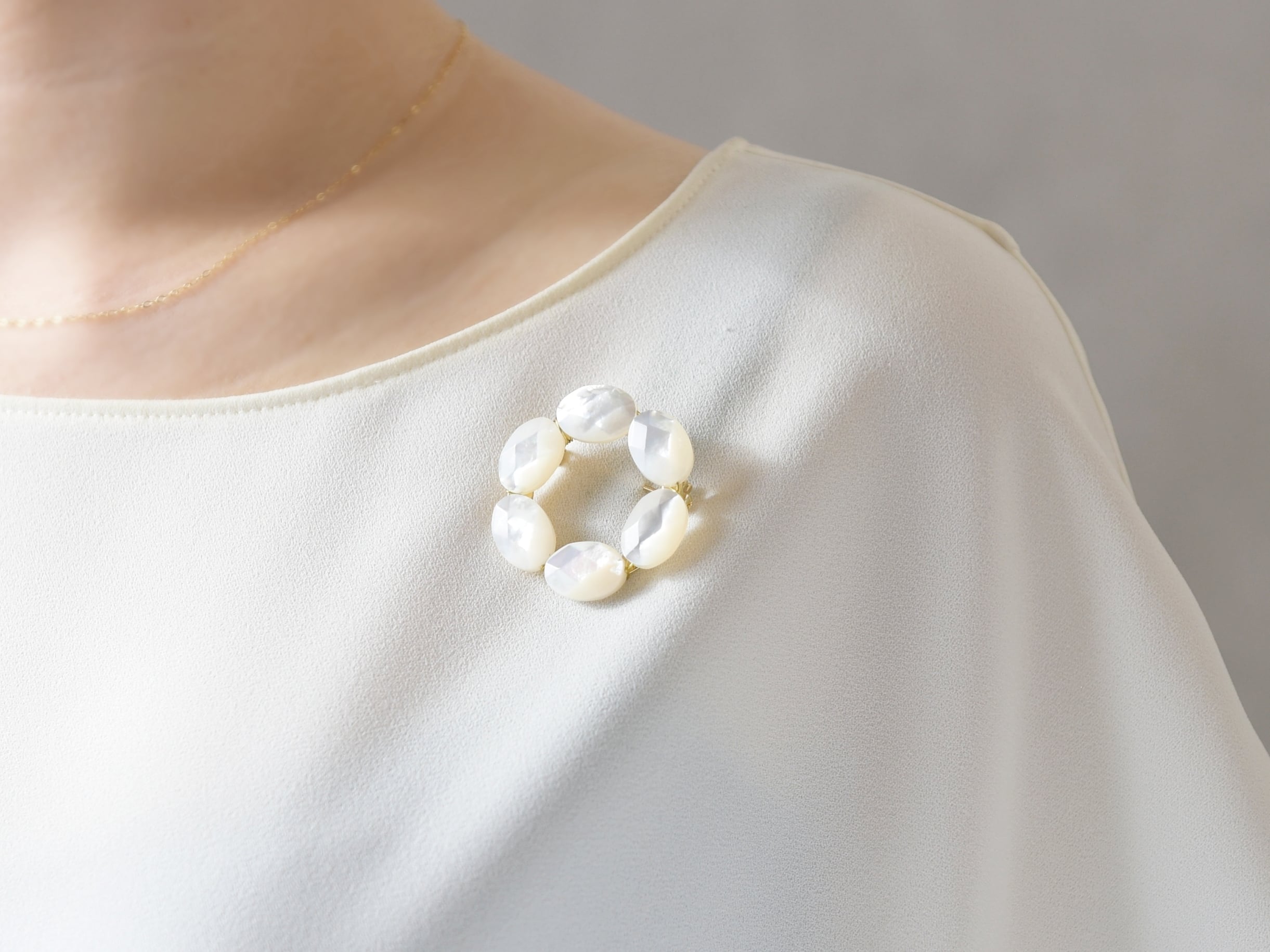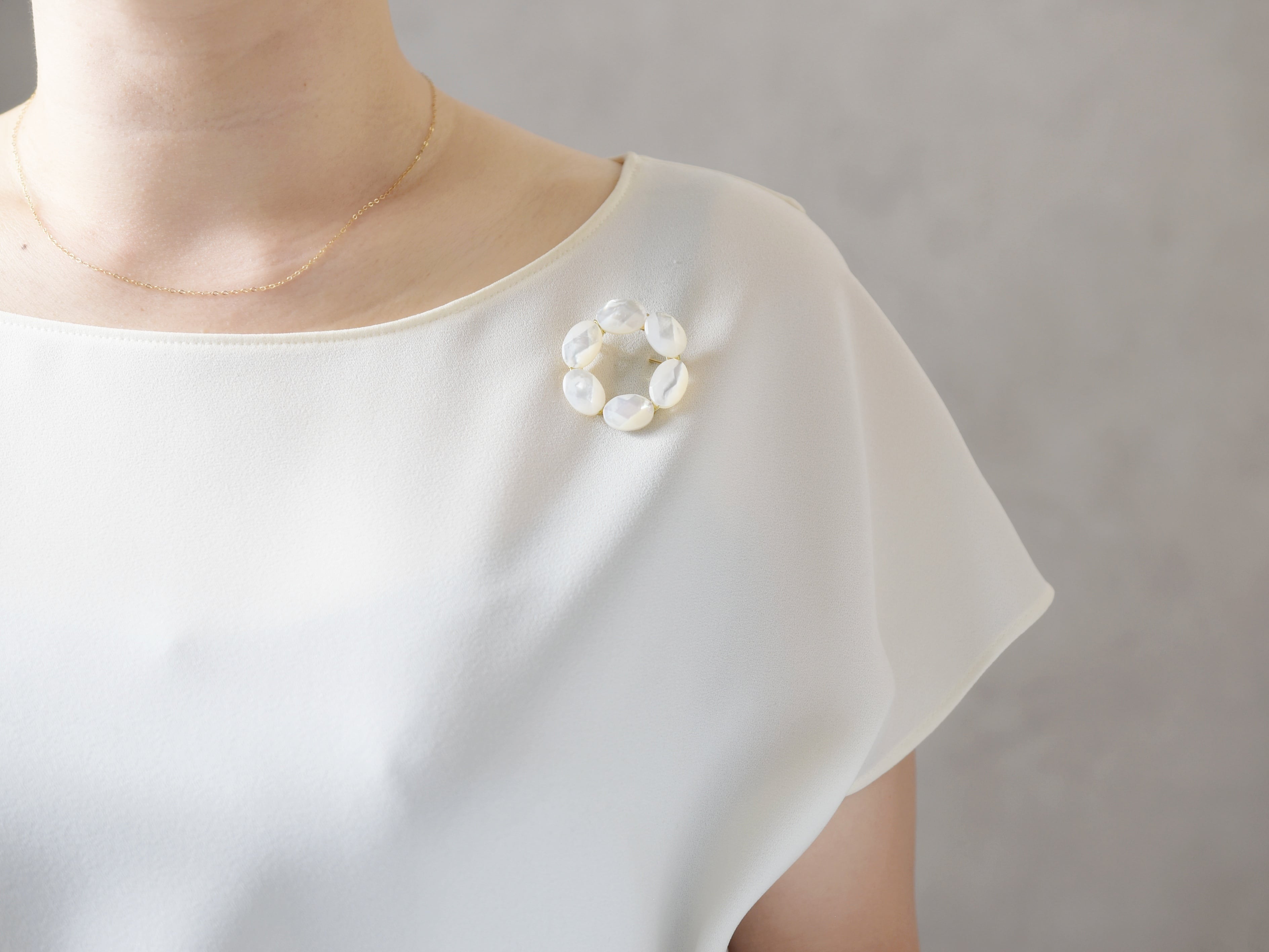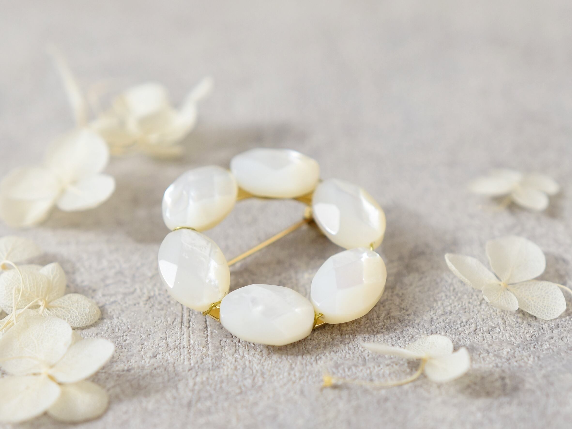 【ブローチ/Sサイズ】上品シンプルなホワイトシェル(高品質な白蝶貝/白)