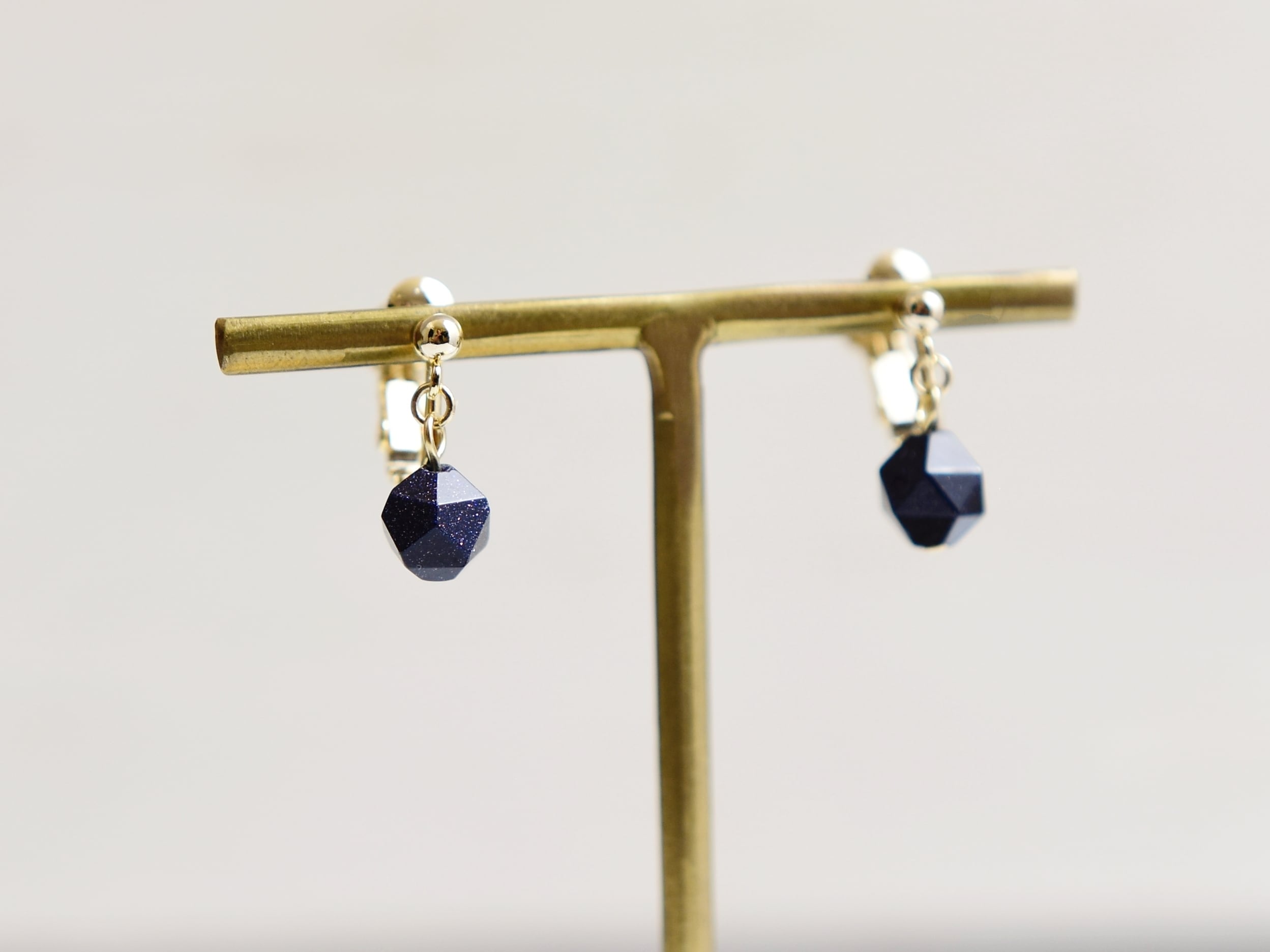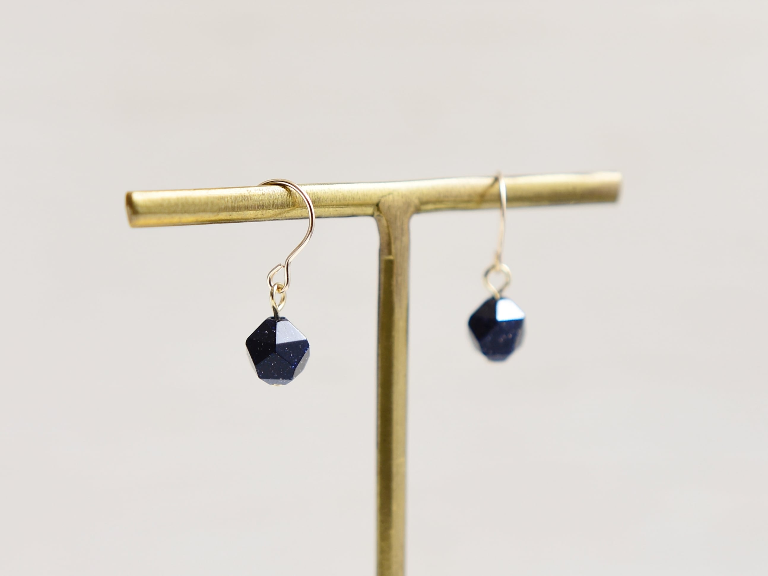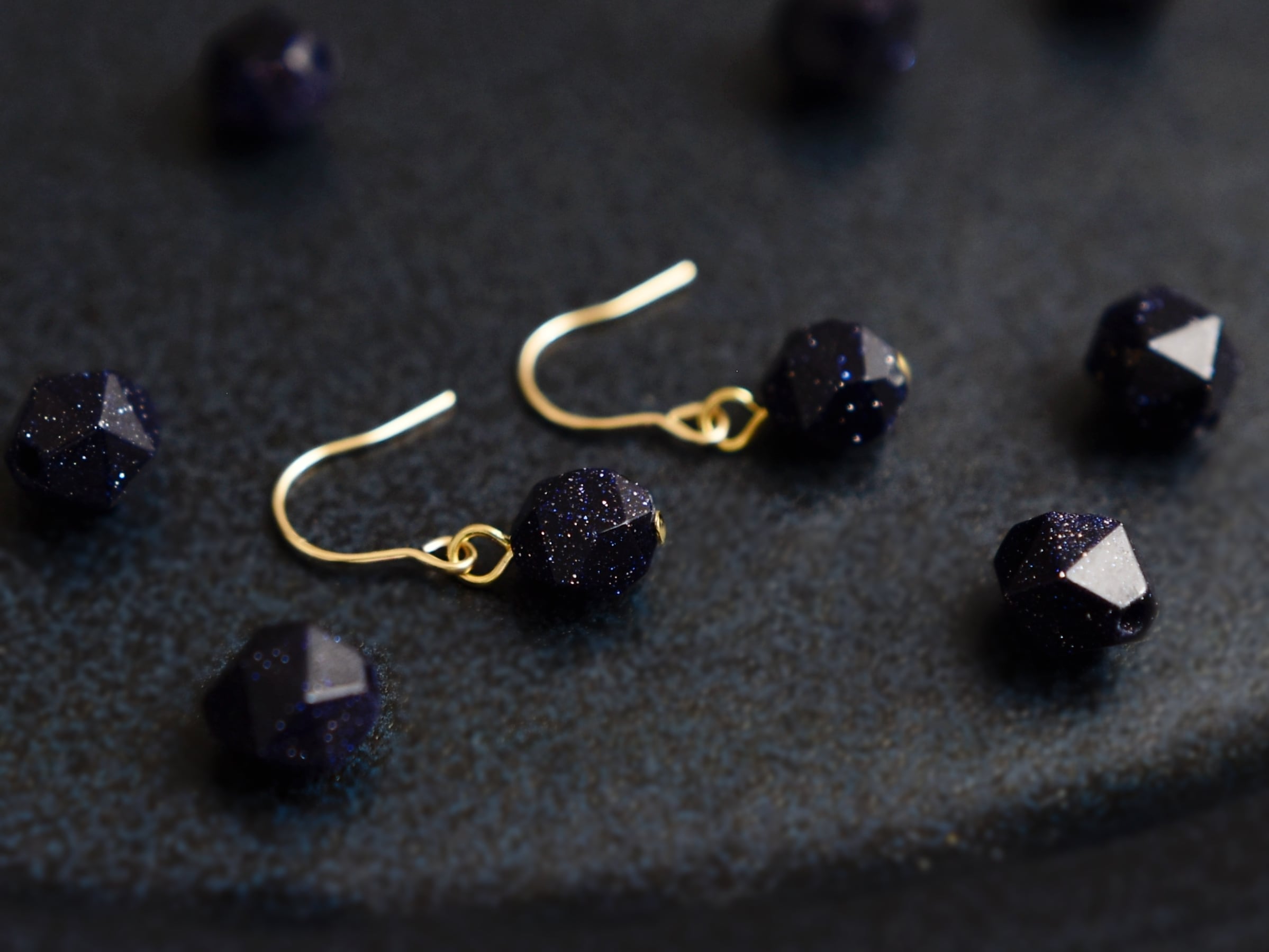 【14kgf ピアス/イヤリング】天の川のような星空(ブルーゴールドストーン)