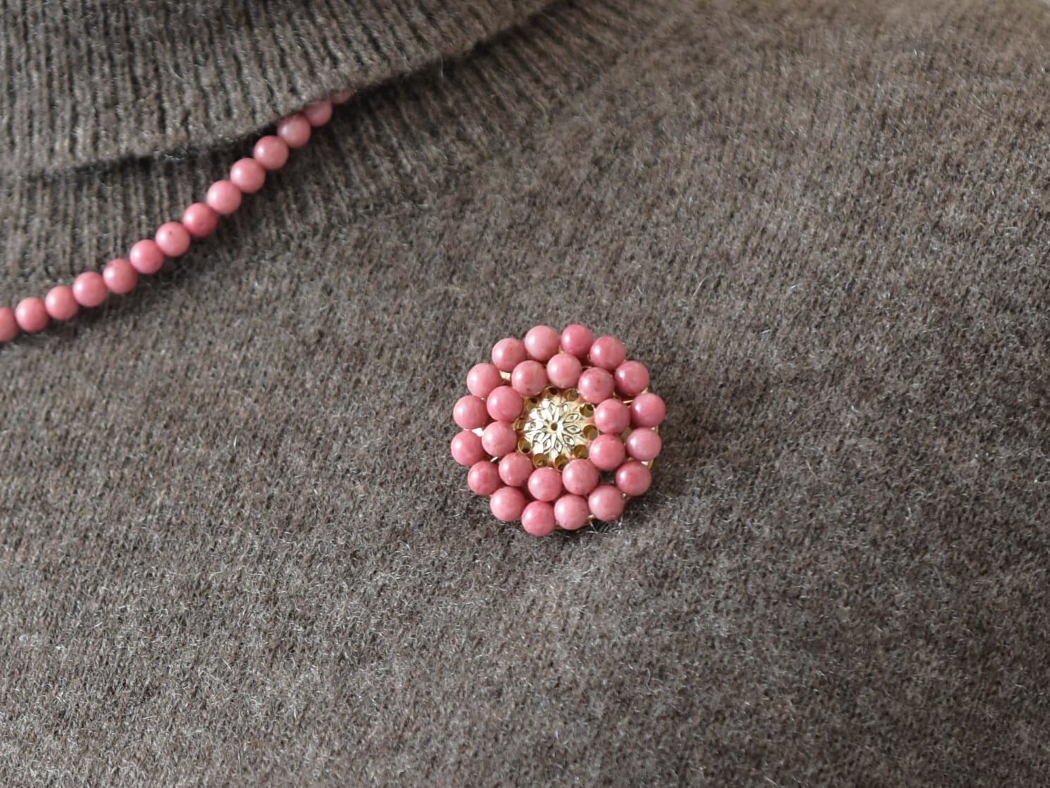 【14kgf ピアス/イヤリング】くすみピンクの木苺( 天然石・シリシャスシスト)