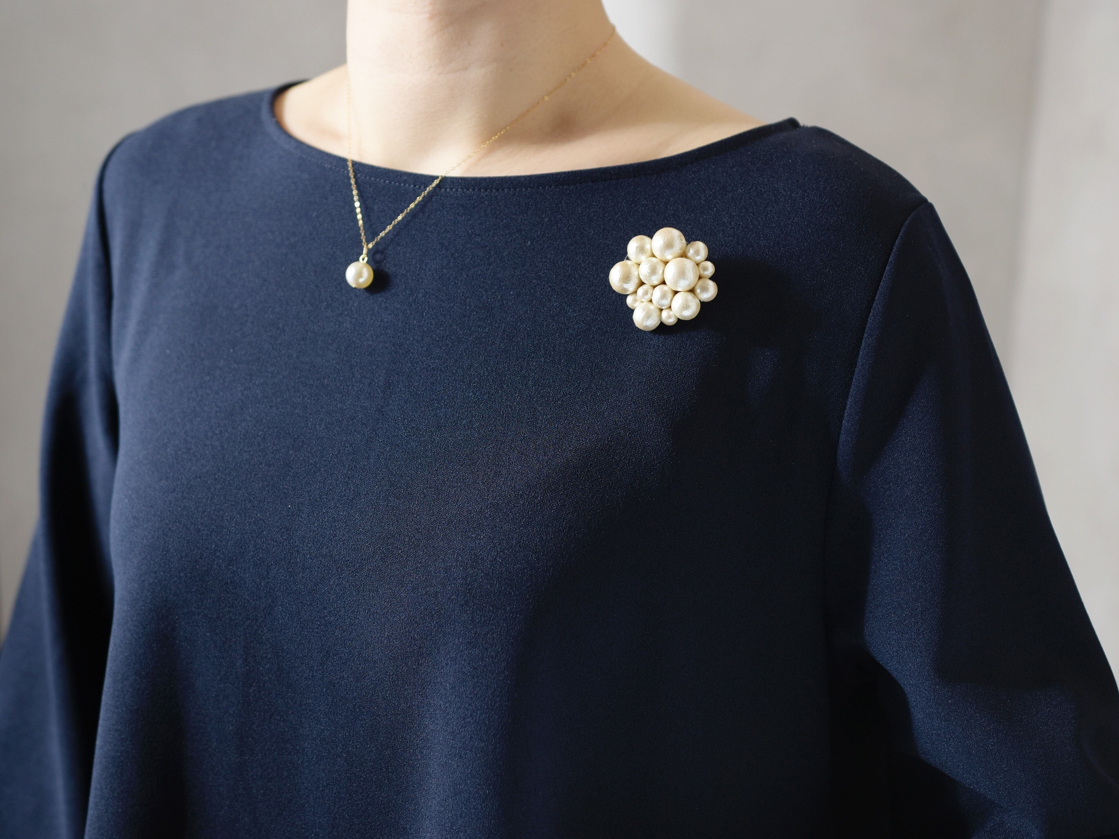 コットンパールをぎゅっと集めた、結晶のようなブローチ。