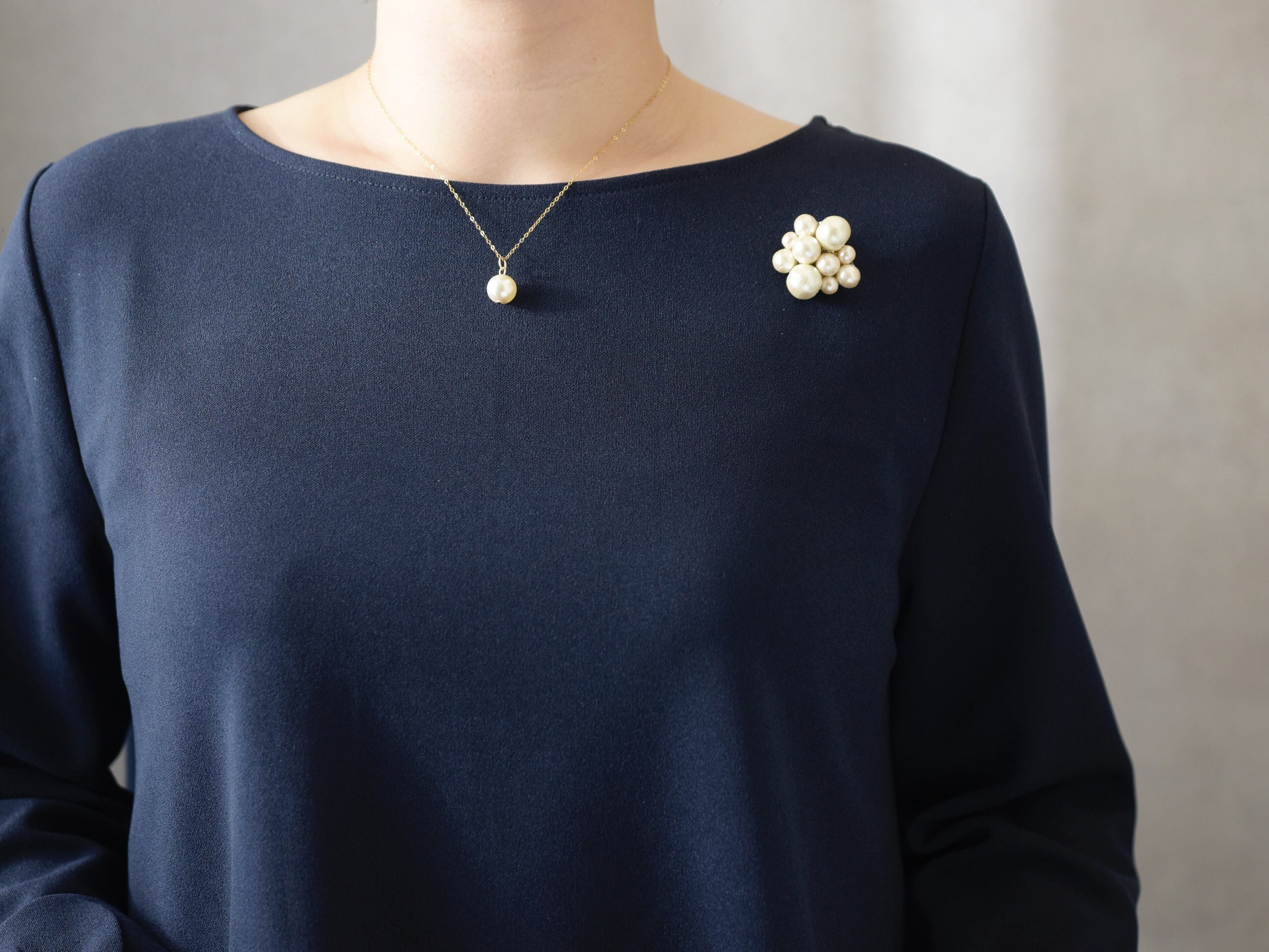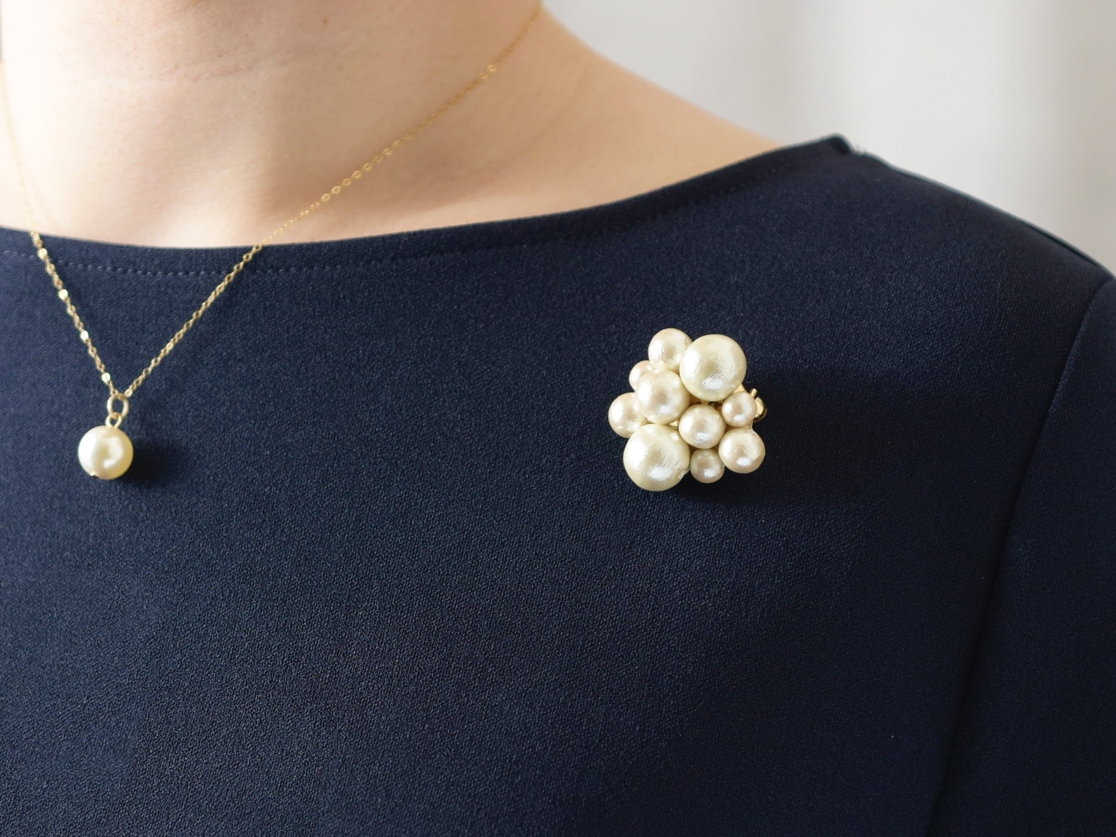 自然体な華やかさがプラスできるコットンパールのブローチ。