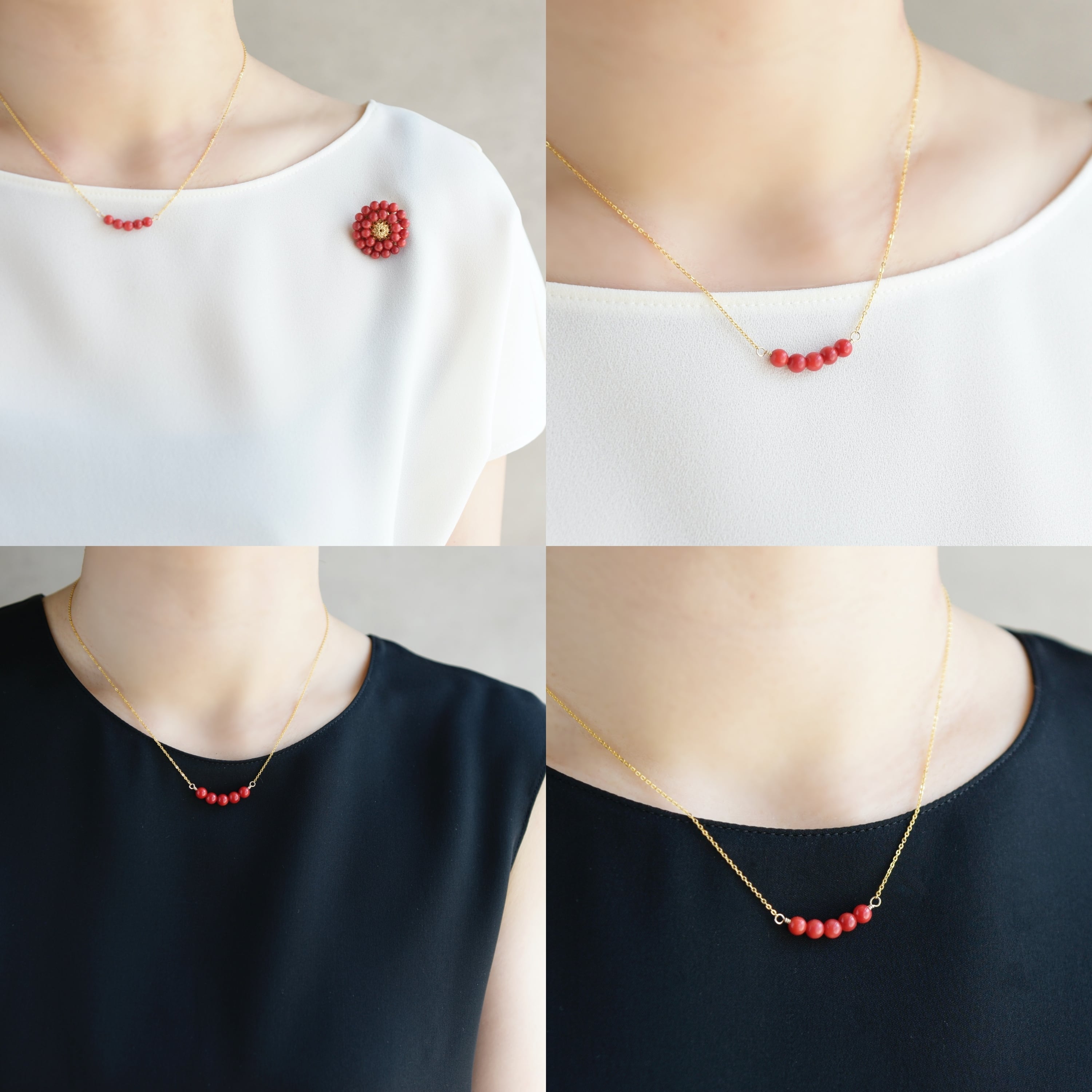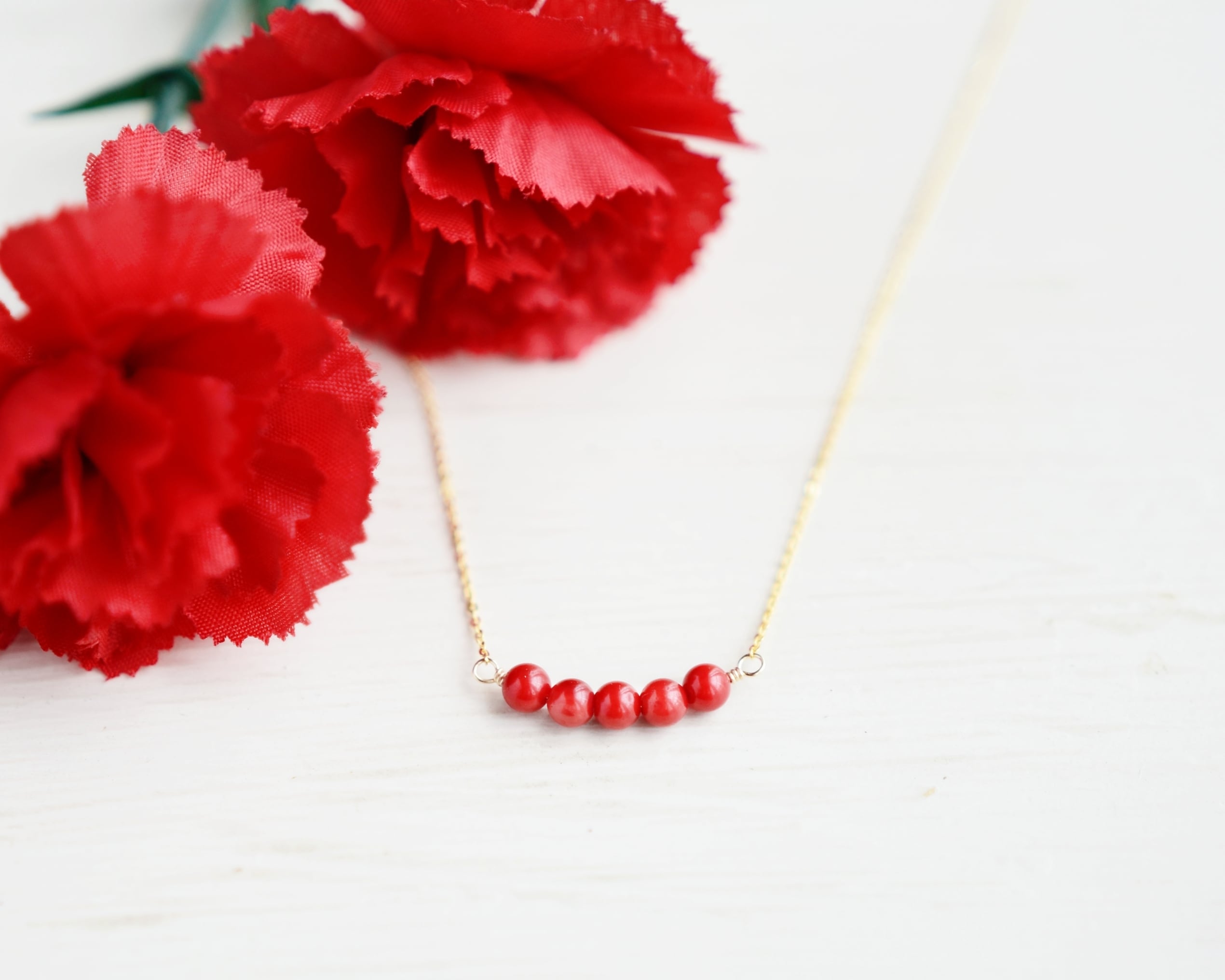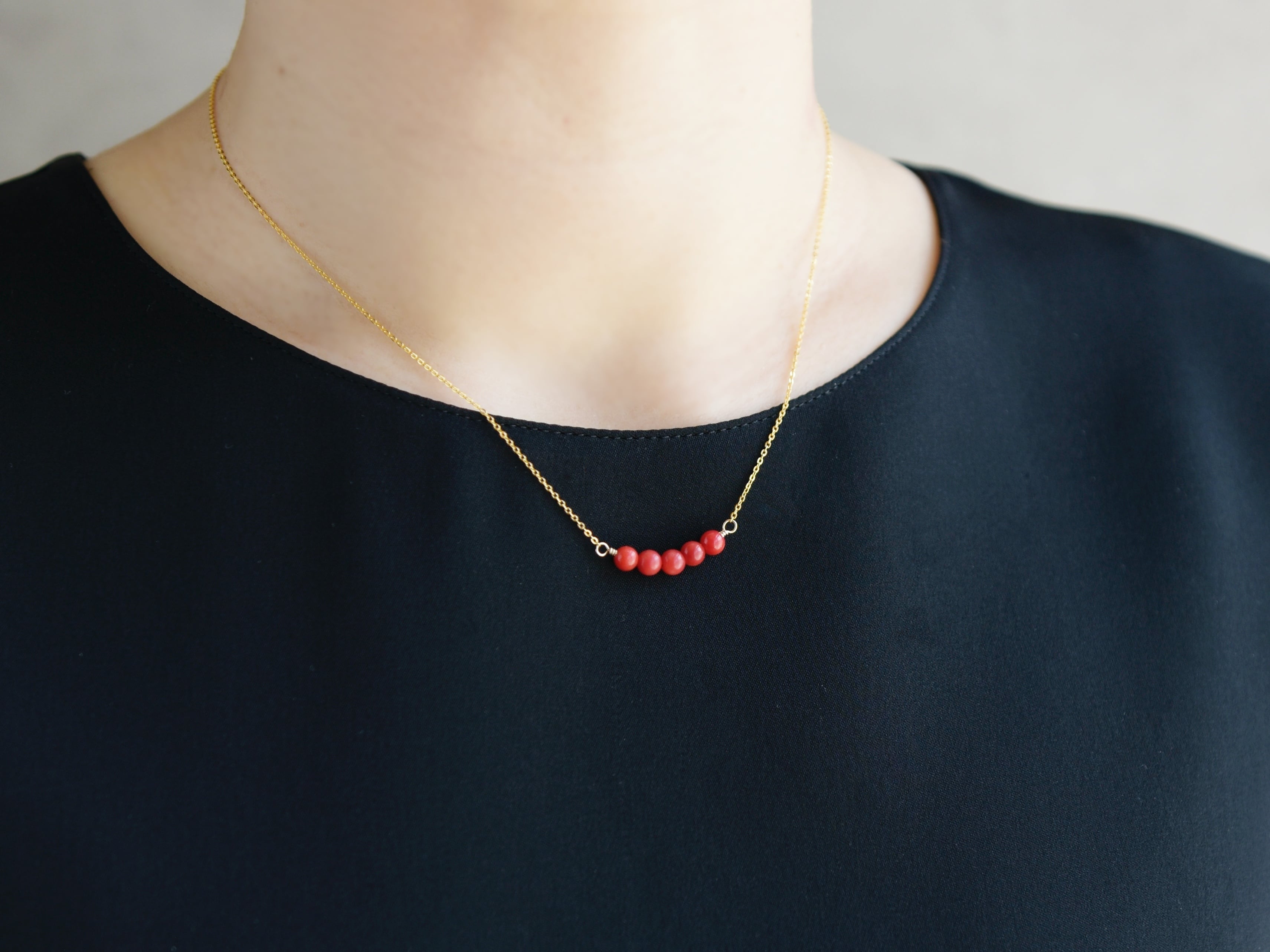 【14kgf ネックレス】シンプルな赤珊瑚(3月誕生石)/女性の還暦祝いにも