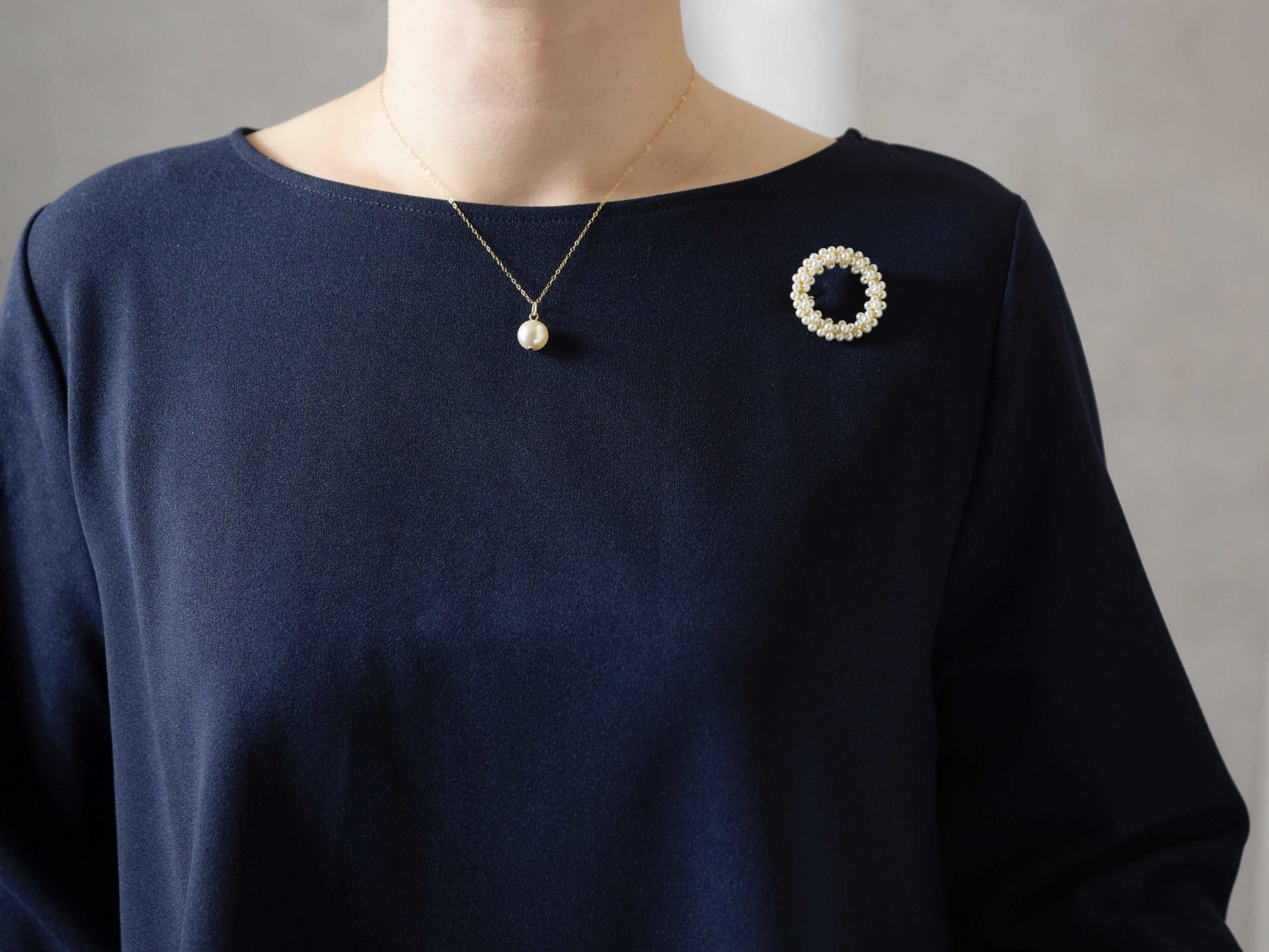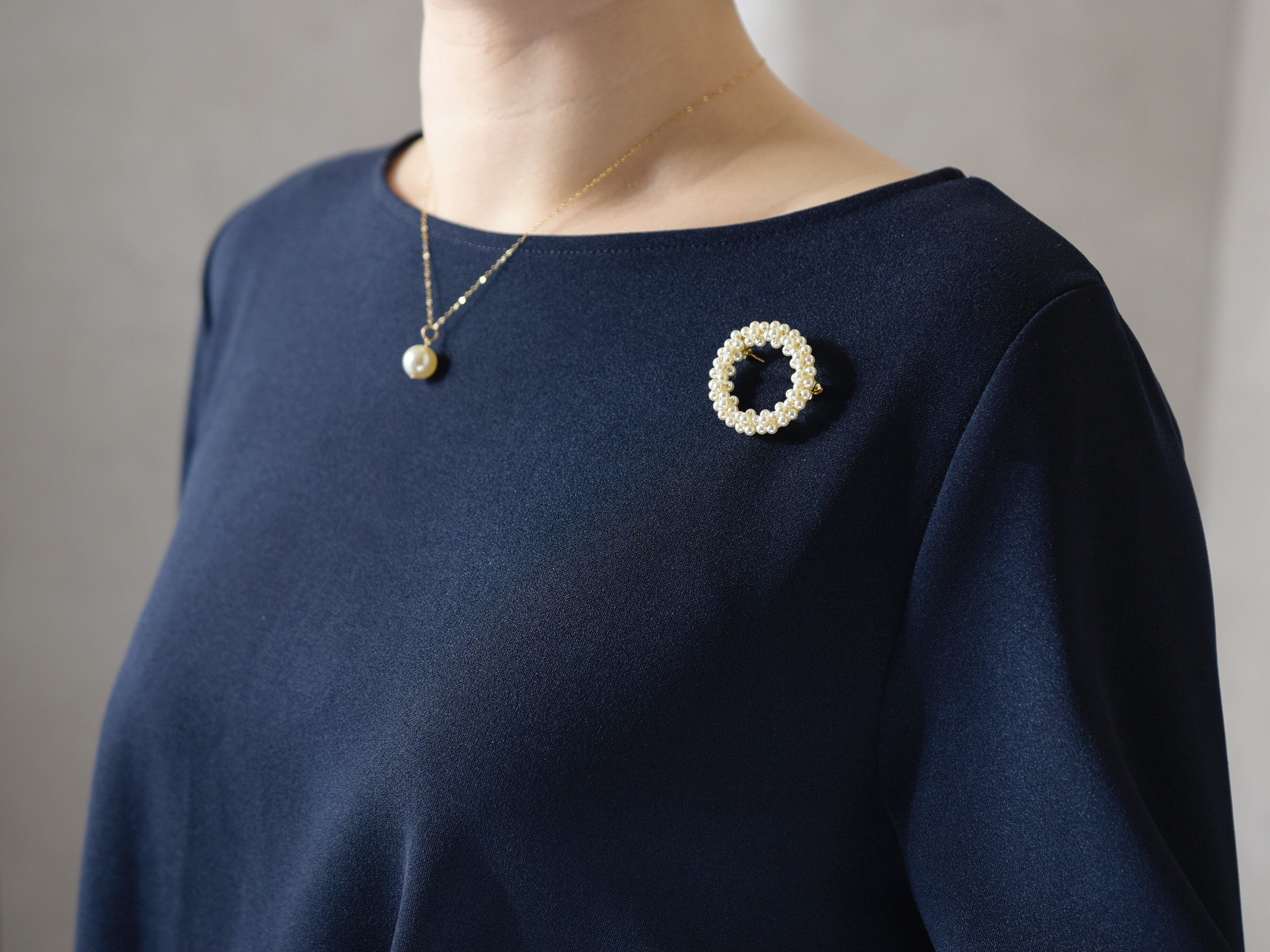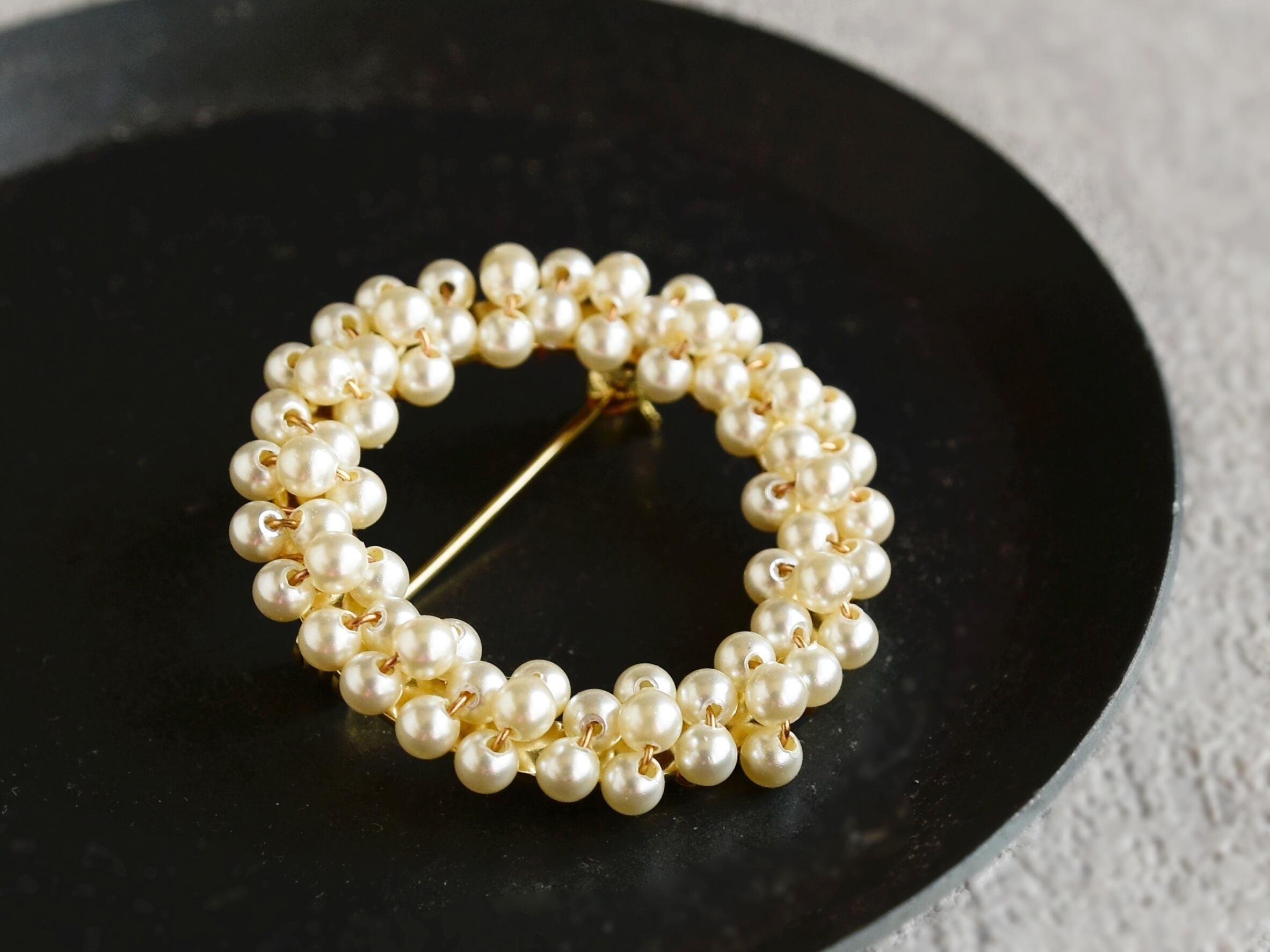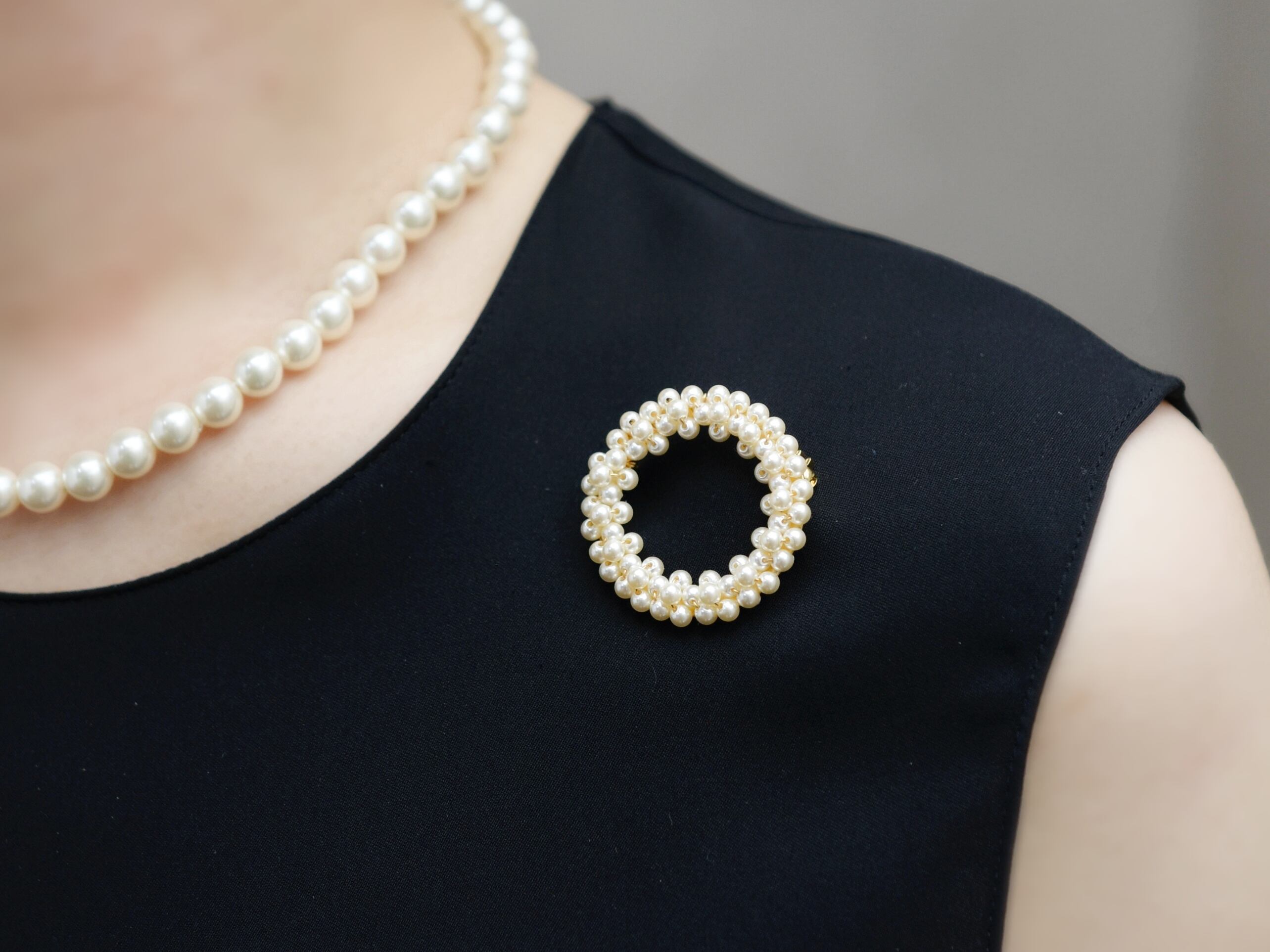 【ブローチ/S(M・Lに変更可)】繊細なパールのリース(セットに変更可能)