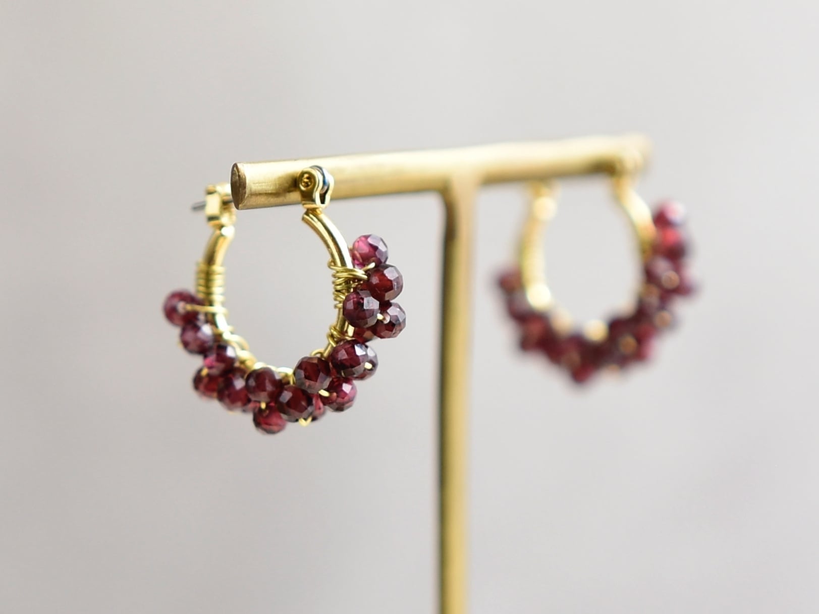 誕生石(天然石)でレースを編んだようなフープピアス/フープイヤリング。