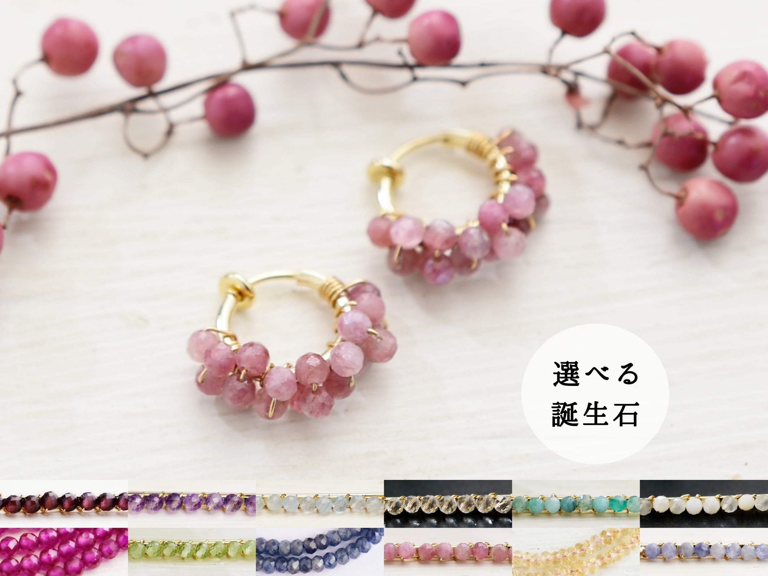 12ヶ月の誕生石から選べる【チタン フープピアス/フープイヤリング(小サイズ)】
