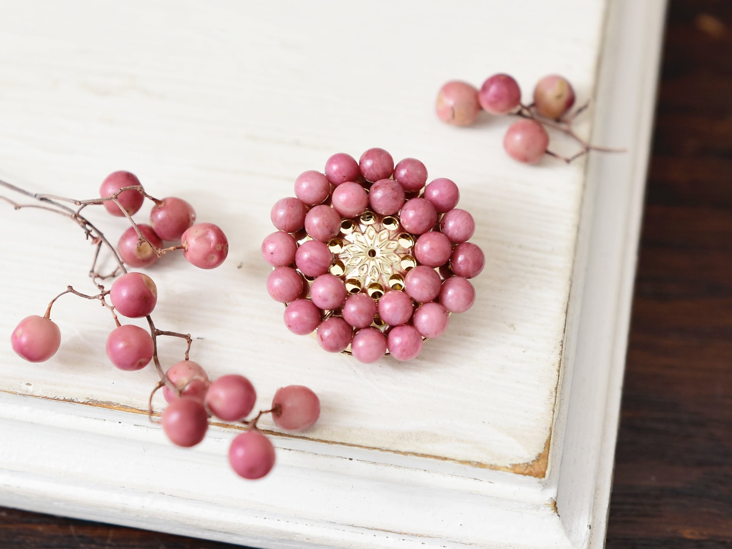 「つぶつぶいちご」なストロベリークリーム色の天然石が