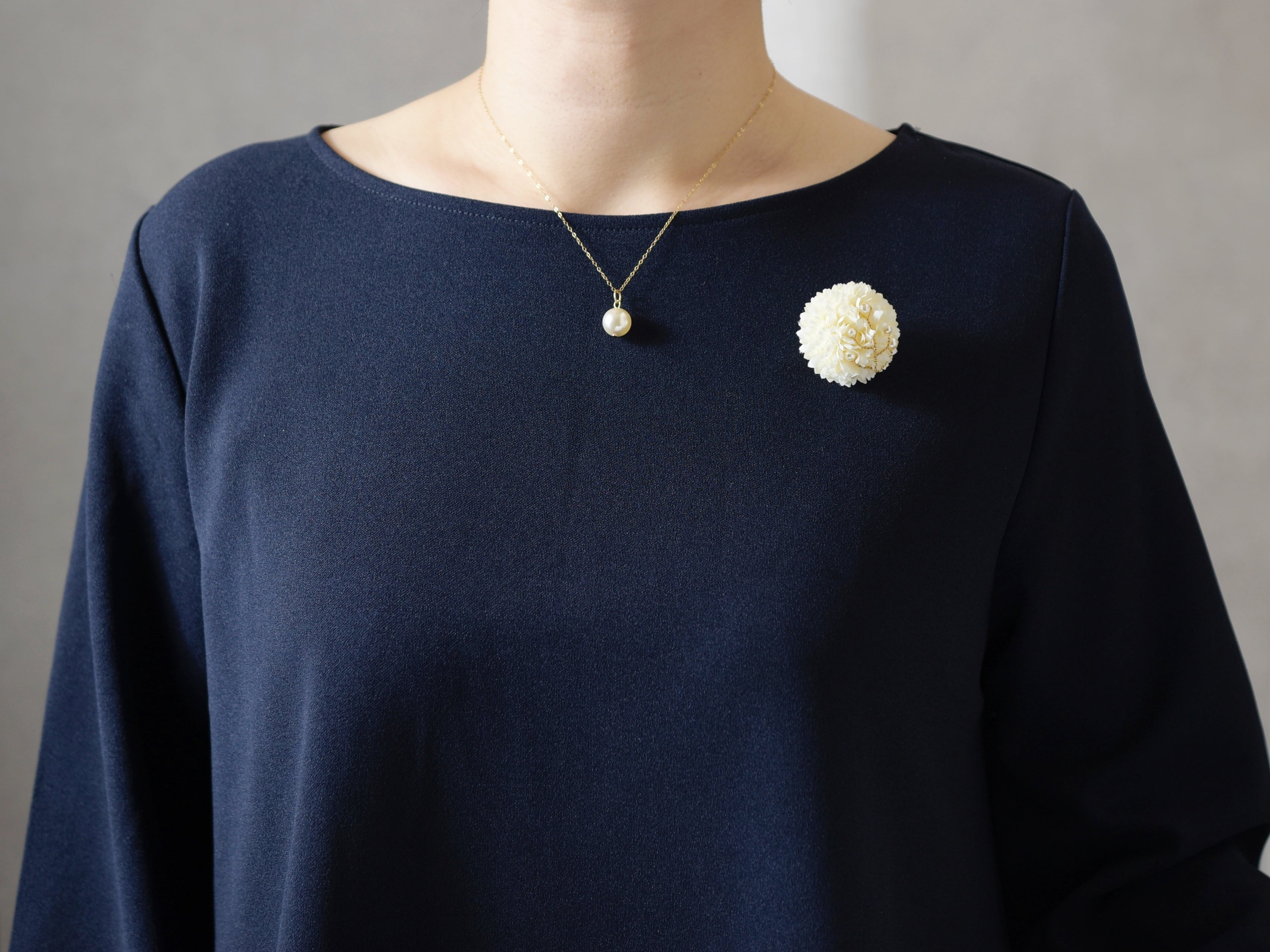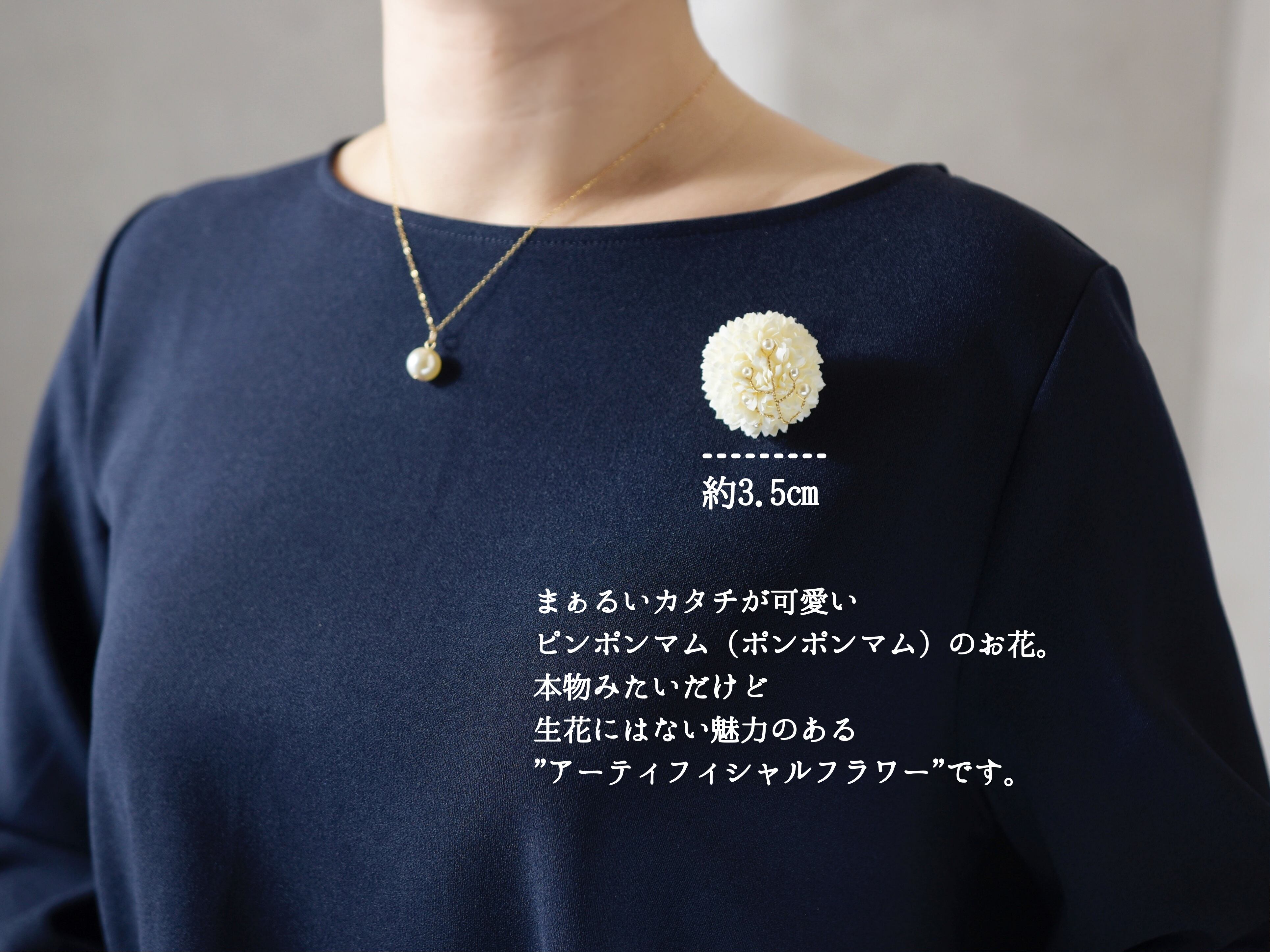 【コサージュ】パールの小枝とピンポンマム/小ぶりな白いお花(セットに変更可能)