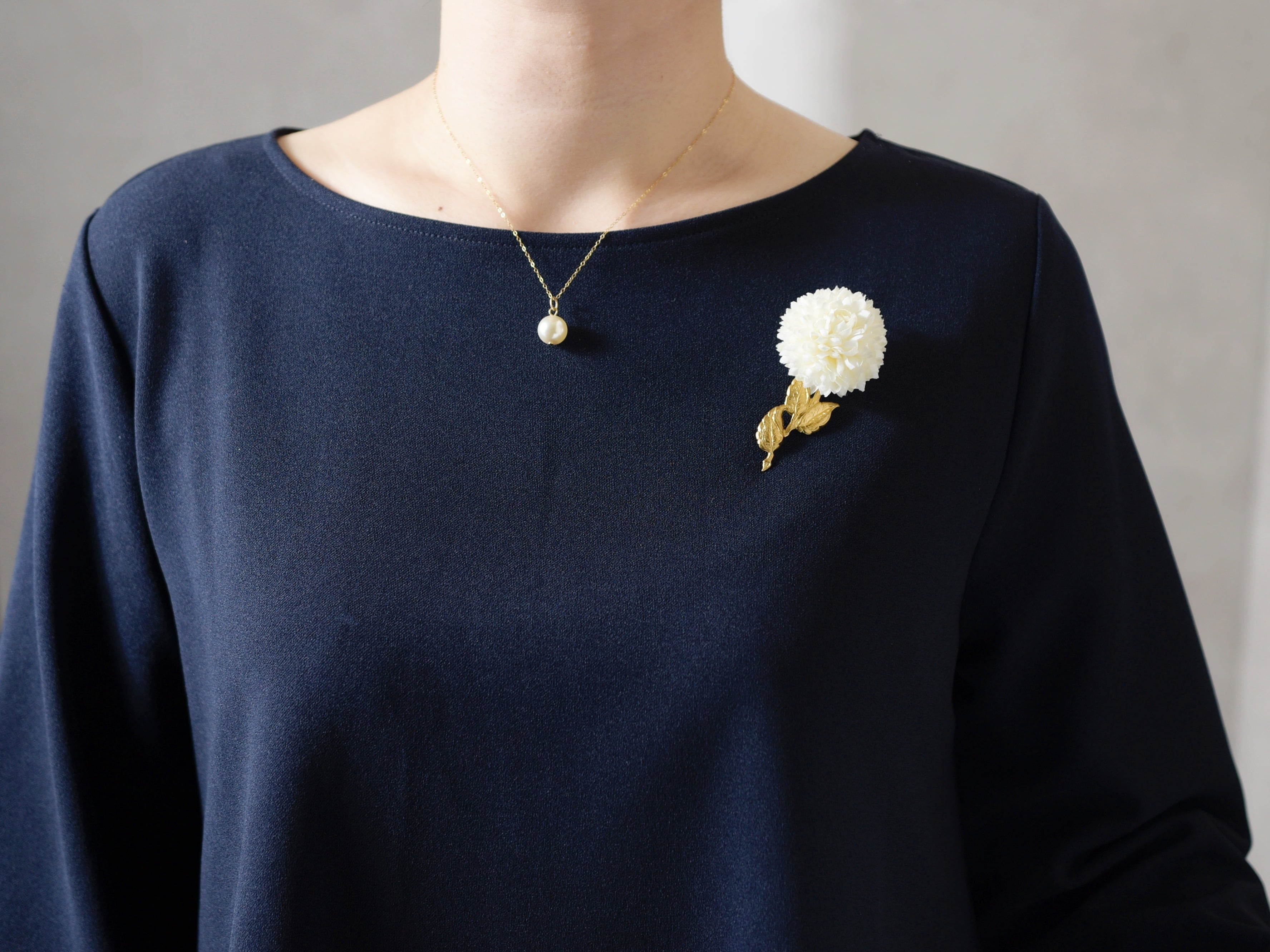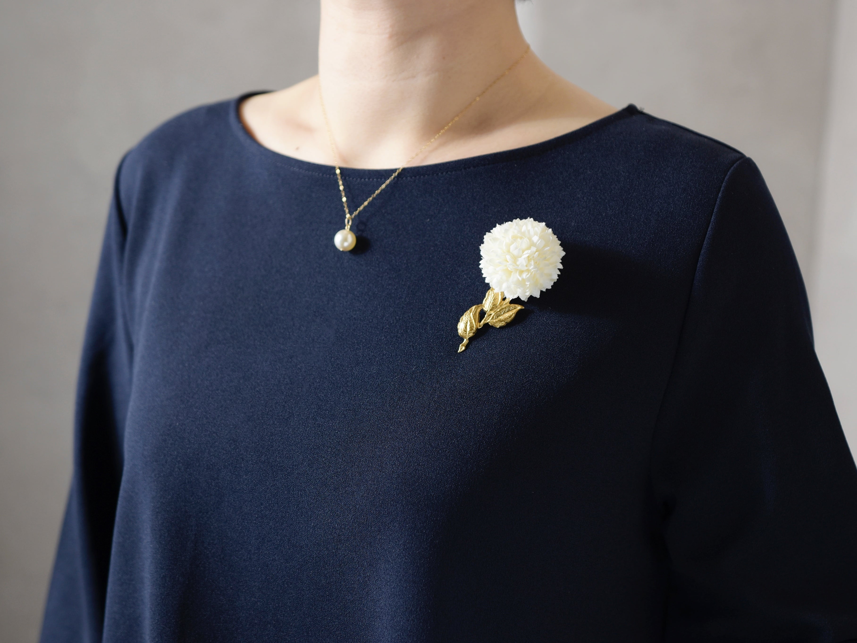 【コサージュ(ホワイト/白)】ピンポンマム/ヴィンテージな真鍮の一輪のお花
