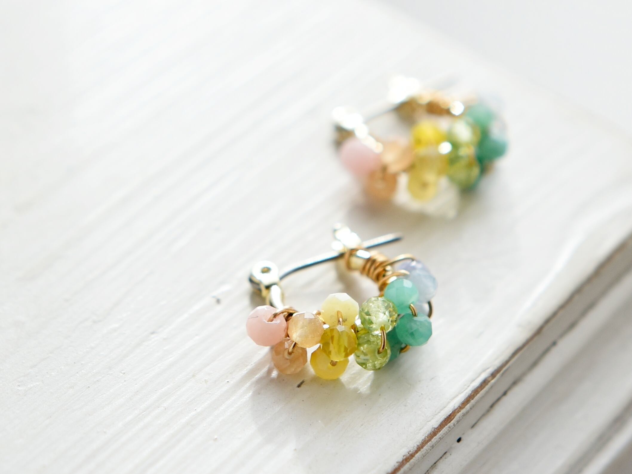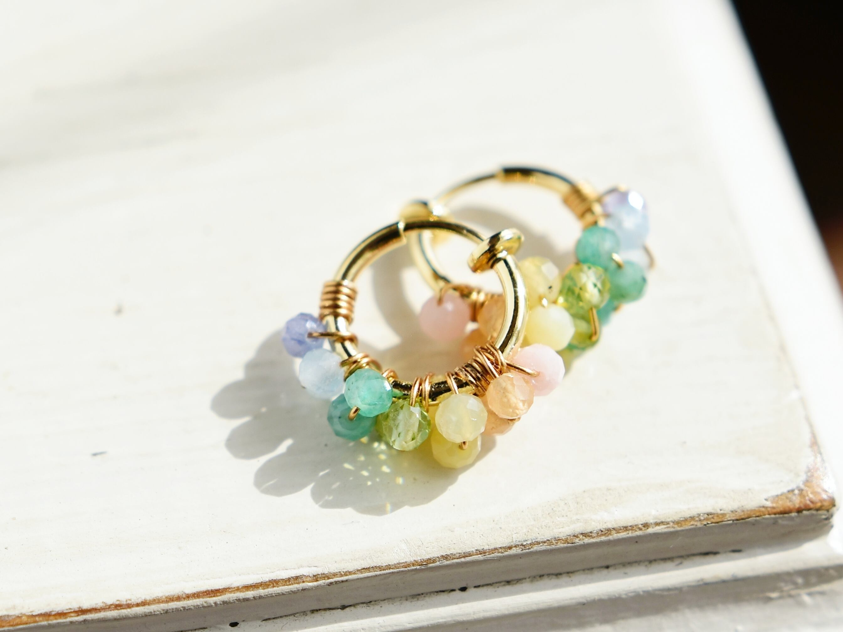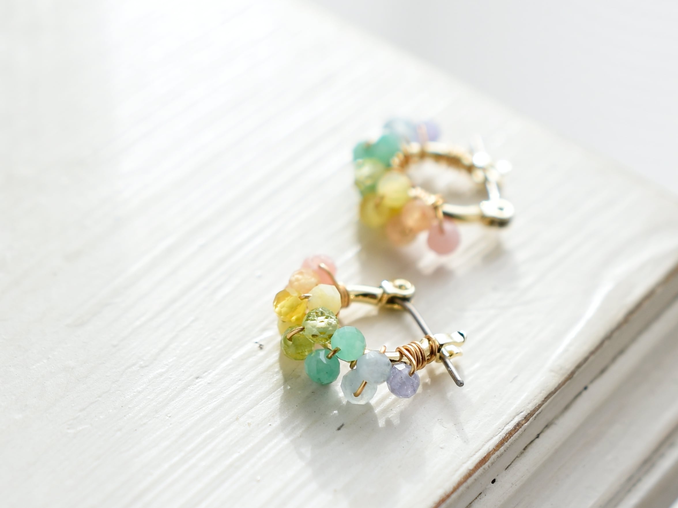 春の虹【チタン ピアス/イヤリング(小)】パステルカラーのカラフル・レインボー