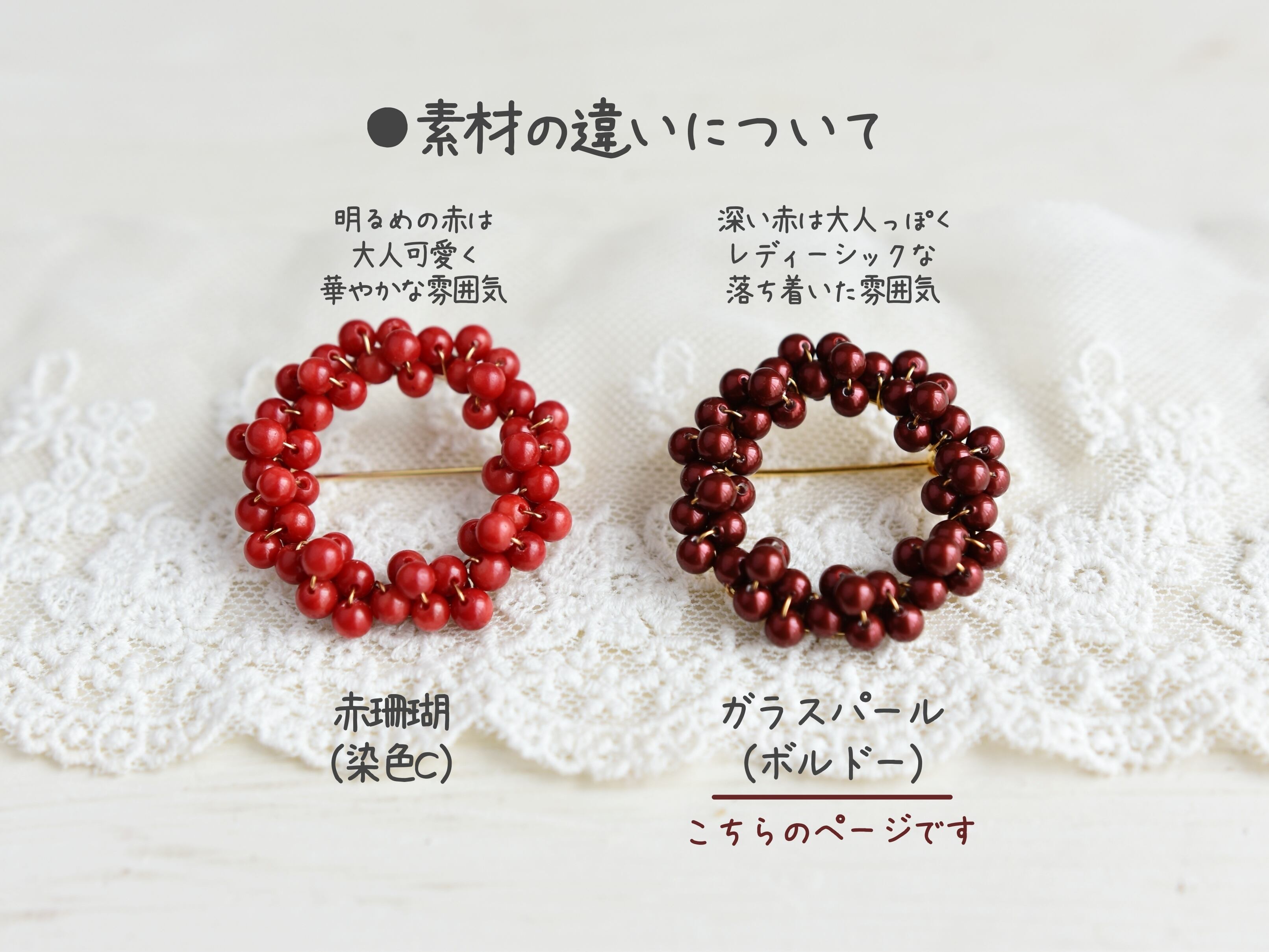 【ブローチ/S(M・Lに変更可能)】ボルドーの実(濃い・深い赤)/還暦祝いにも