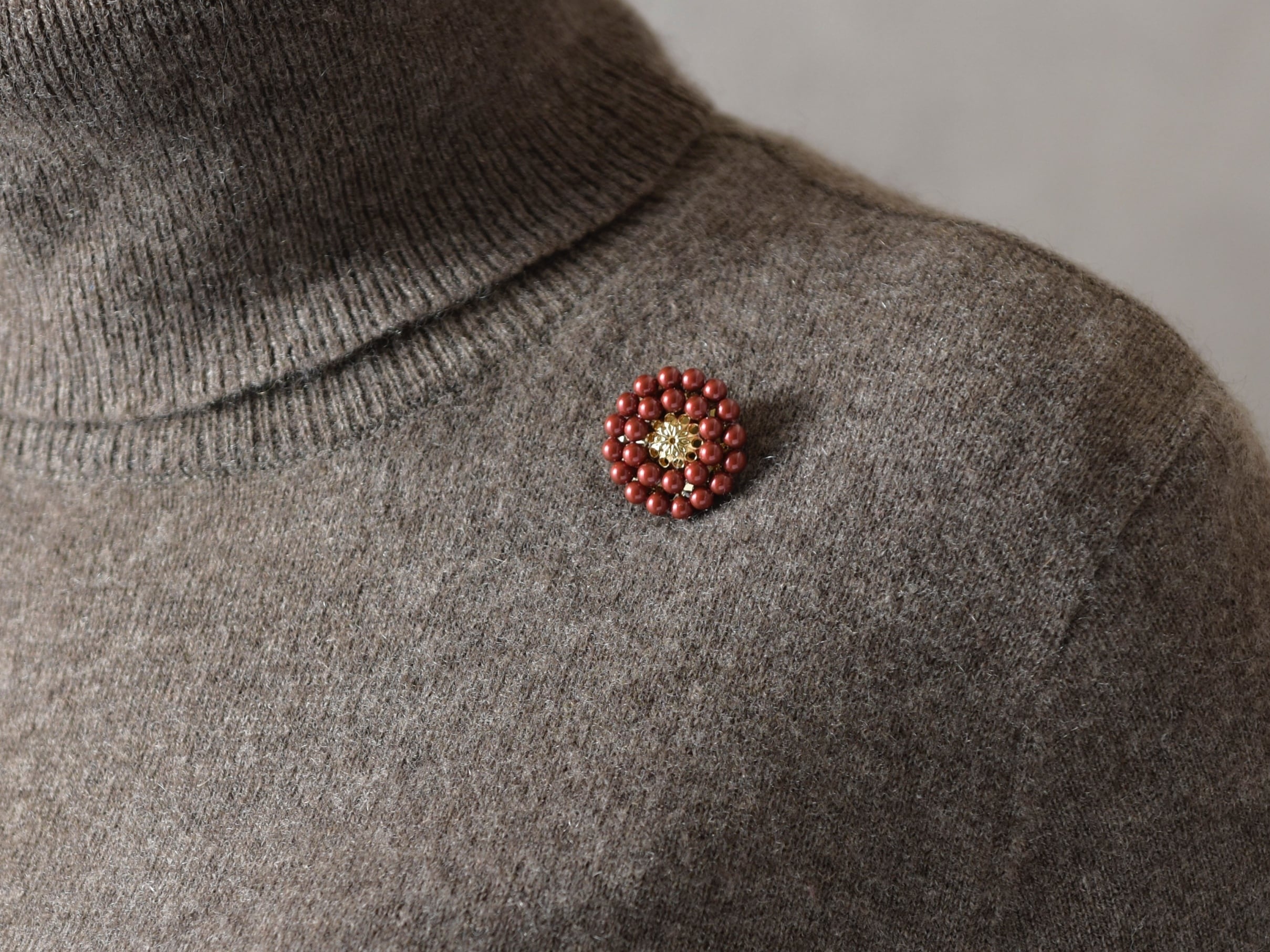 人気のブローチをボルドー色のカラーパールにておつくりしました。