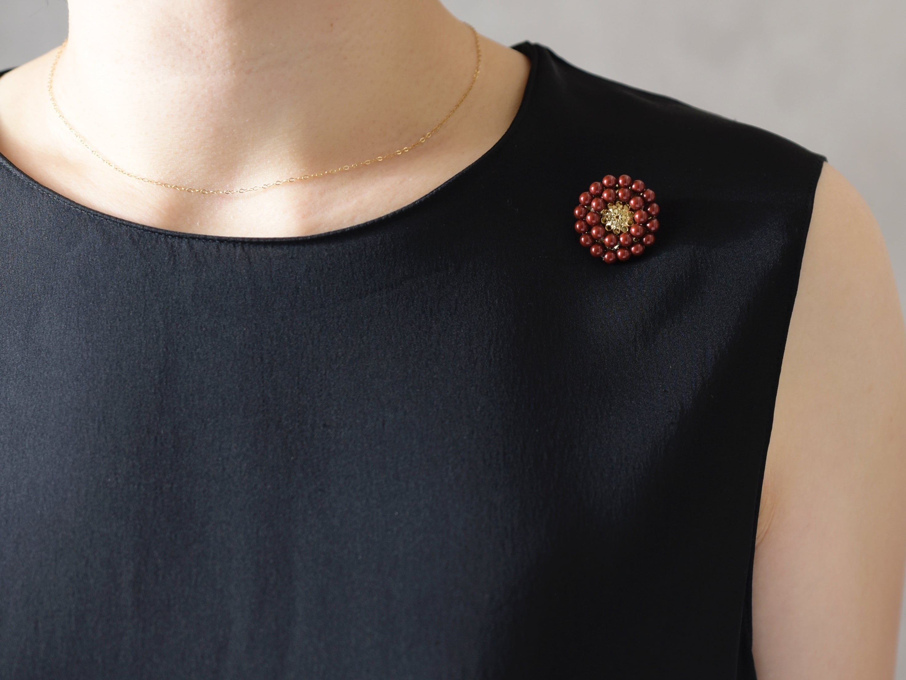 【ブローチ/帯留め】アンティークレトロなお花・ボルドー(濃い赤・還暦祝いにも)