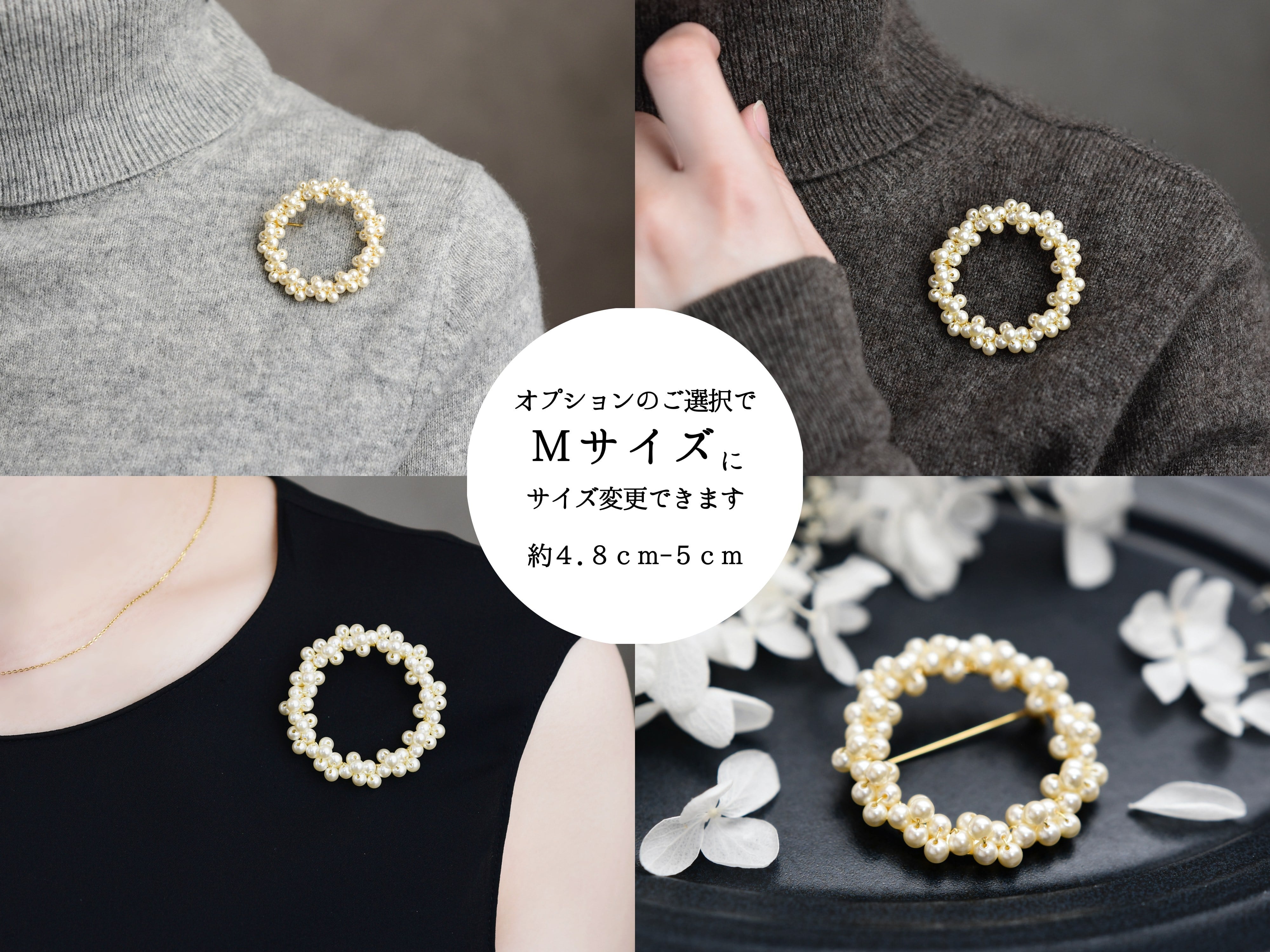 【ブローチ/S(M・Lに変更可)】パール(オフホワイト/セットに変更可能)