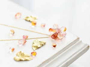【14kgf ネックレス】夕焼けの金木犀のお花・オレンジ色ガラス
