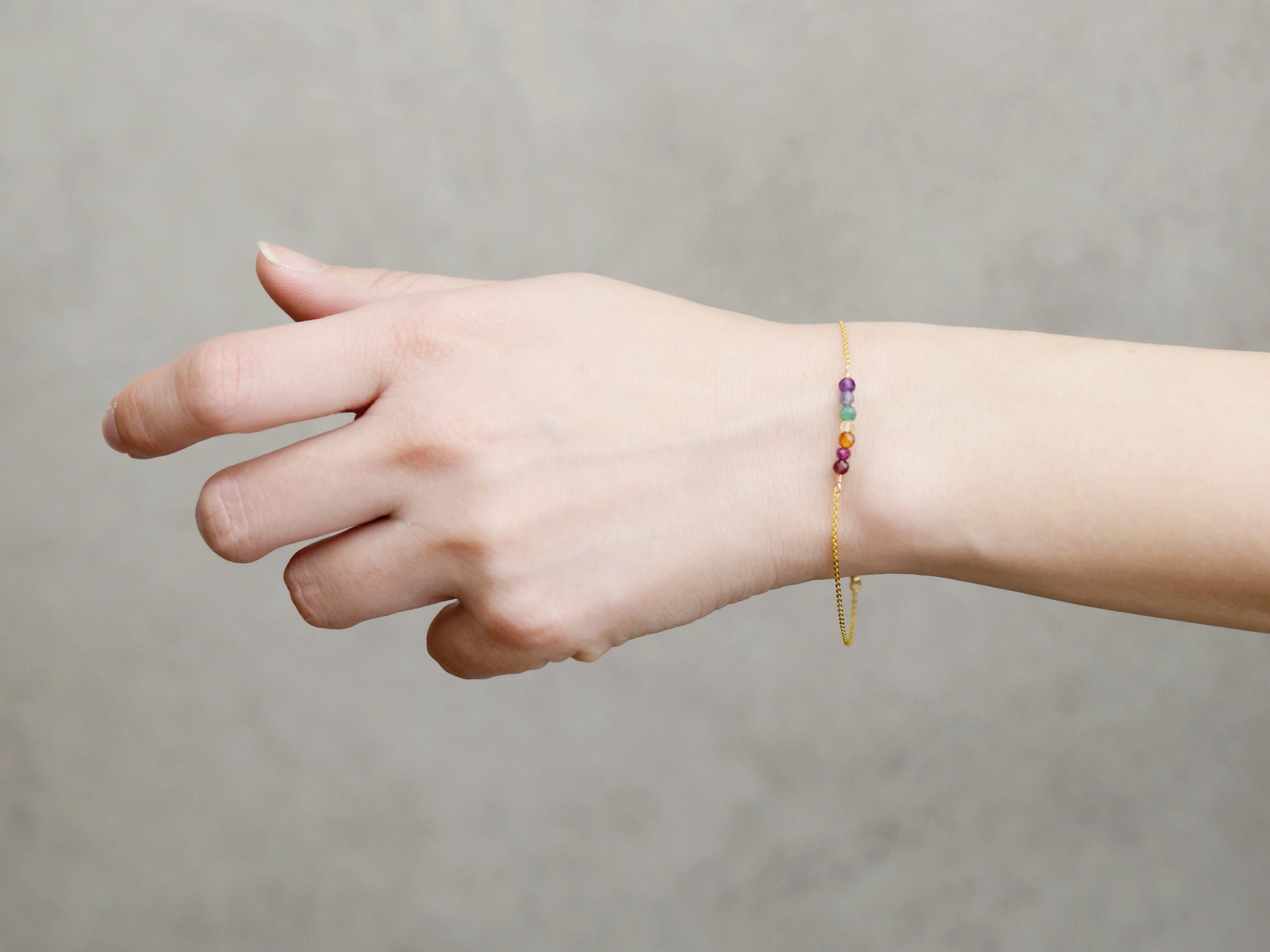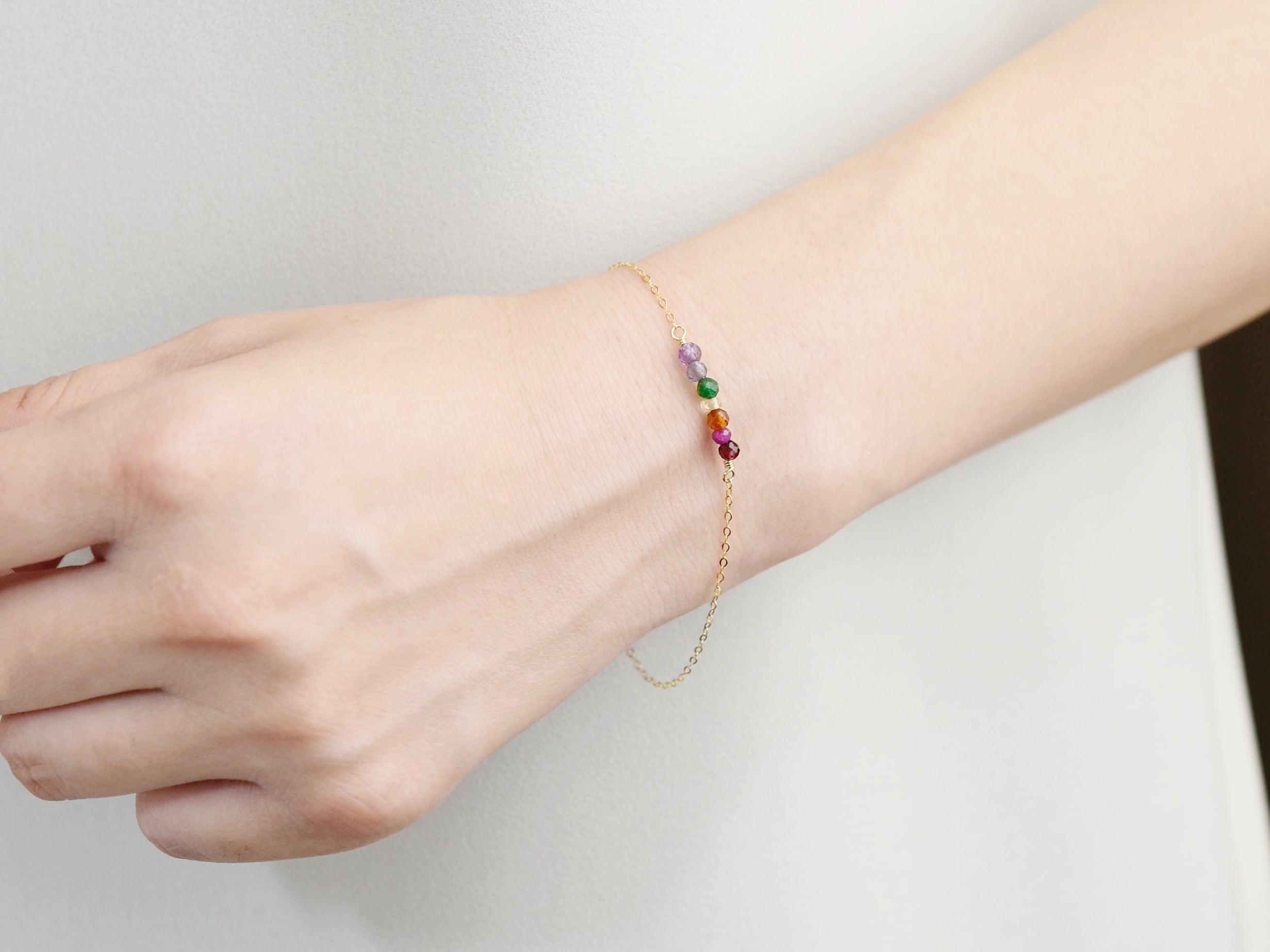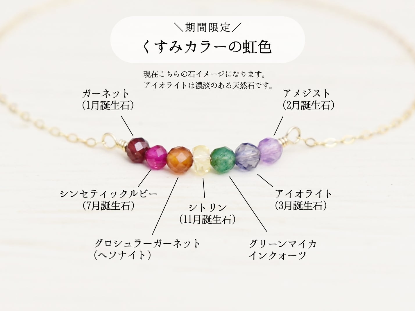 秋冬/季節限定【14kgf ブレスレット】くすみカラーの秋色カラフルな天然石の虹