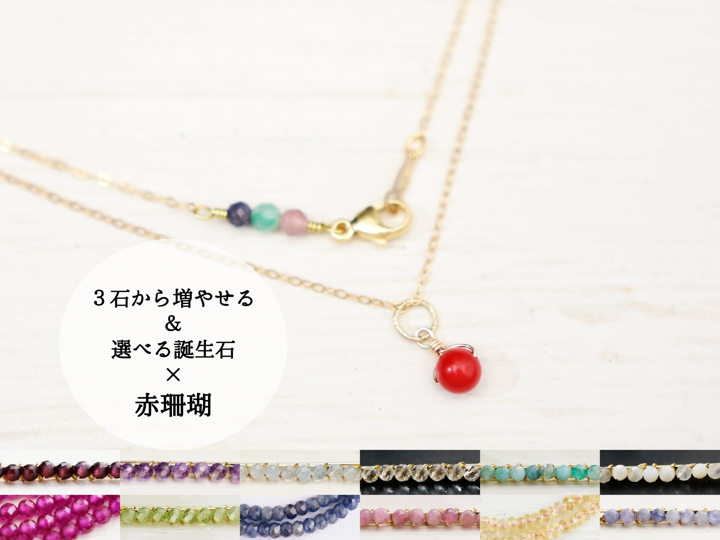 お母さんの還暦祝いに【14kgf ネックレス】赤珊瑚と選べる家族の誕生石
