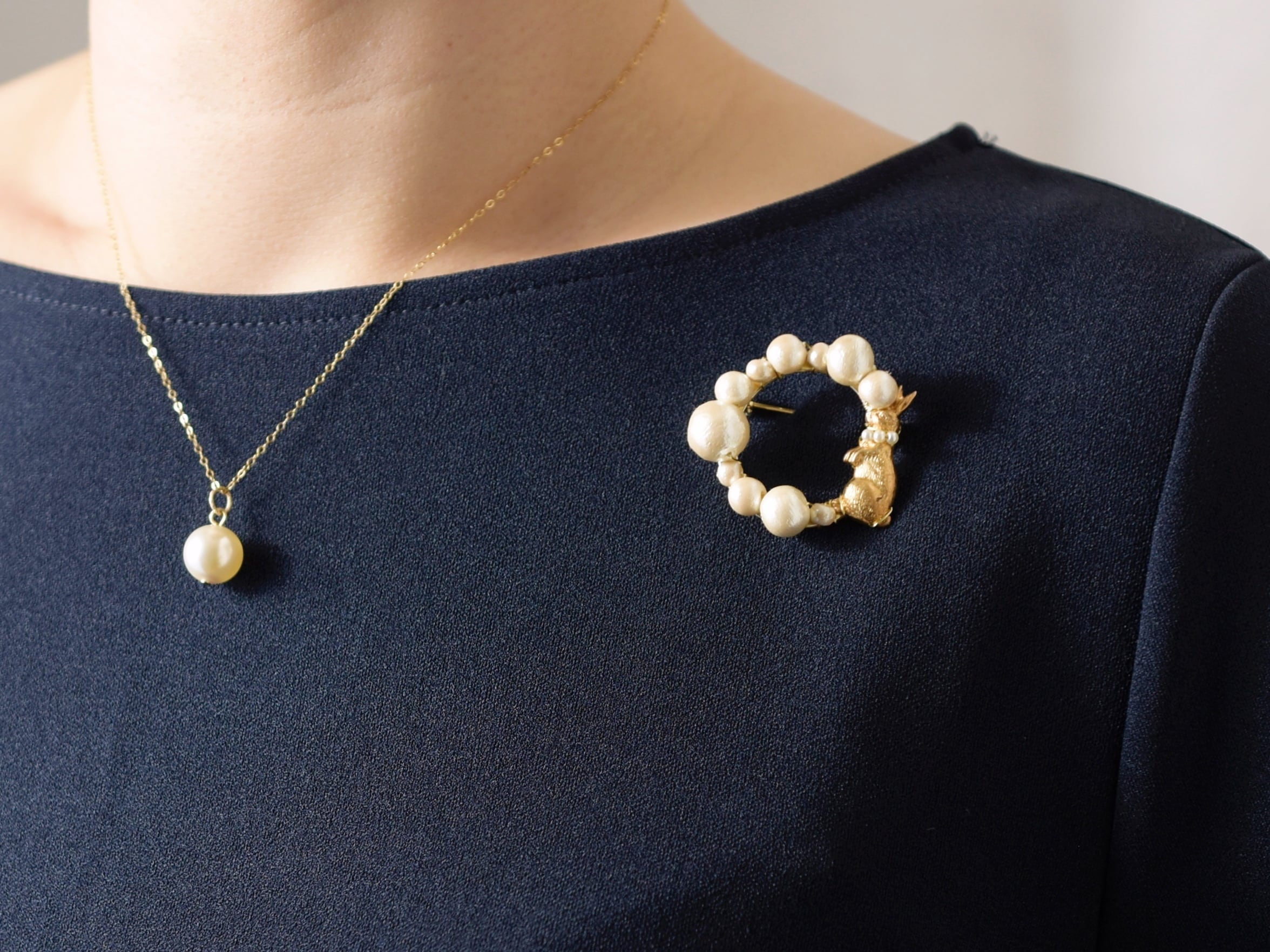 【ブローチ/S】絵本から出てきたみたいな真鍮のうさぎとパール(セットに変更可能)
