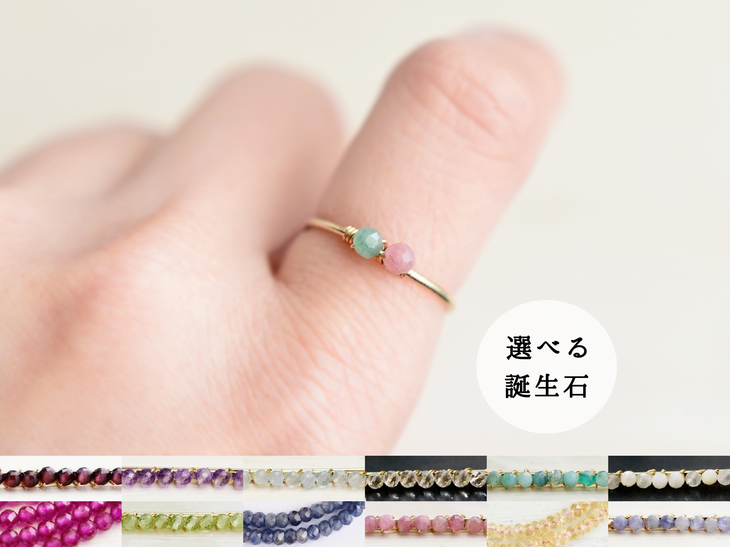 誕生石を2石選ぶセミオーダー【14kgf リング】夫婦やカップルなどにおすすめ