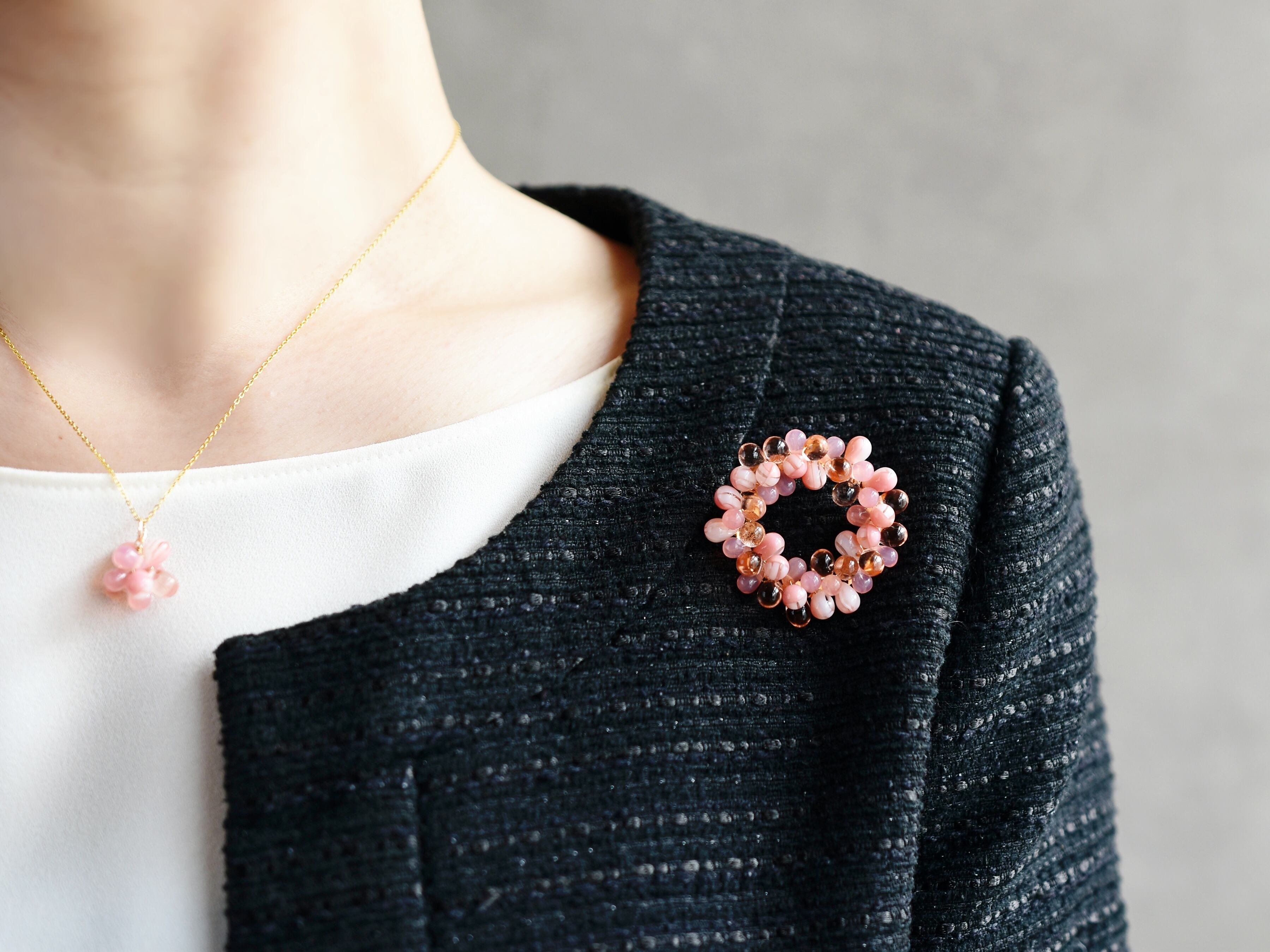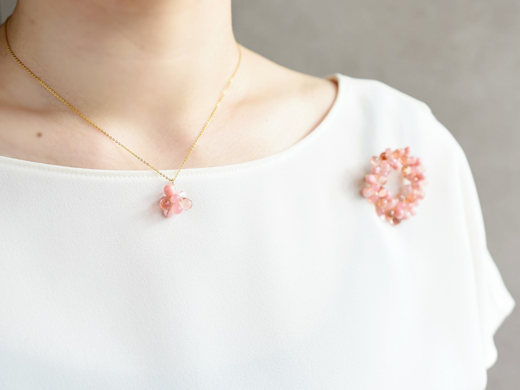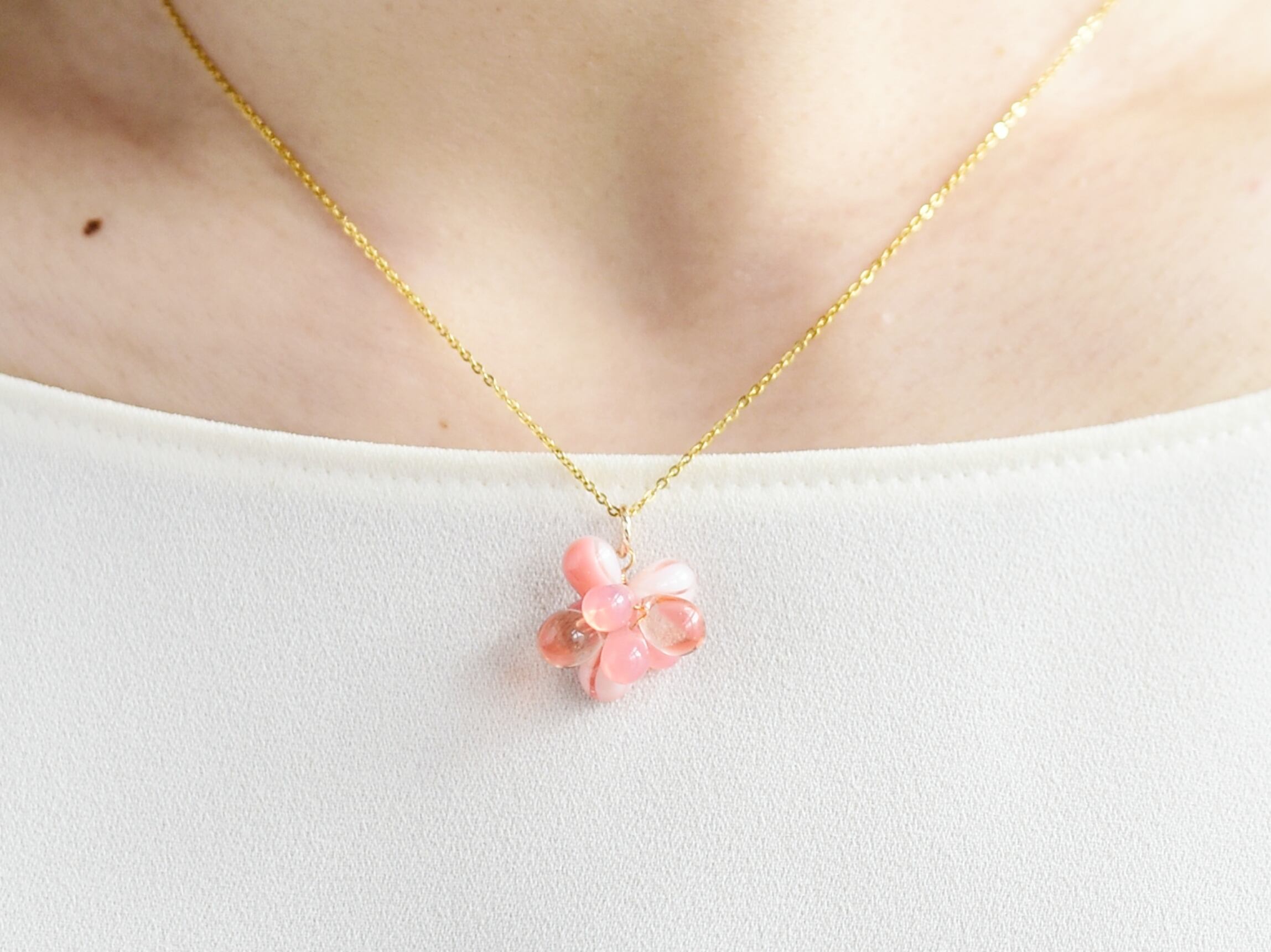 春限定【14kgf ネックレス】桜のフラワーボール/ピンク色のお花