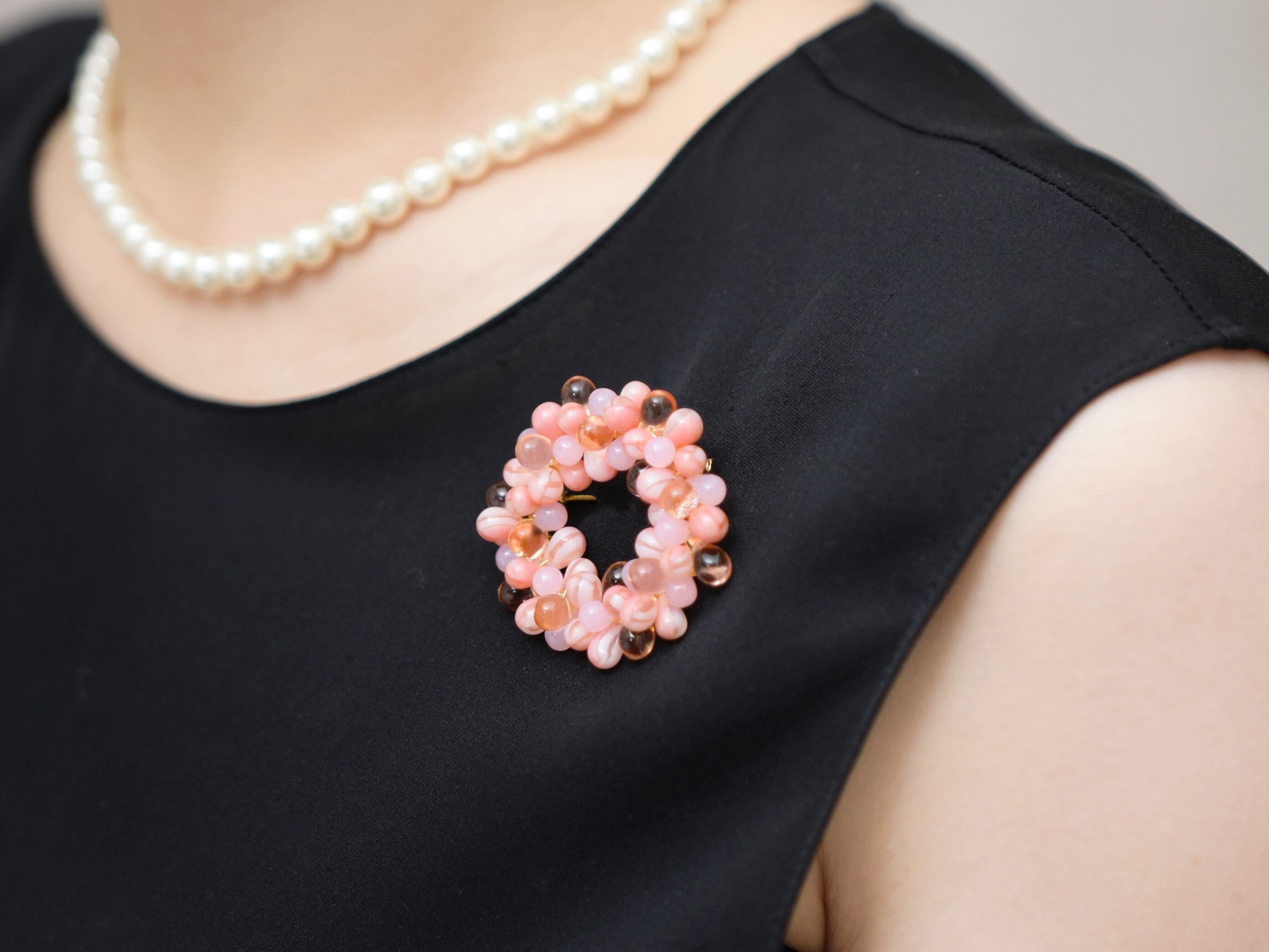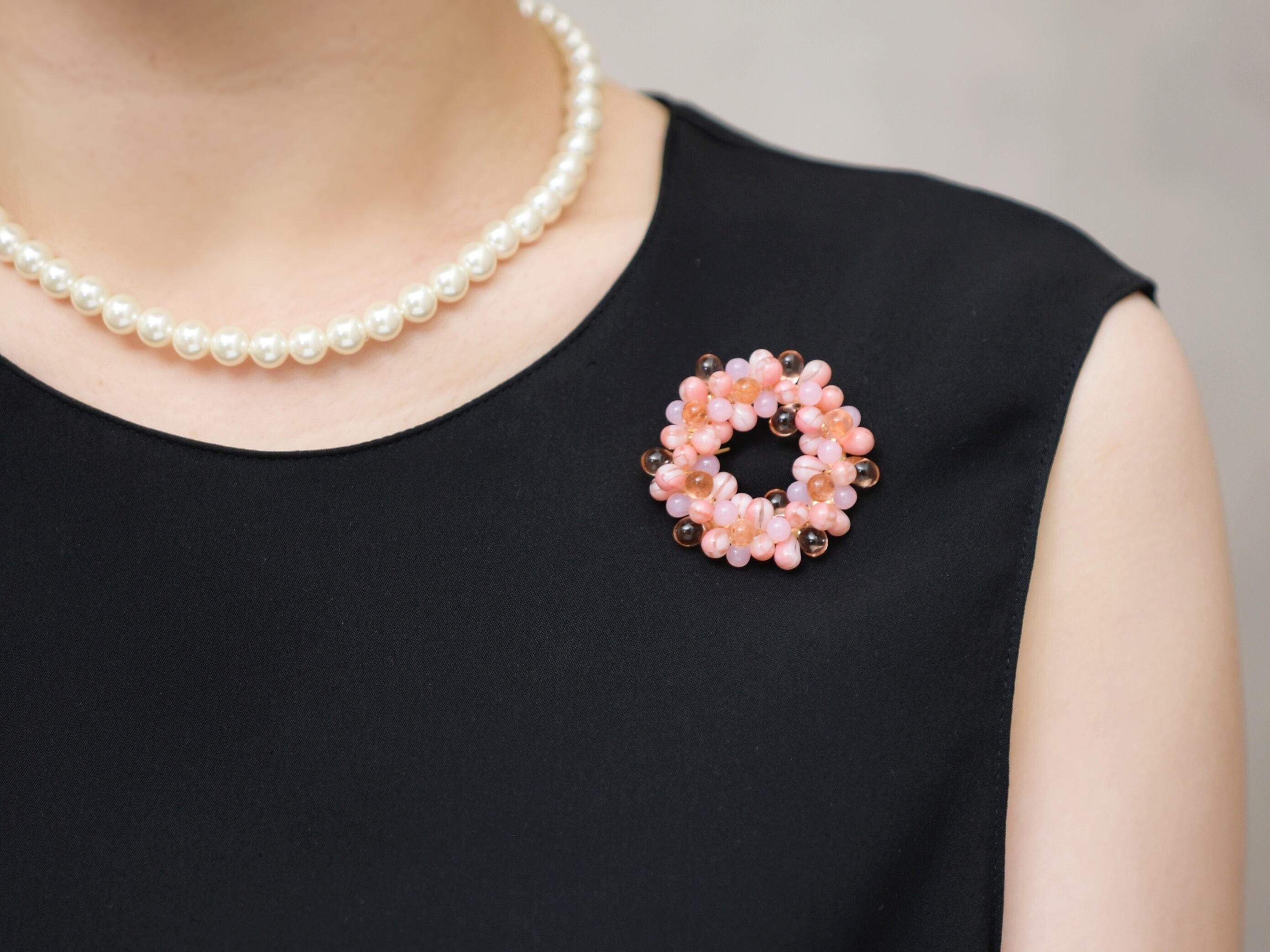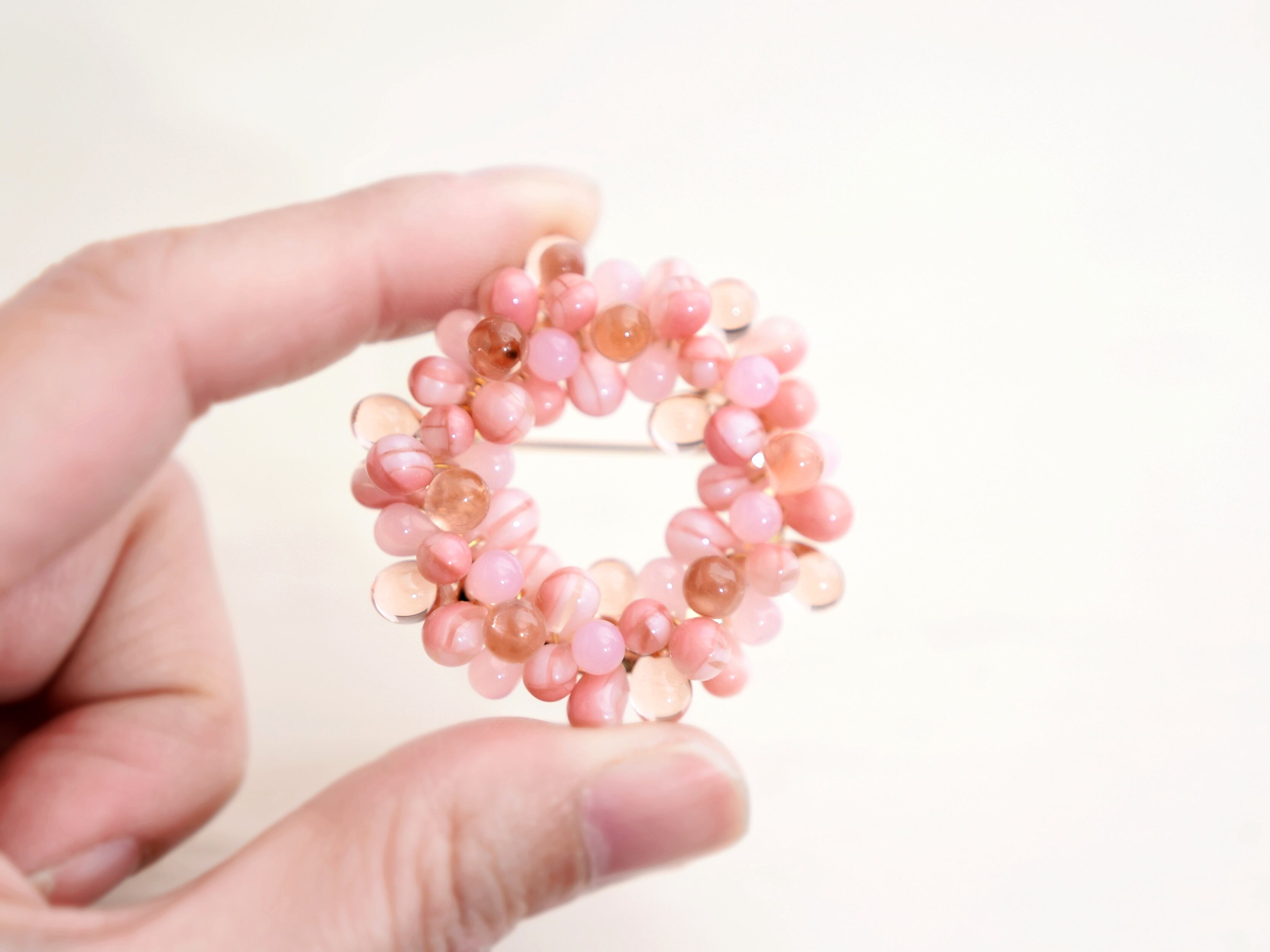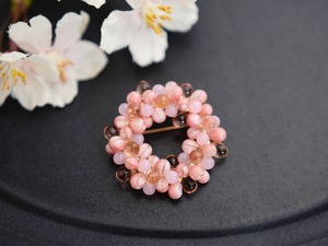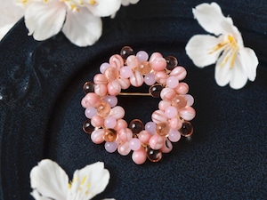 春が楽しみな桜(さくら)色のリース ブローチ。