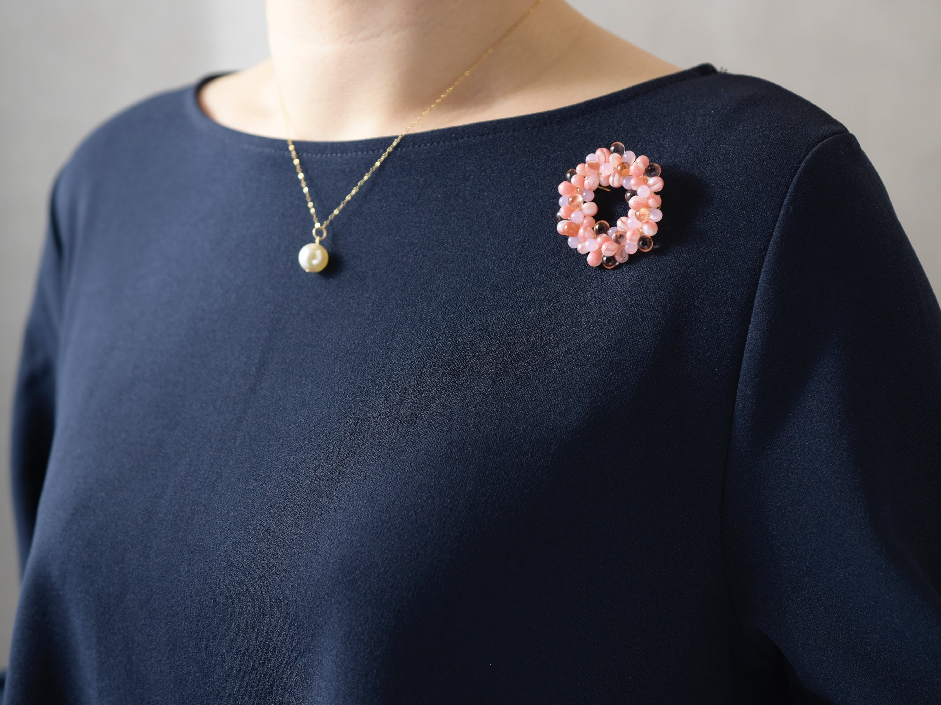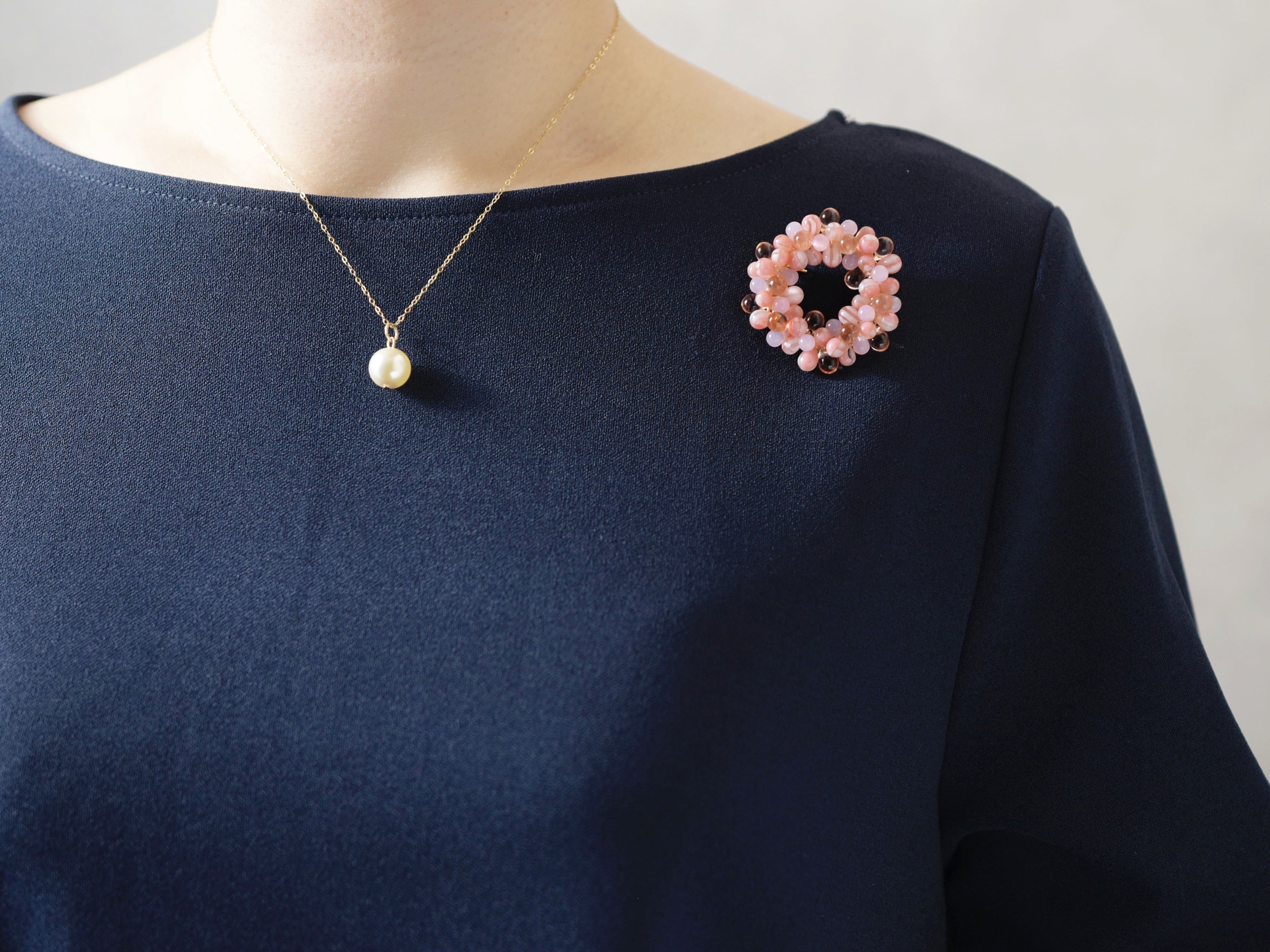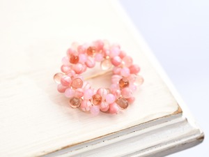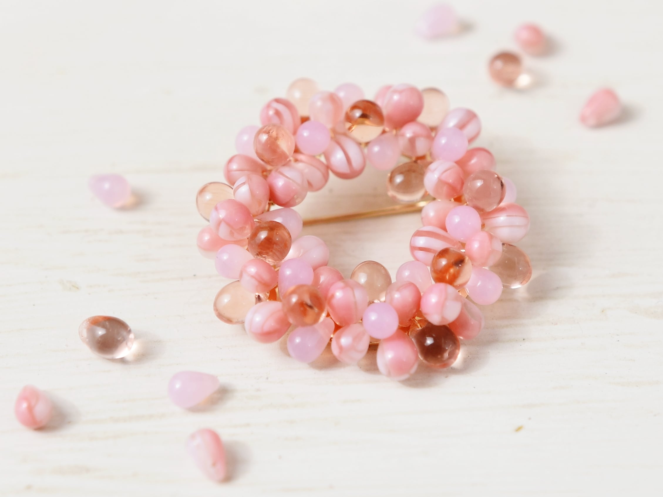 春が楽しみな桜(さくら)色のリース ブローチ。
