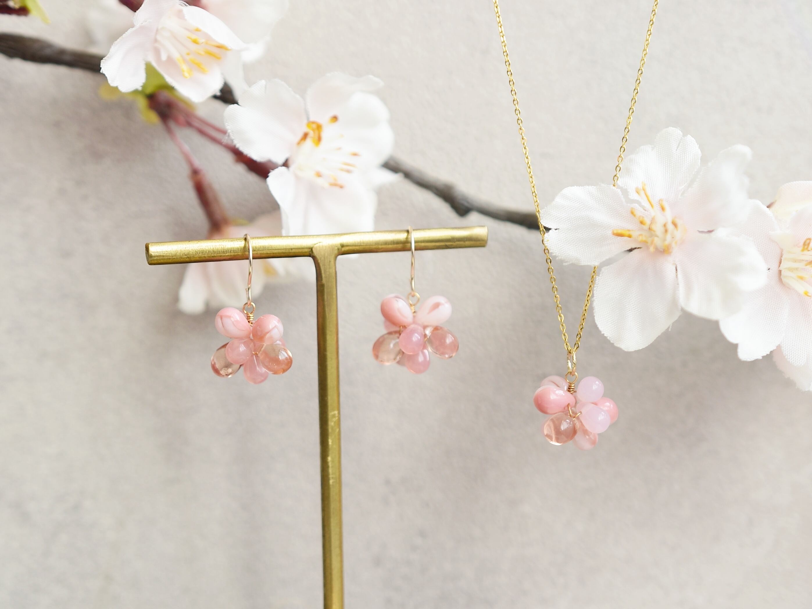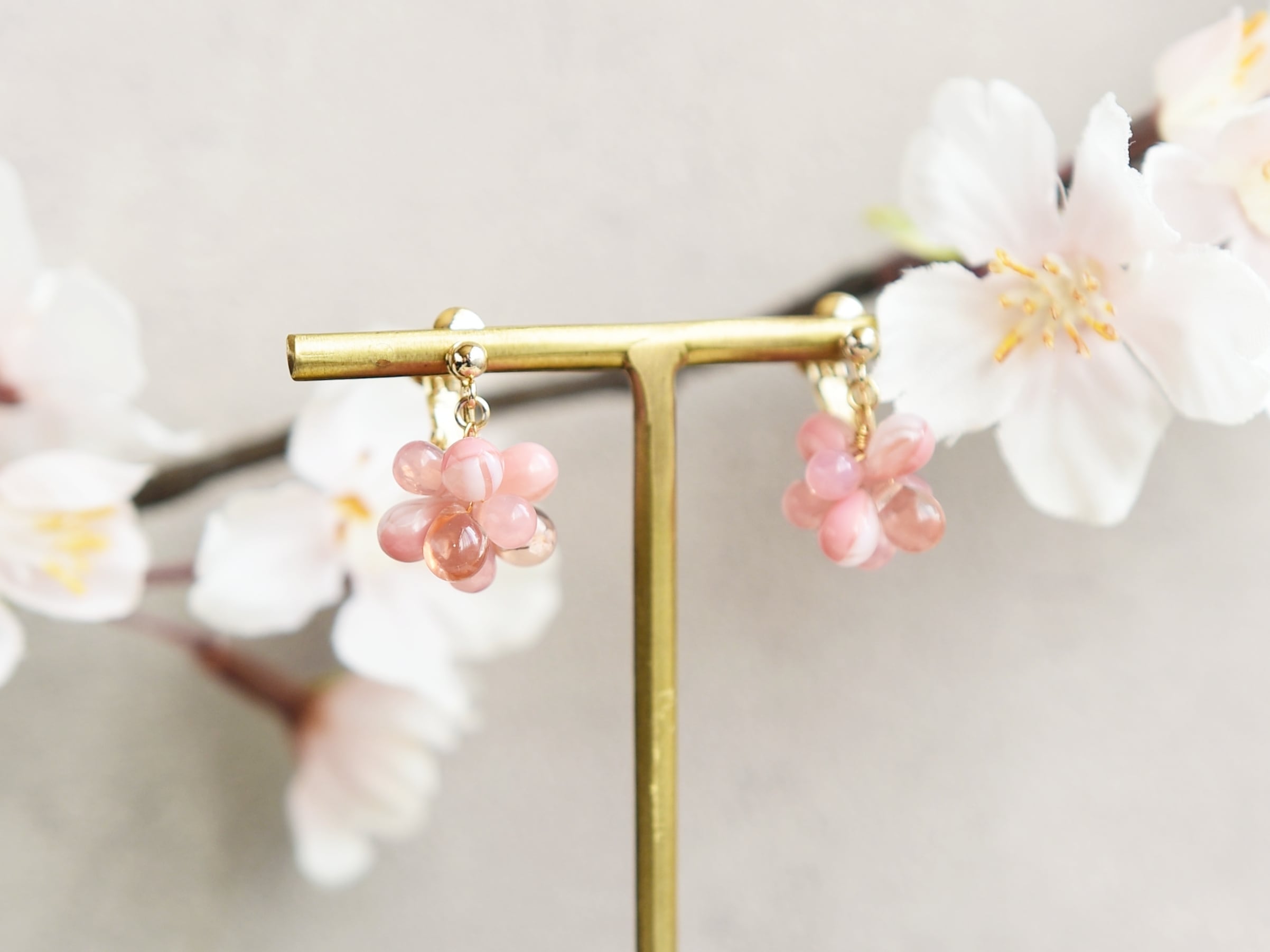 春限定【14kgf ピアス・イヤリング】桜のフラワーボール/ピンク色のお花