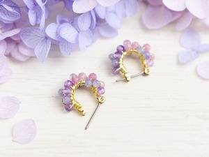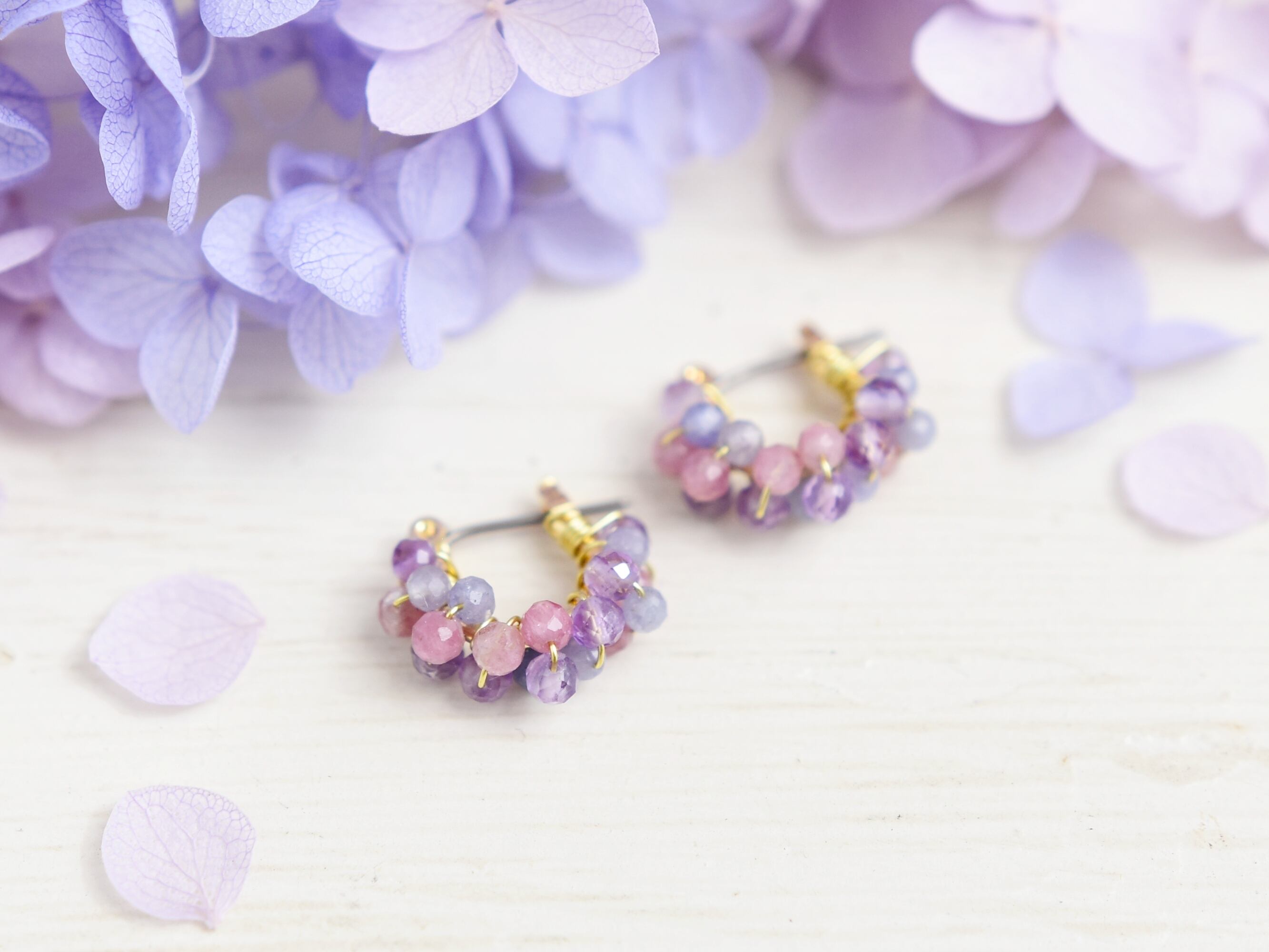 【チタン フープピアス/フープイヤリング(小/変更可能)】ピンク系の紫陽花