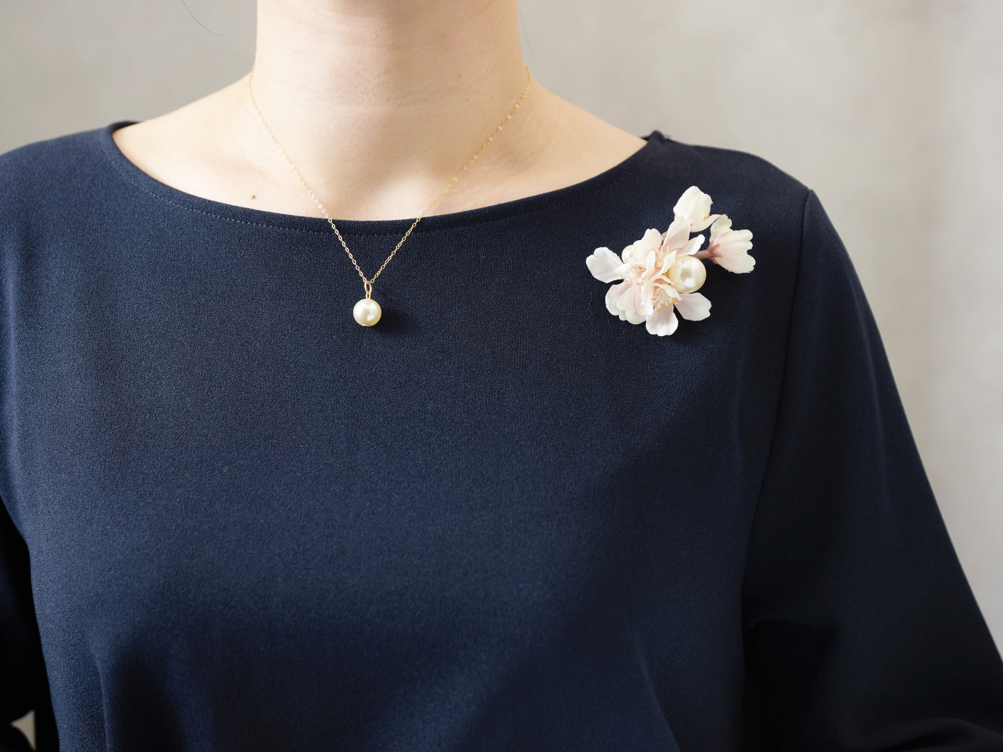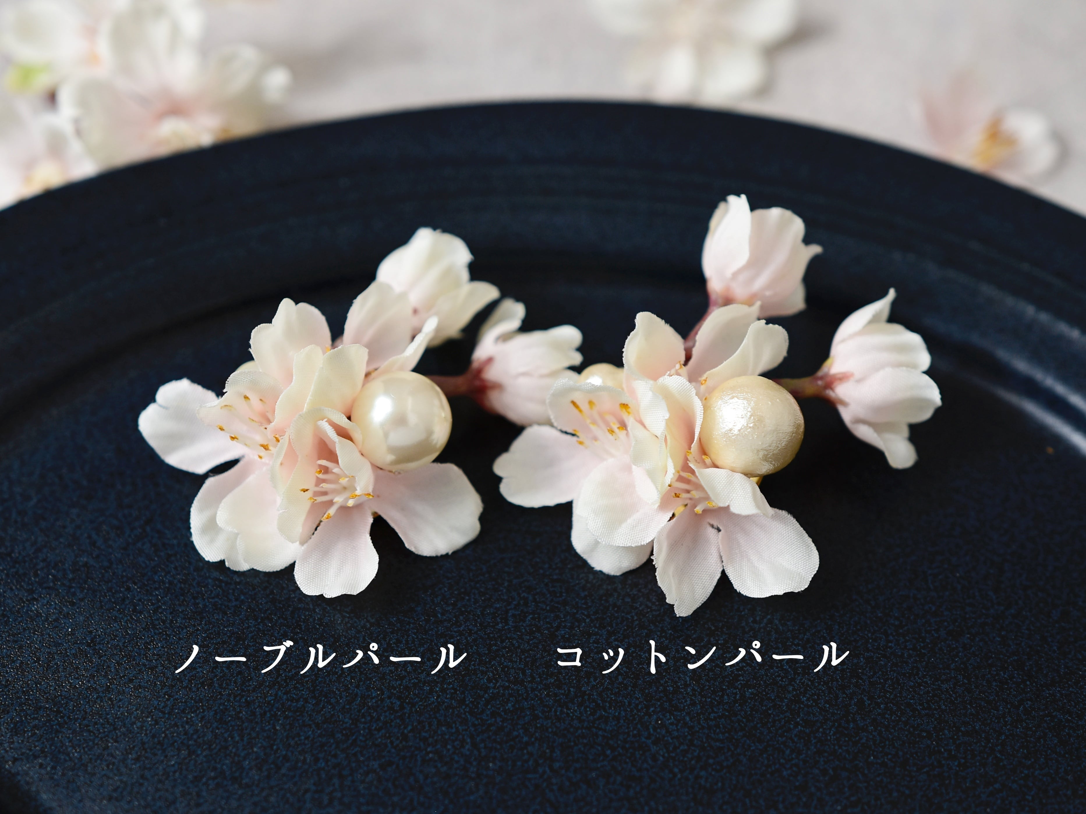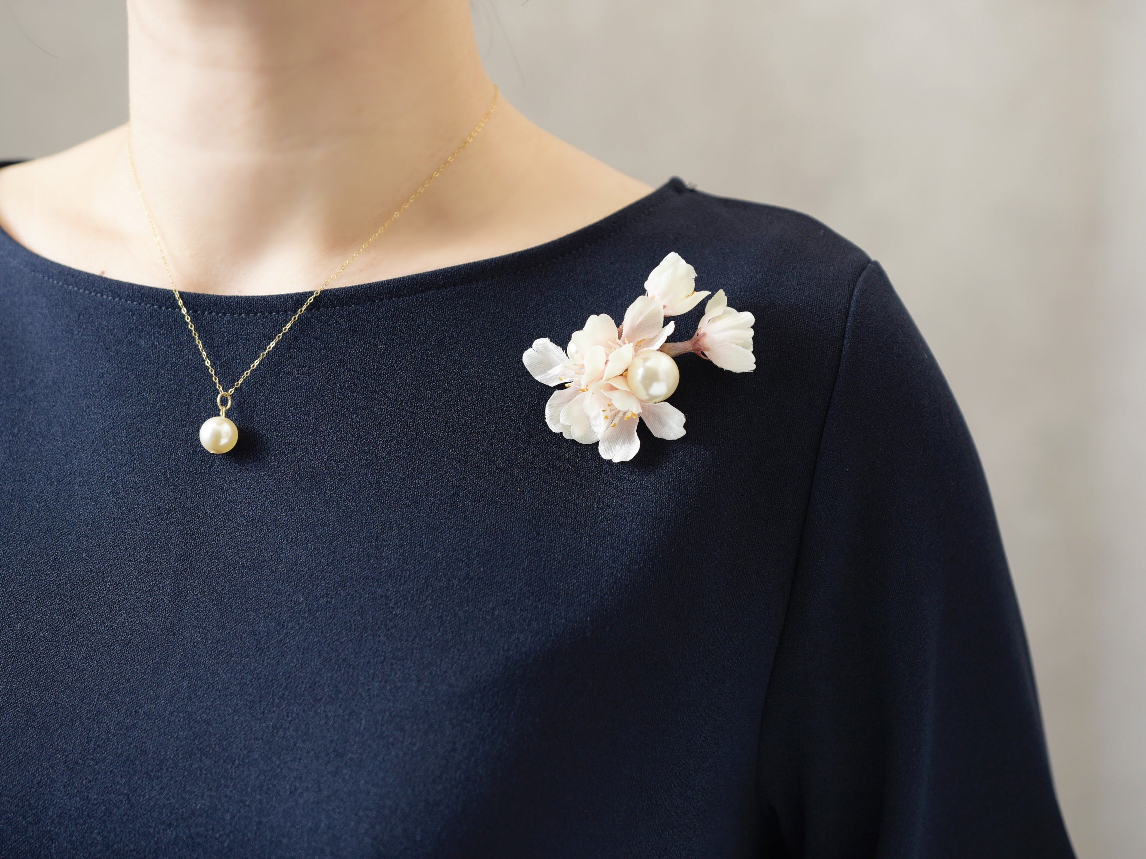 春限定【コサージュ・ブローチ】桜(ソメイヨシノ)とノーブルパール/コットンパール