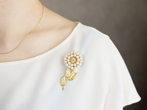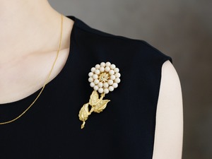 【ブローチ】アンティークレトロ/ヴィンテージな真鍮の一輪のお花(アイボリー)