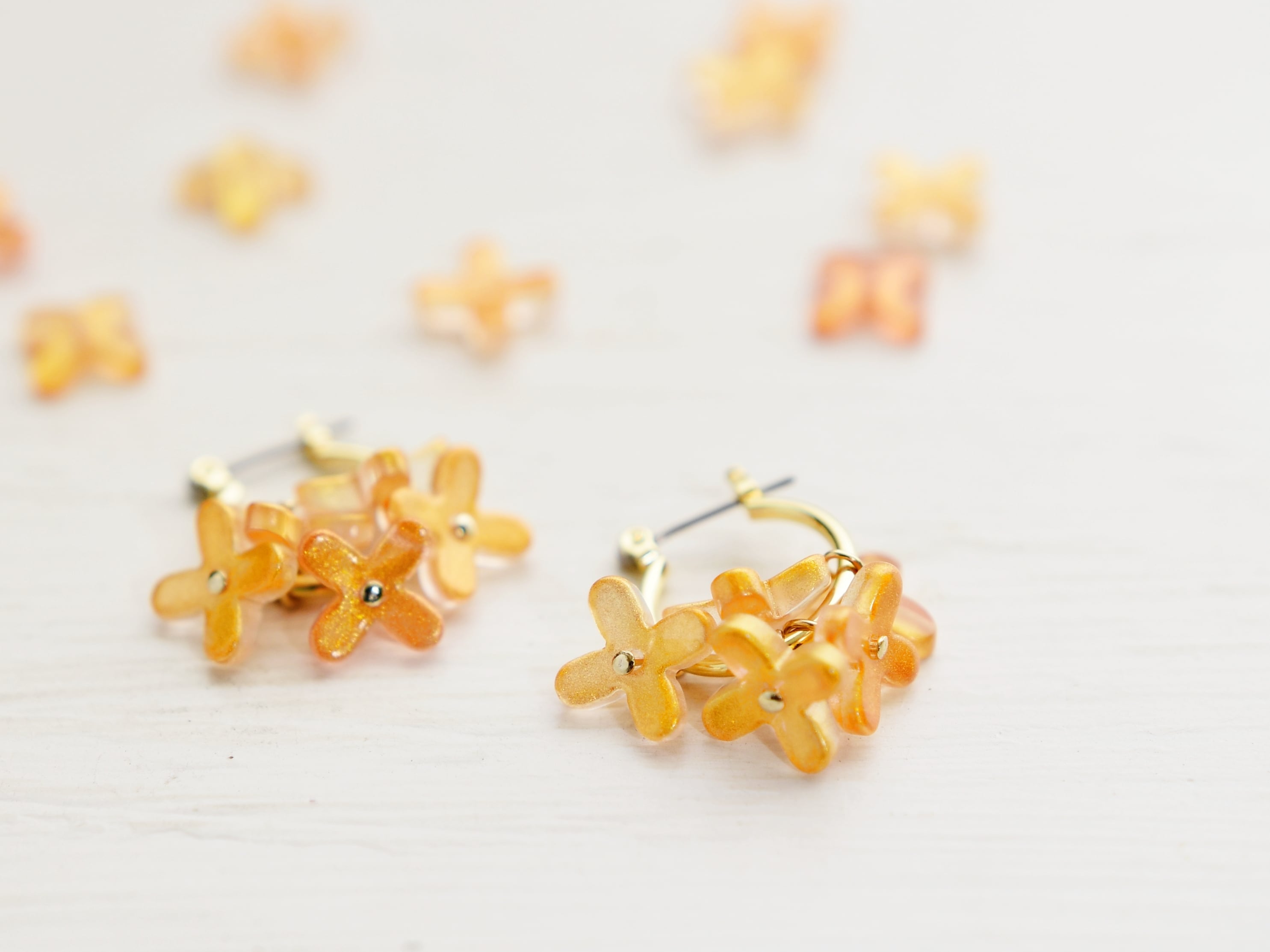 秋限定【チタン フープピアス/フープイヤリング】金木犀のお花のフリンジ