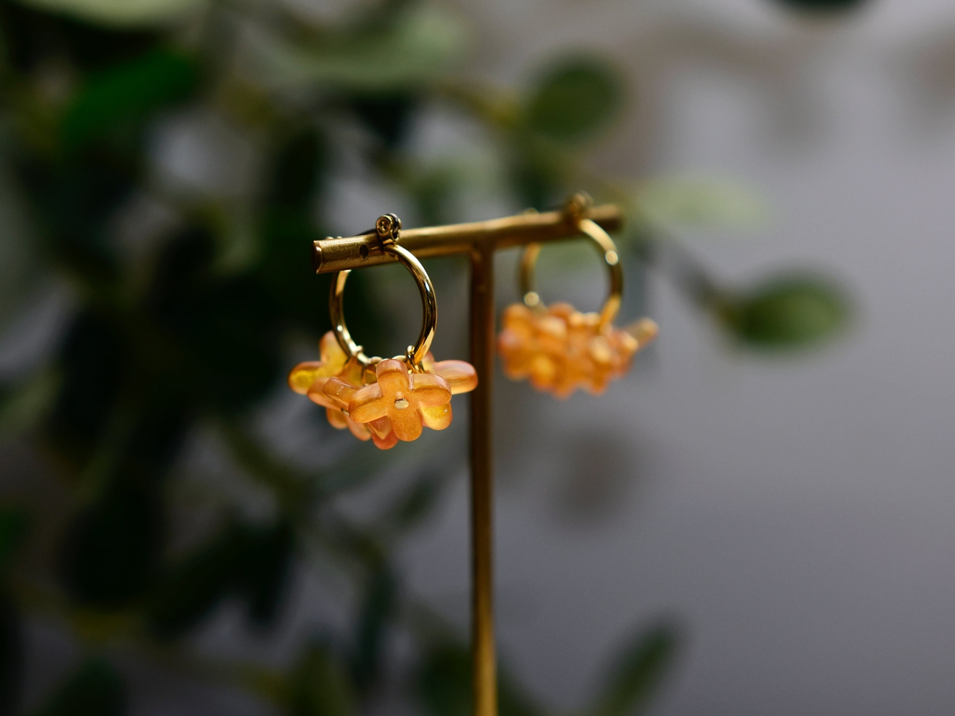 フリンジのように咲いたフープピアス/フープイヤリング。