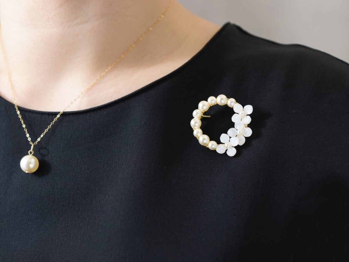 【ブローチ】紫陽花(白)のお花とパール/春のフォーマルにも (セットに変更可能)