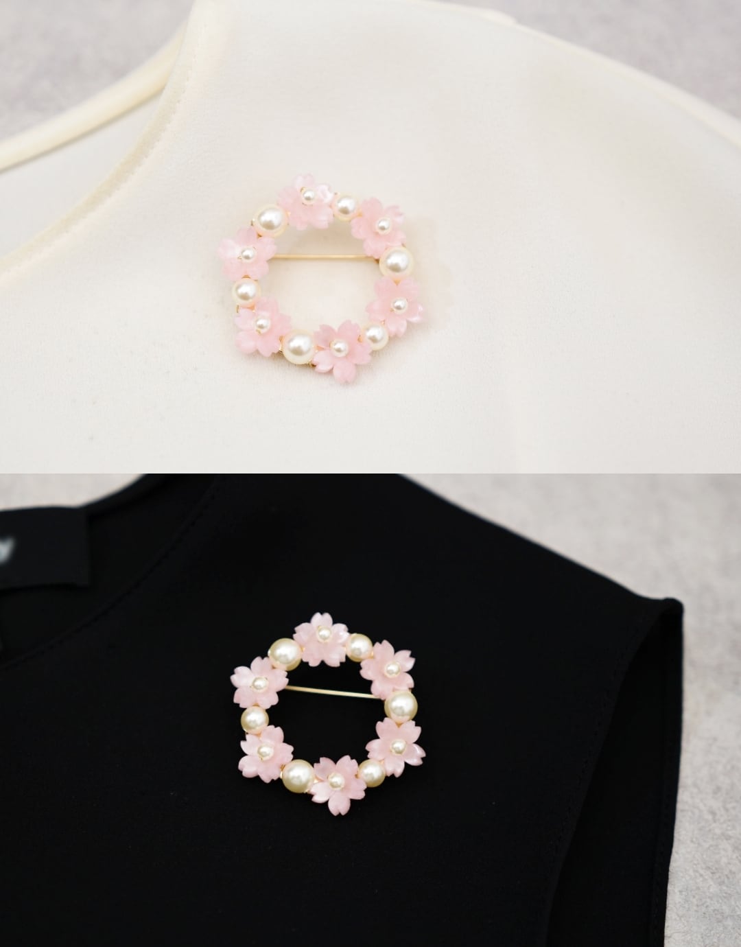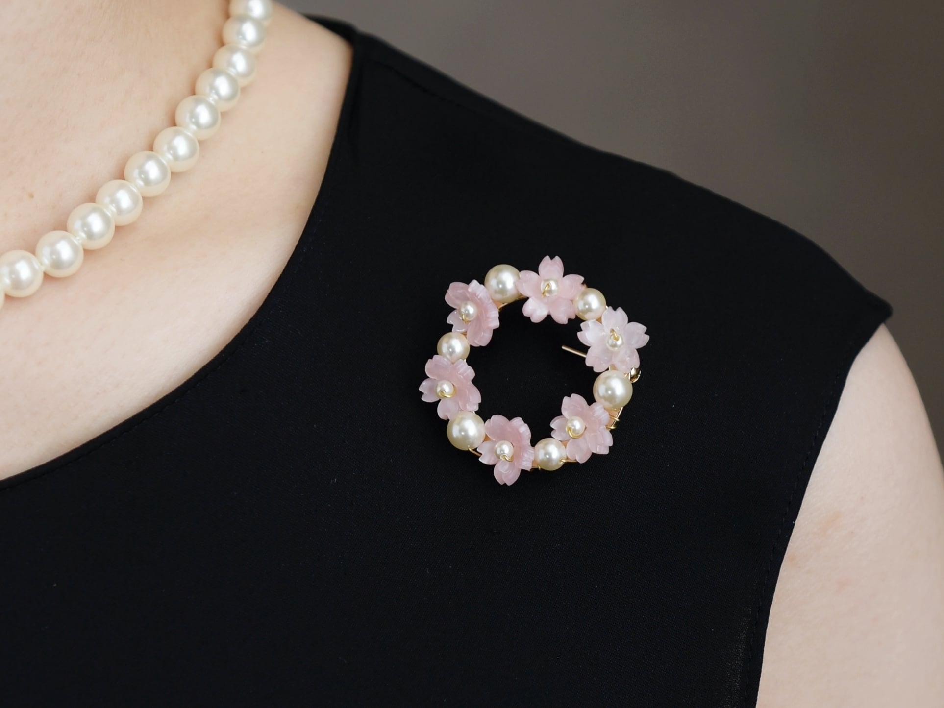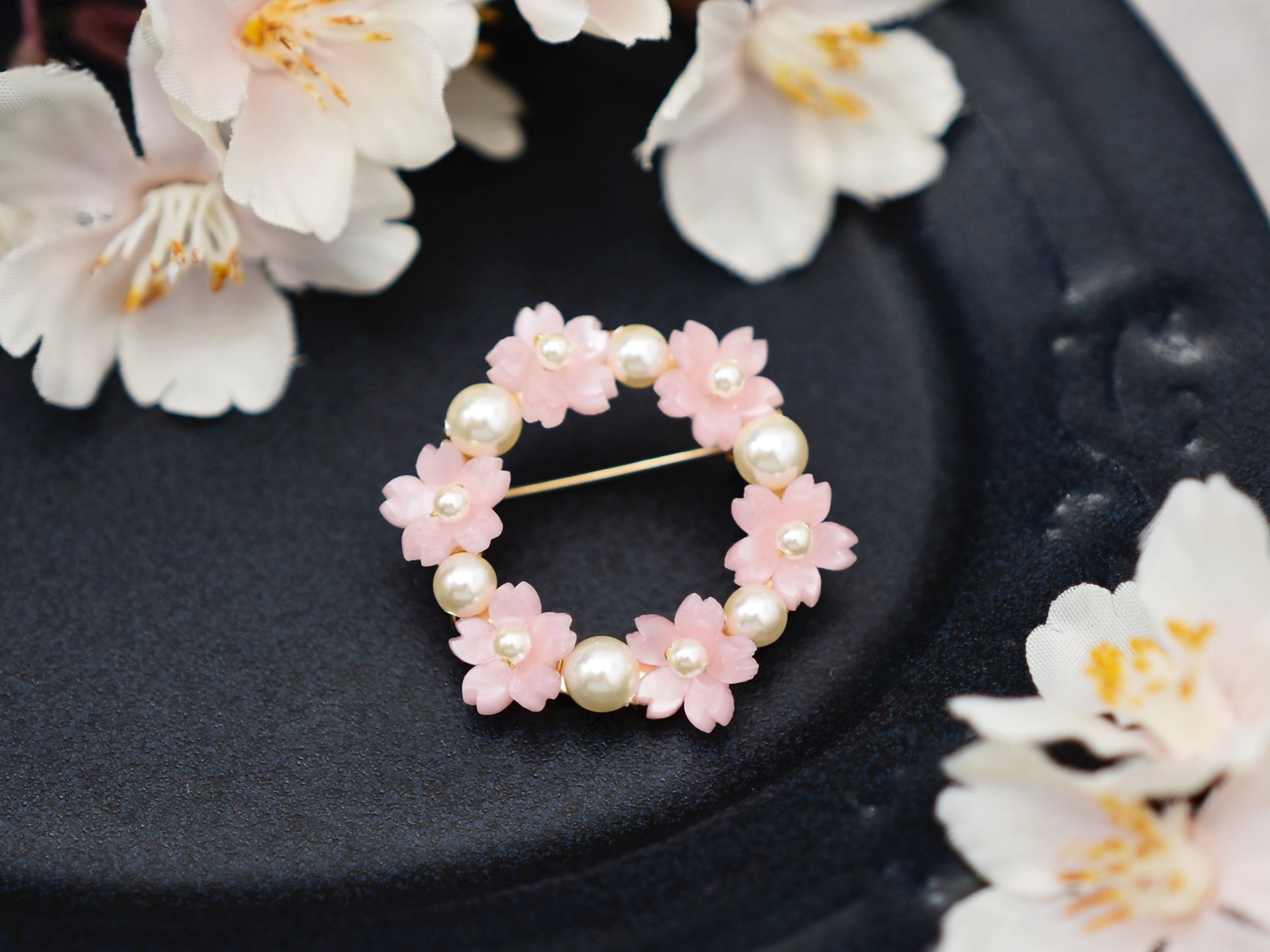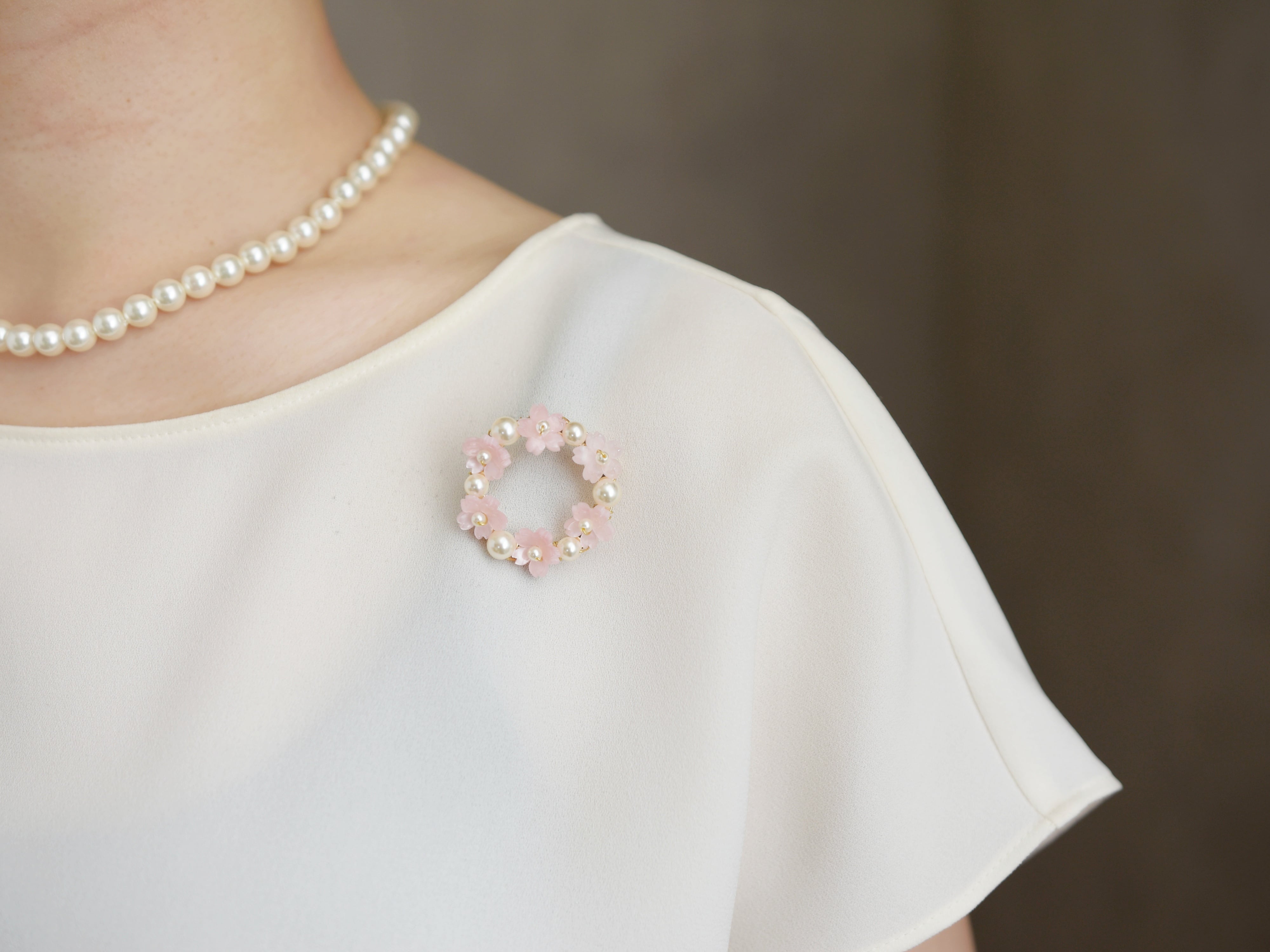 春限定【ブローチ】ピンクの桜とパールの花束リース(春爛漫・Ⅰ)