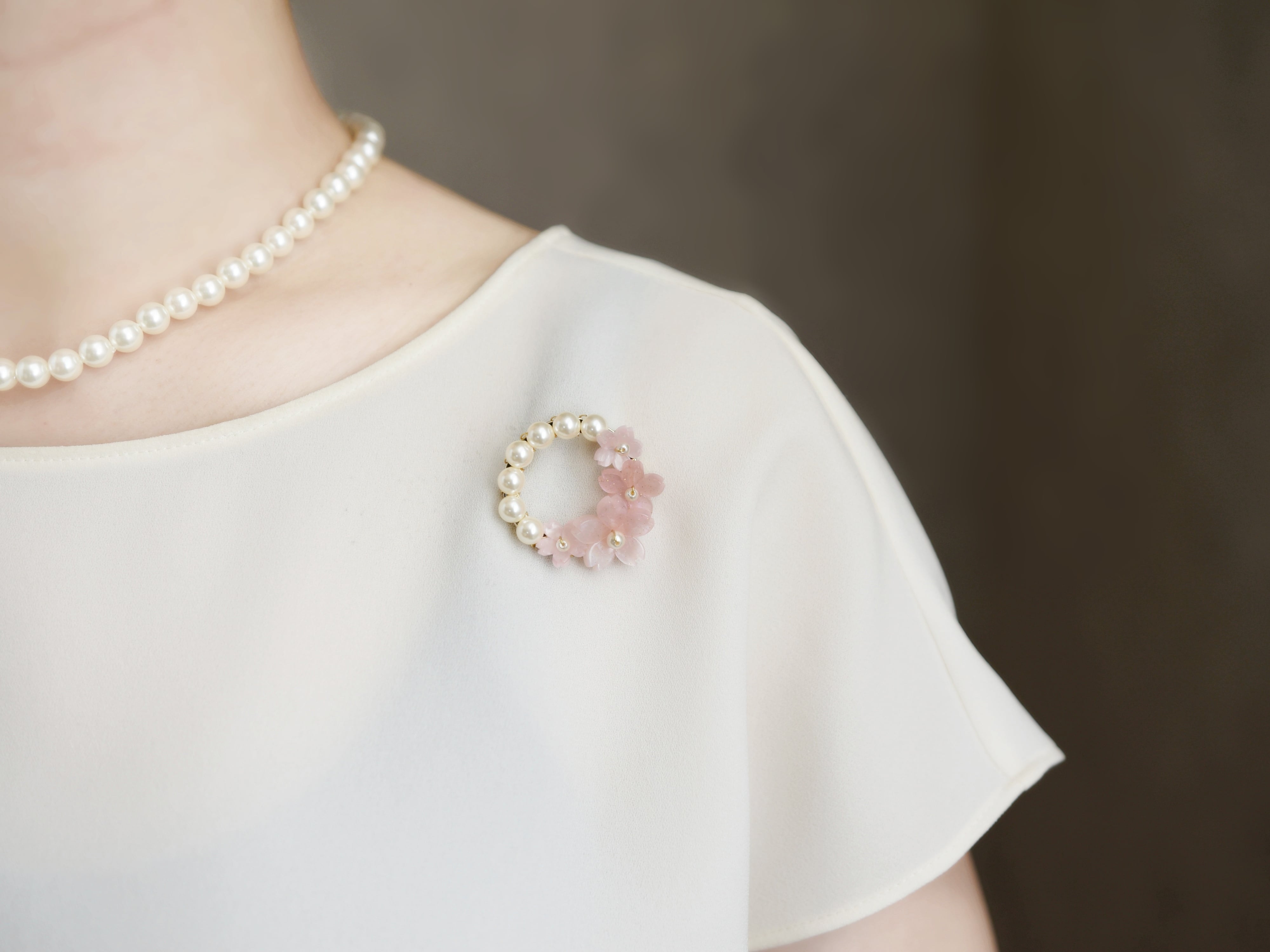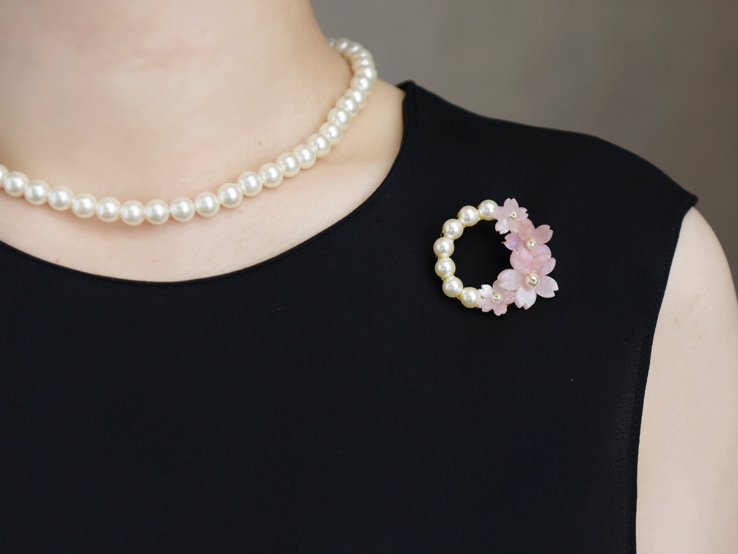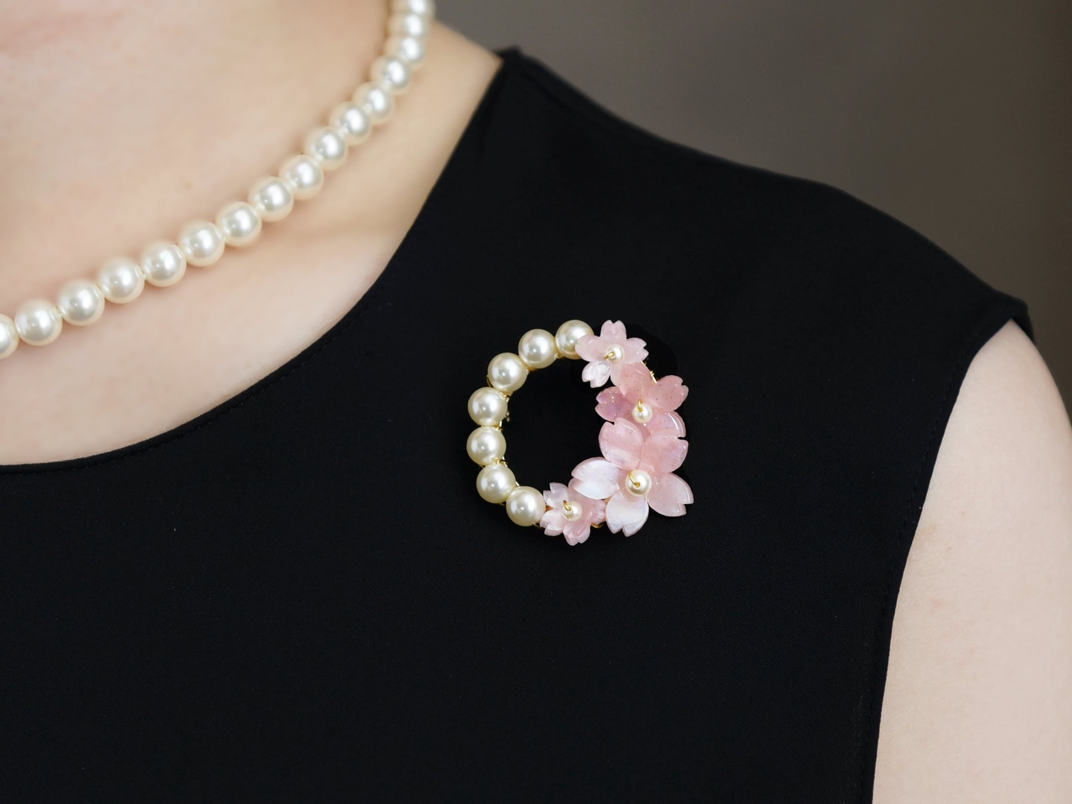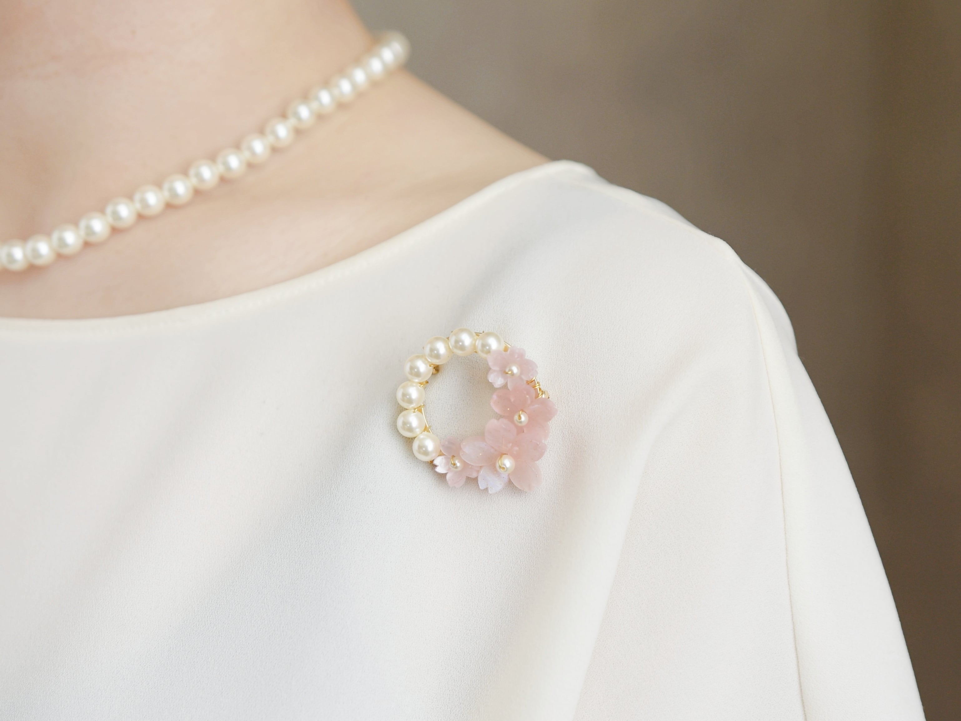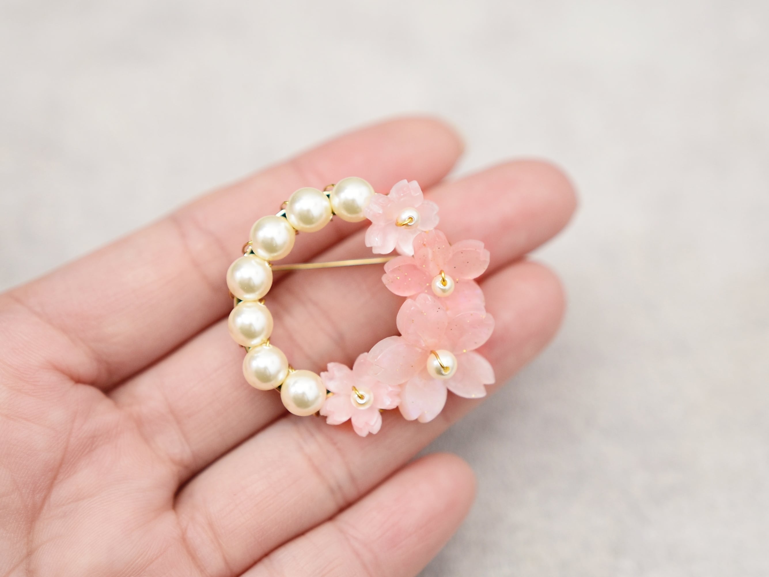 春限定【ブローチ】ピンクの桜とパールの花束リース(春爛漫・Ⅱ)