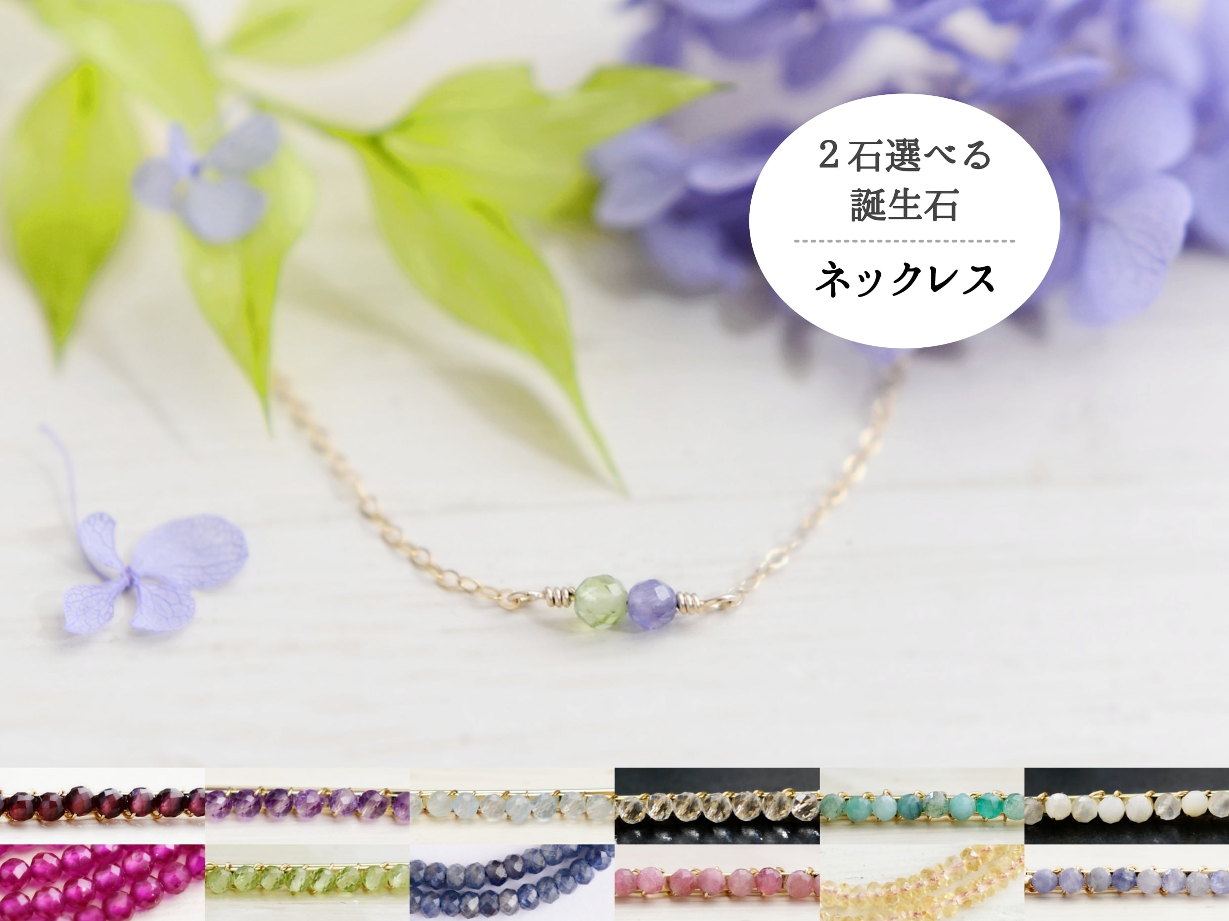 誕生石を2石選ぶセミオーダー【14kgf ネックレス】夫婦やカップルにおすすめ