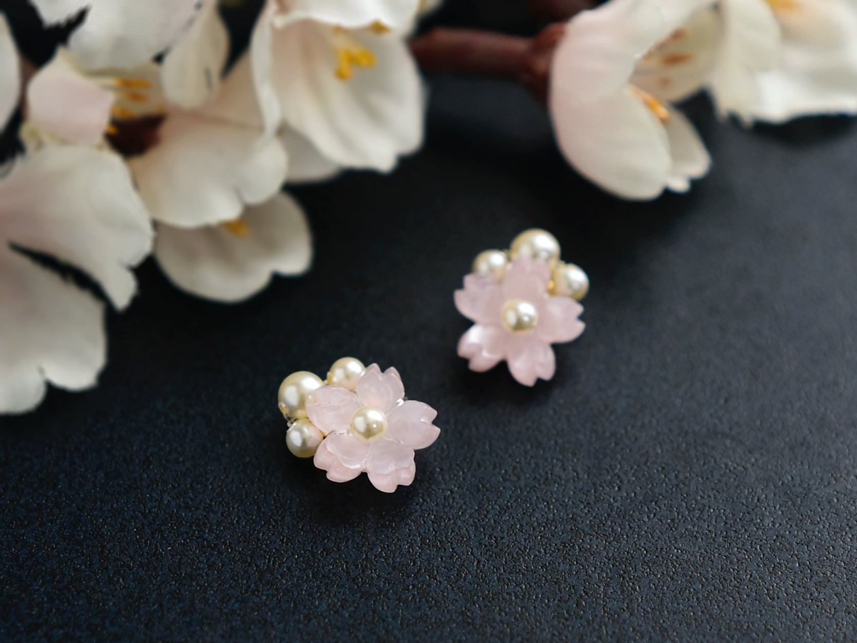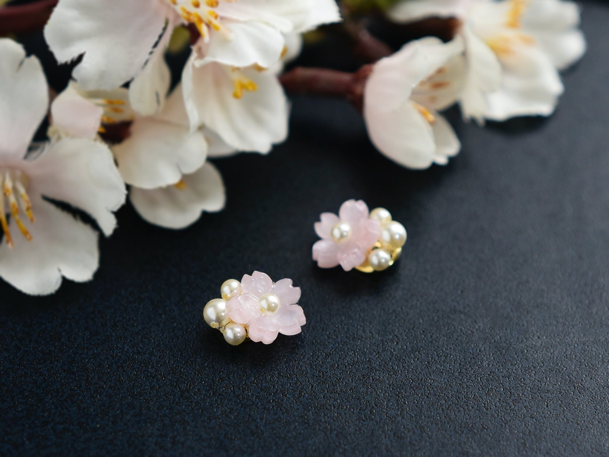春限定【ピアス/イヤリング】淡いピンクの桜とパール(小ぶりサイズ)